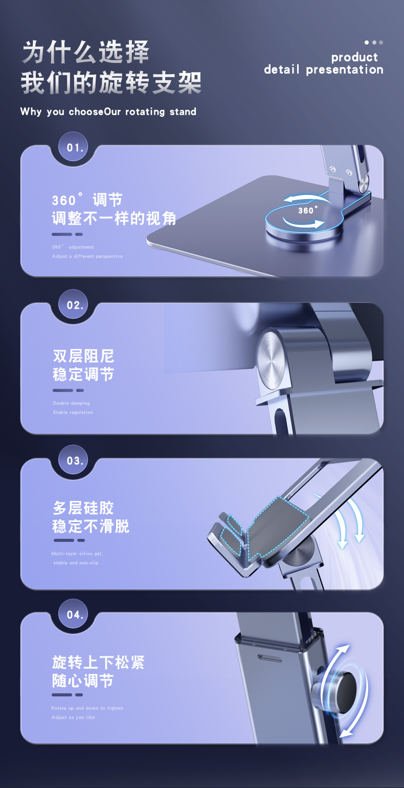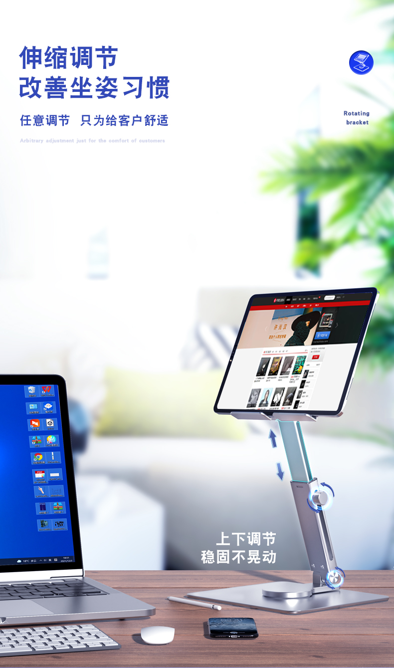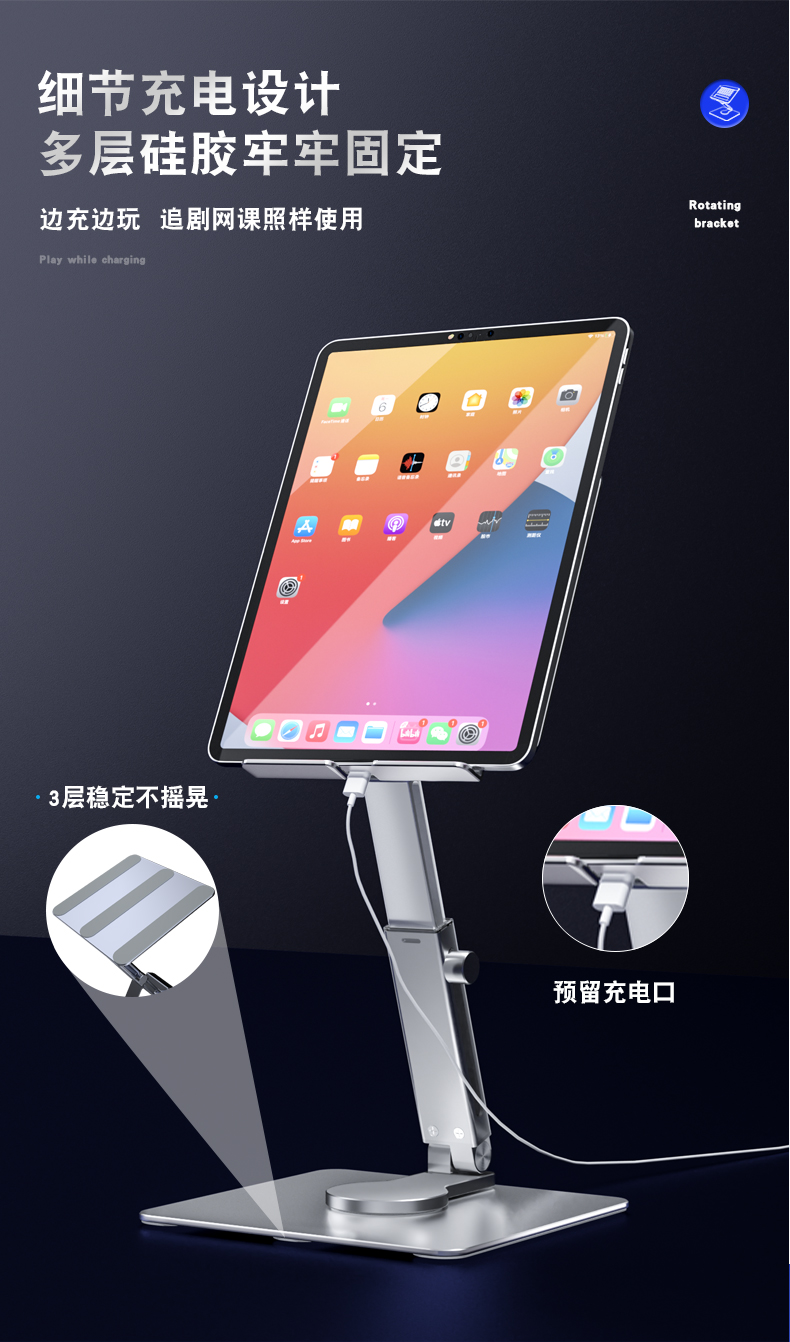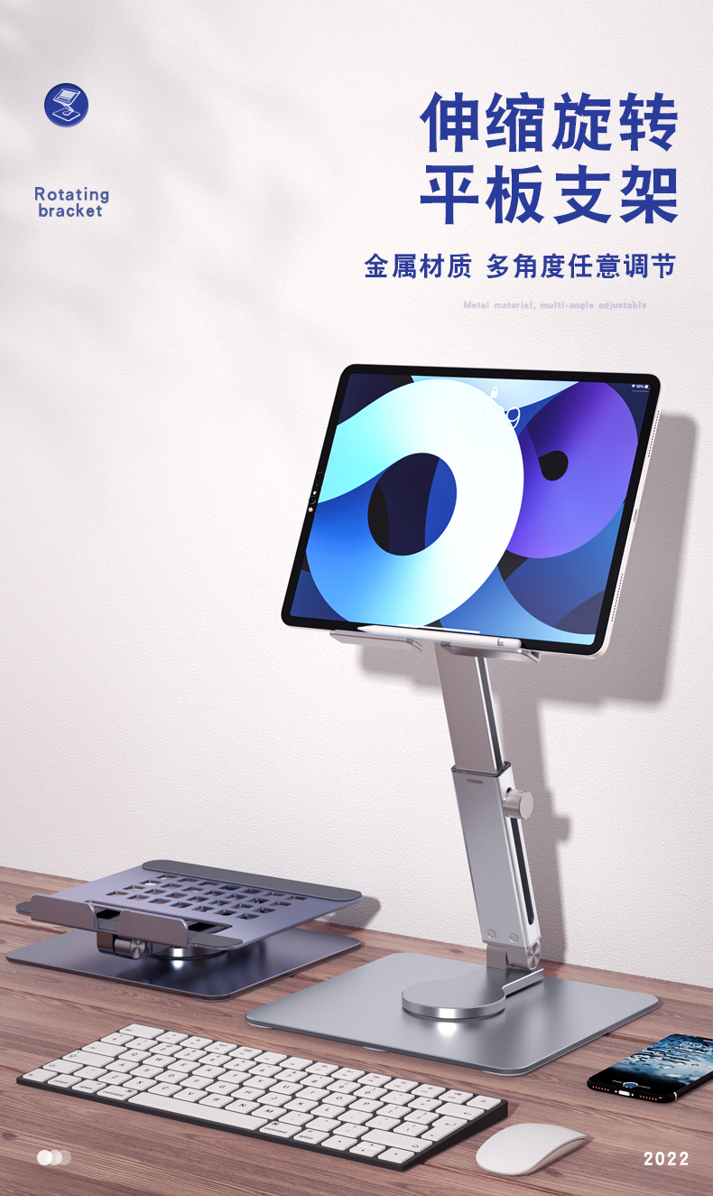 H06可伸缩旋转平板支架 阅读支架儿童看书支架小学生阅读床上书架平板学习伸缩升降支架