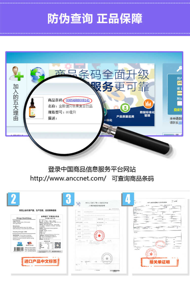 美国Kings Healthbay金斯健贝苹果复合饮品60657