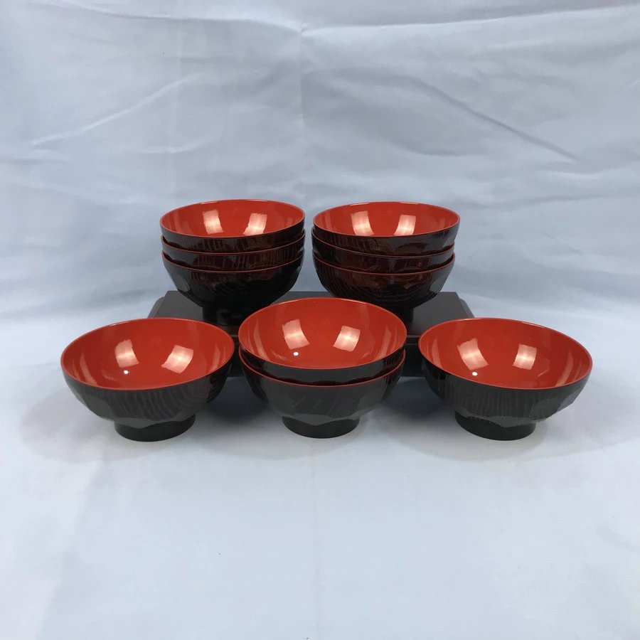 日本木纹漆碗 10枚装 原盒保留 实物见视频