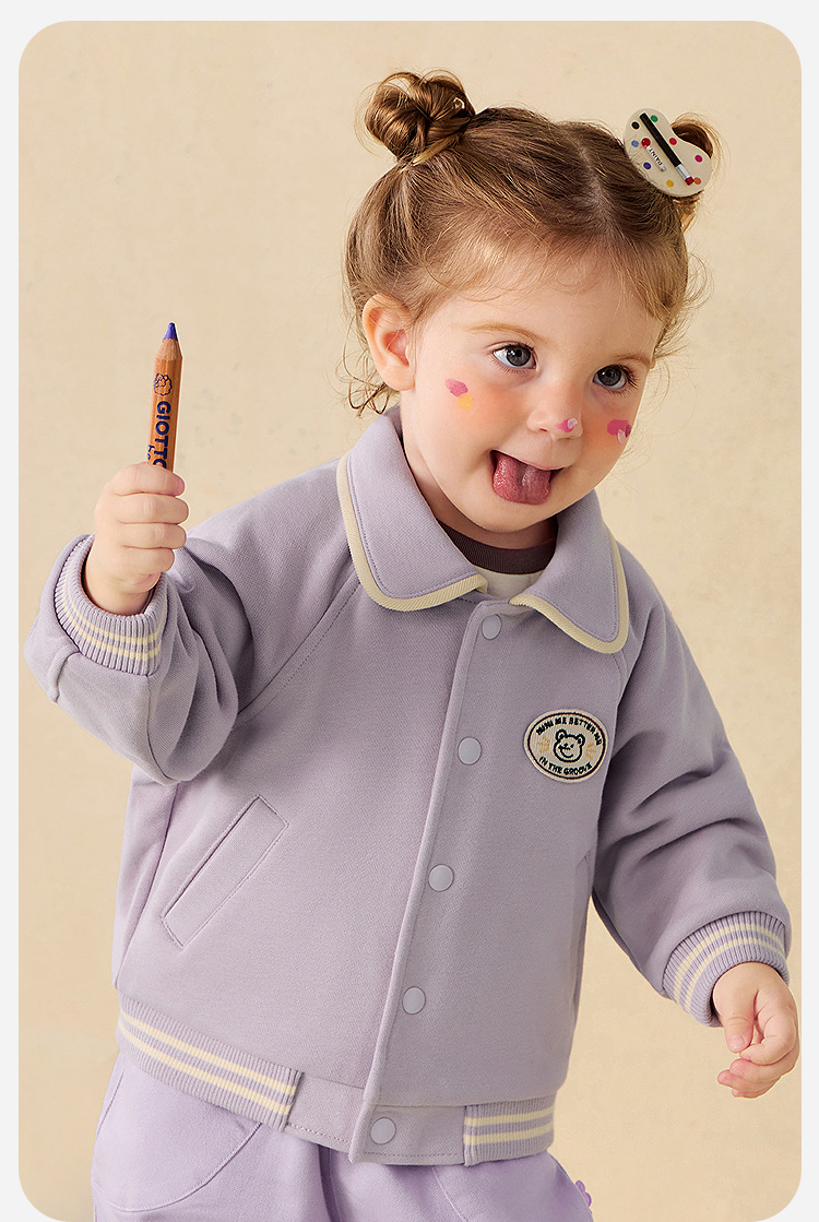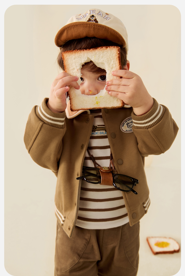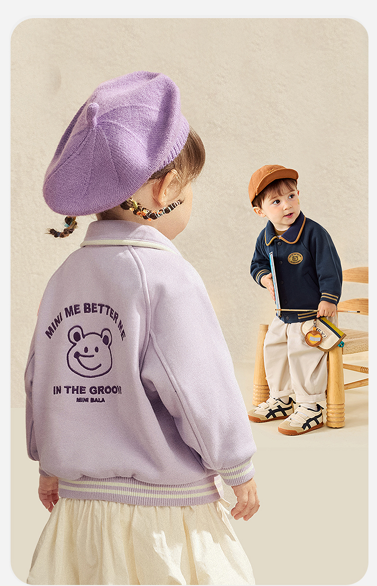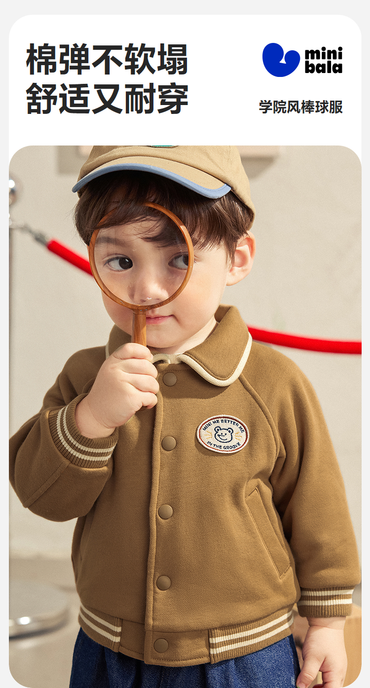 迷你巴拉男女童学院风外套宝宝宽松插肩袖翻领棒球服上衣