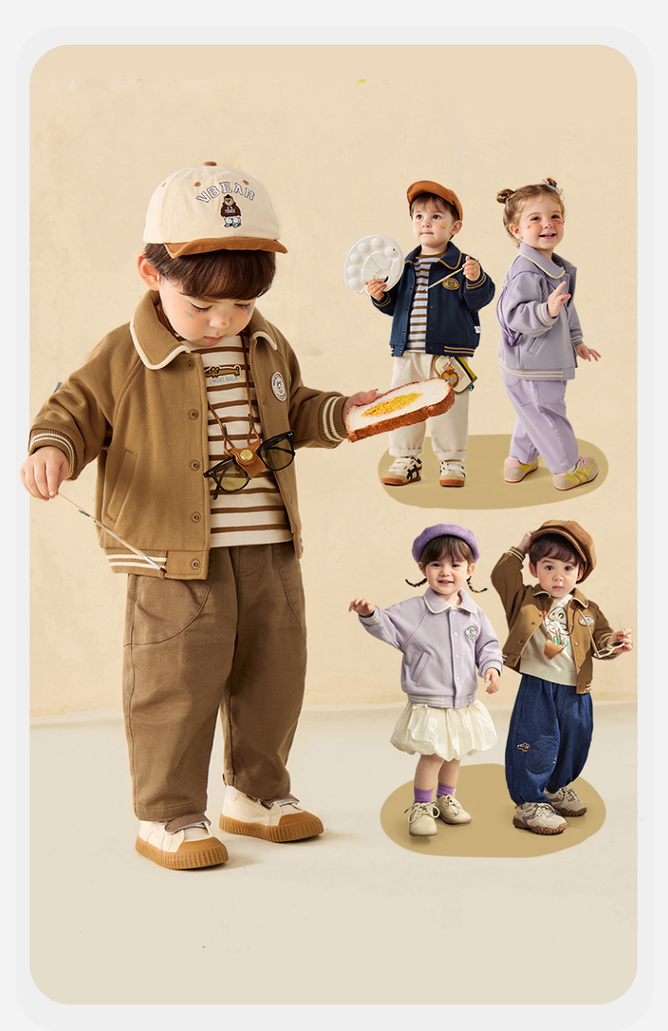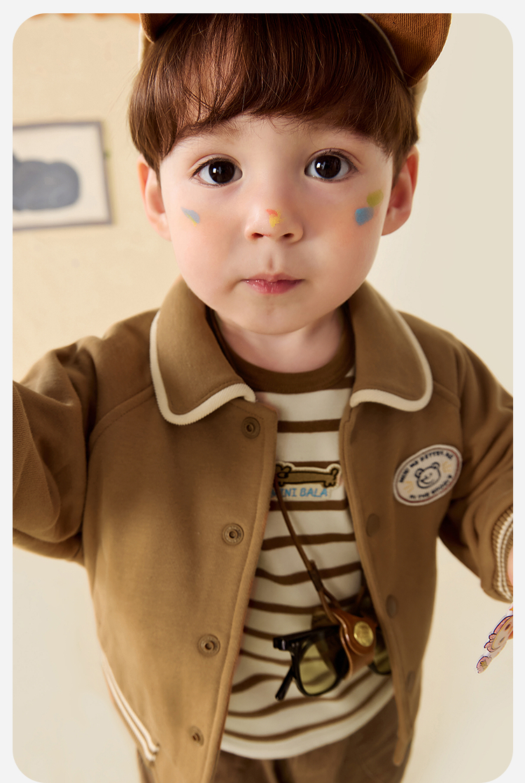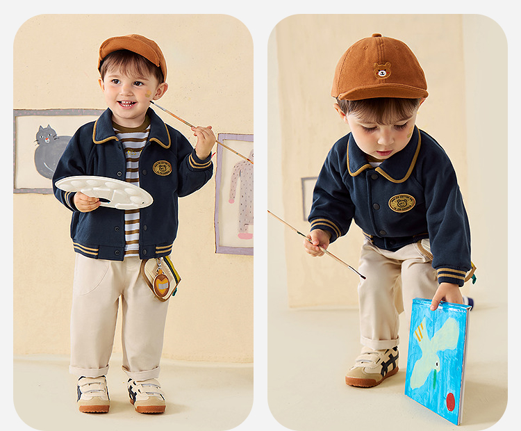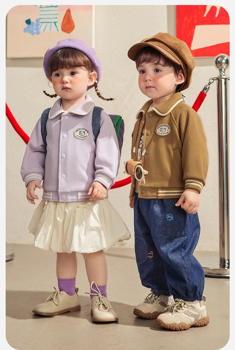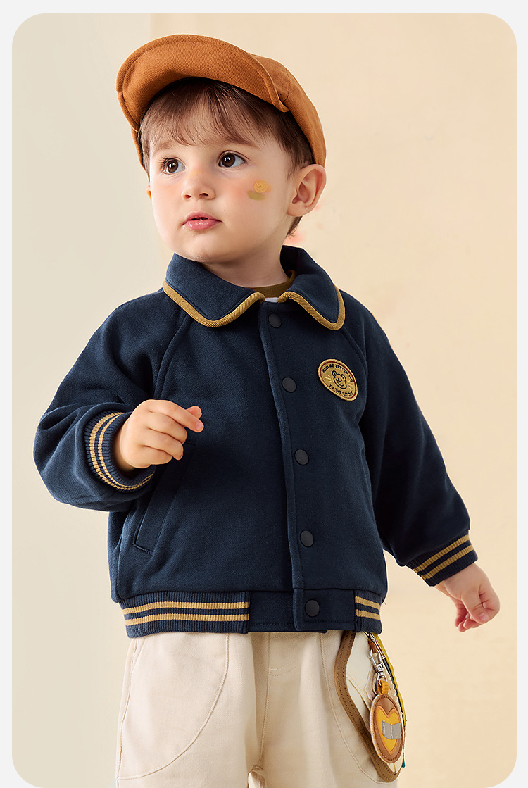 迷你巴拉男女童学院风外套宝宝宽松插肩袖翻领棒球服上衣