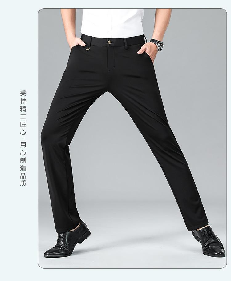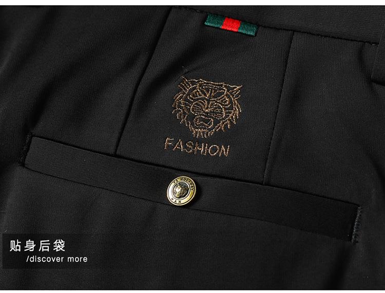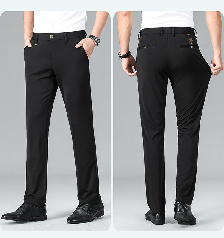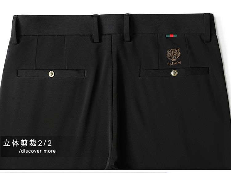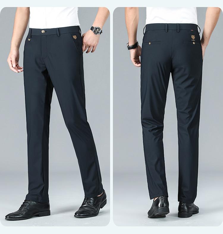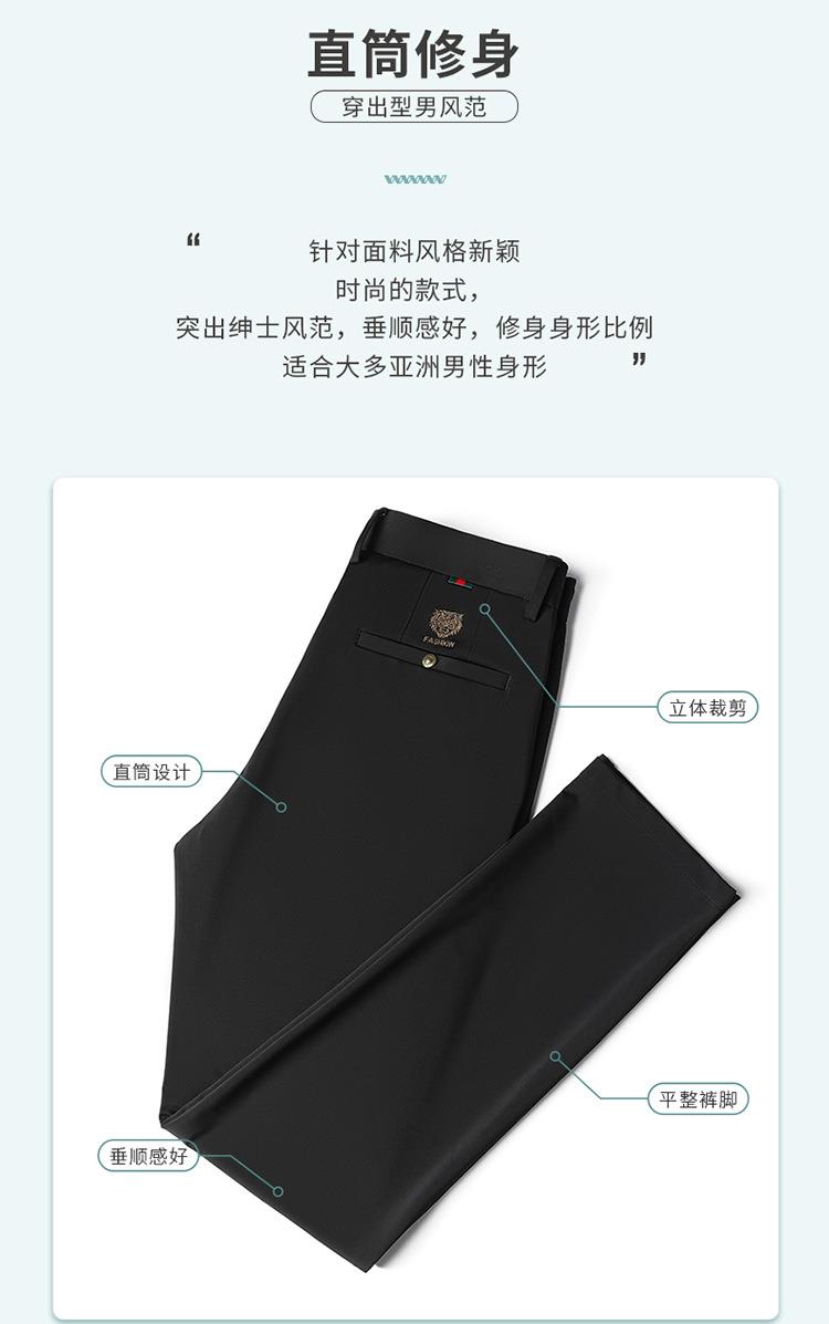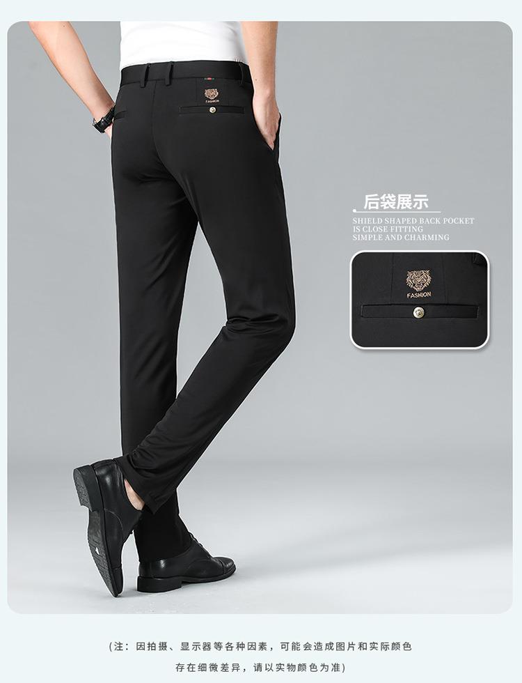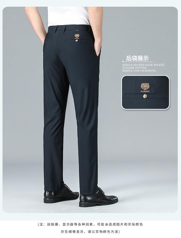 薄款弹力休闲裤男士夏季商务休闲虎头刺绣潮流直筒型百搭西裤