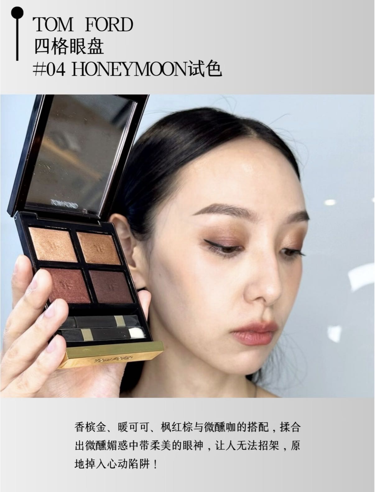 红棕系眼影微微偏光,可以浓郁可以清淡~~喜欢红棕色的一定要收!他家眼影中最难买的一个色号!!