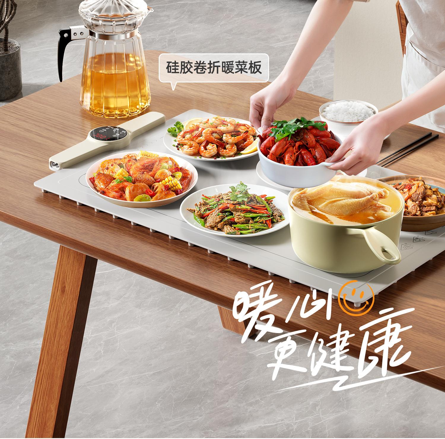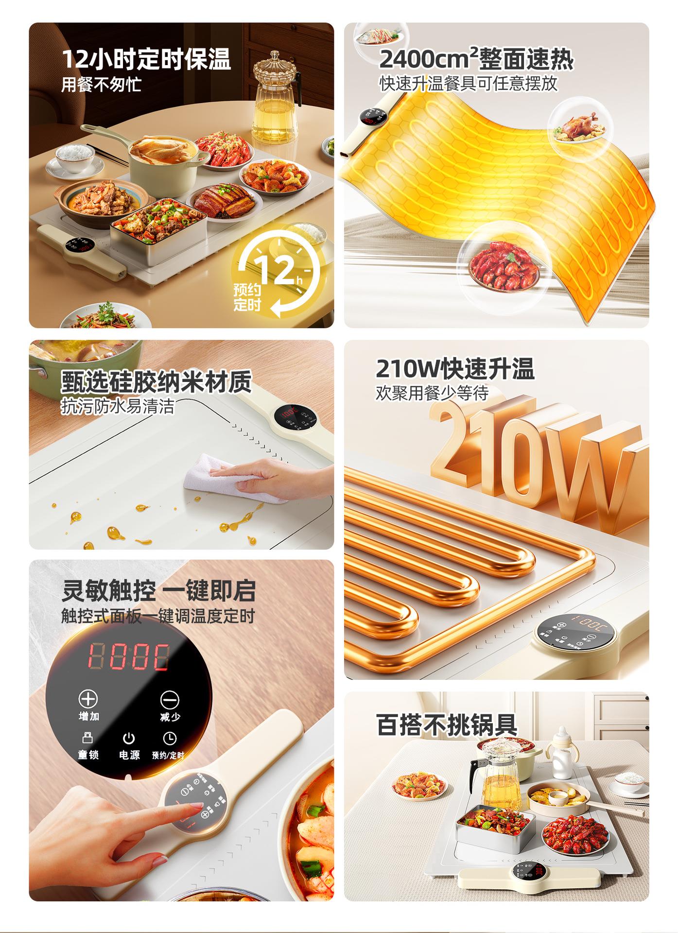 志高折叠分区暖菜板饭菜保温板家用定时热菜板多功能餐桌加热垫盘