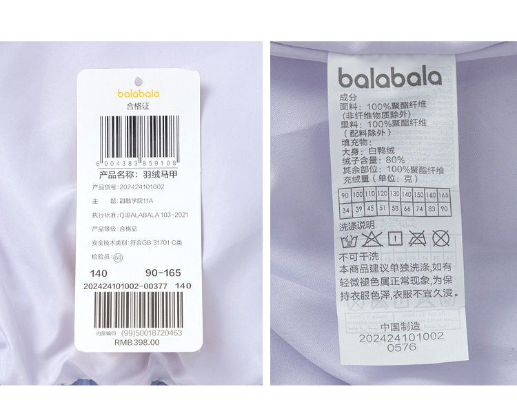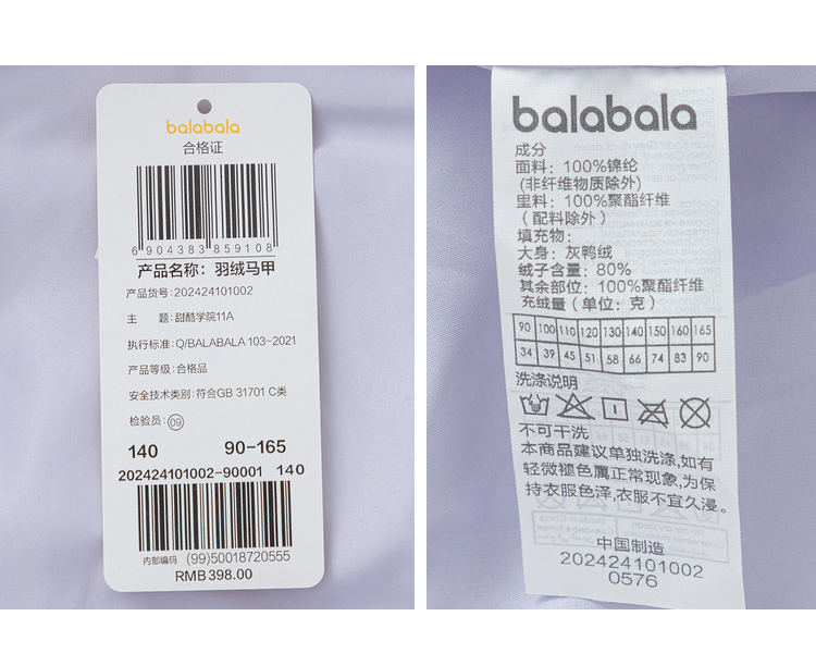 【库洛米IP】巴拉巴拉女童背心羽绒马甲秋冬童装儿童连帽三丽鸥萌