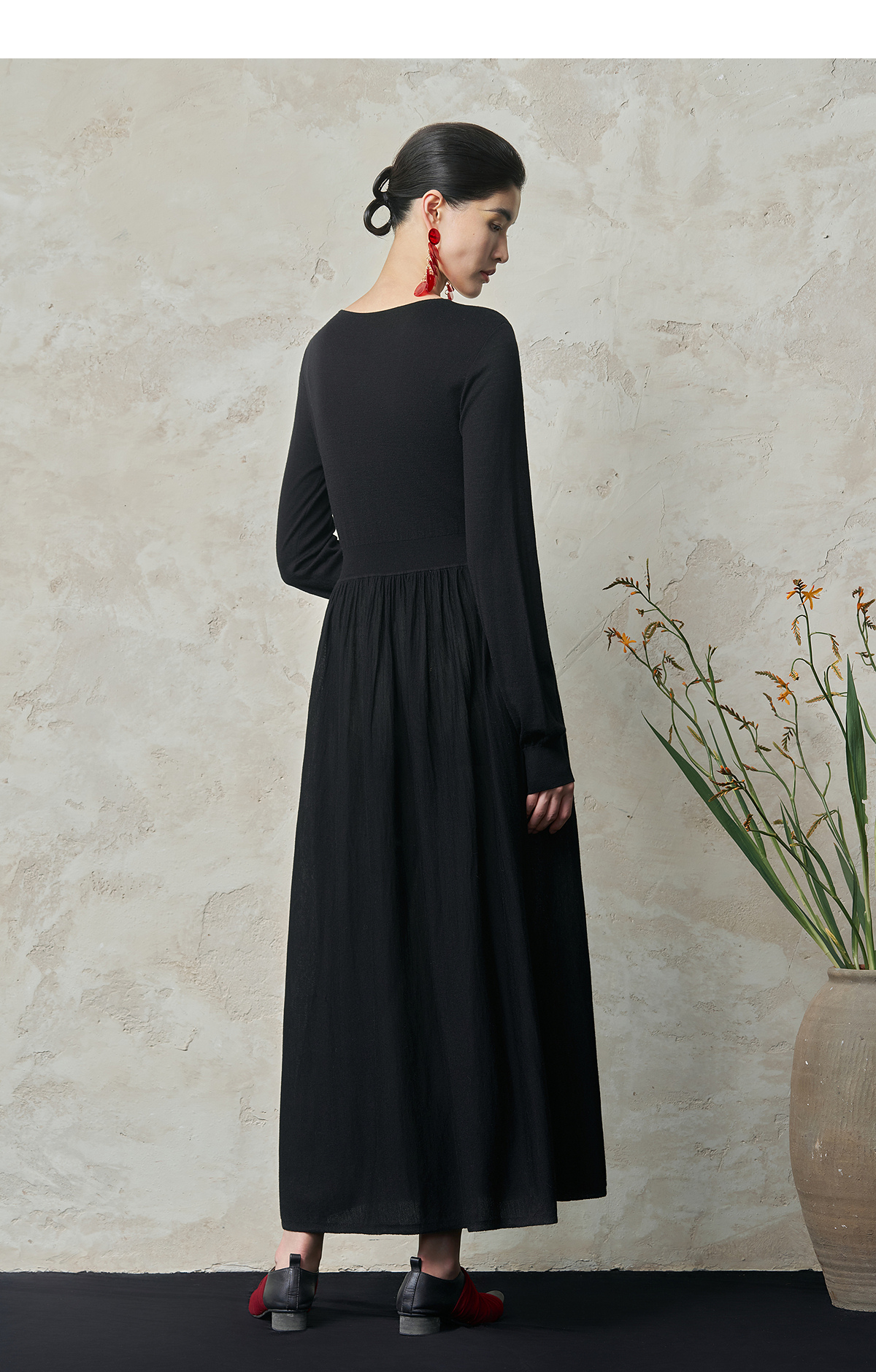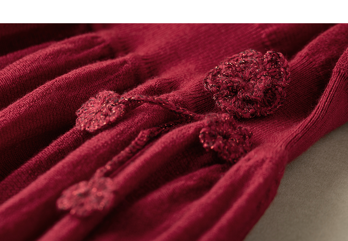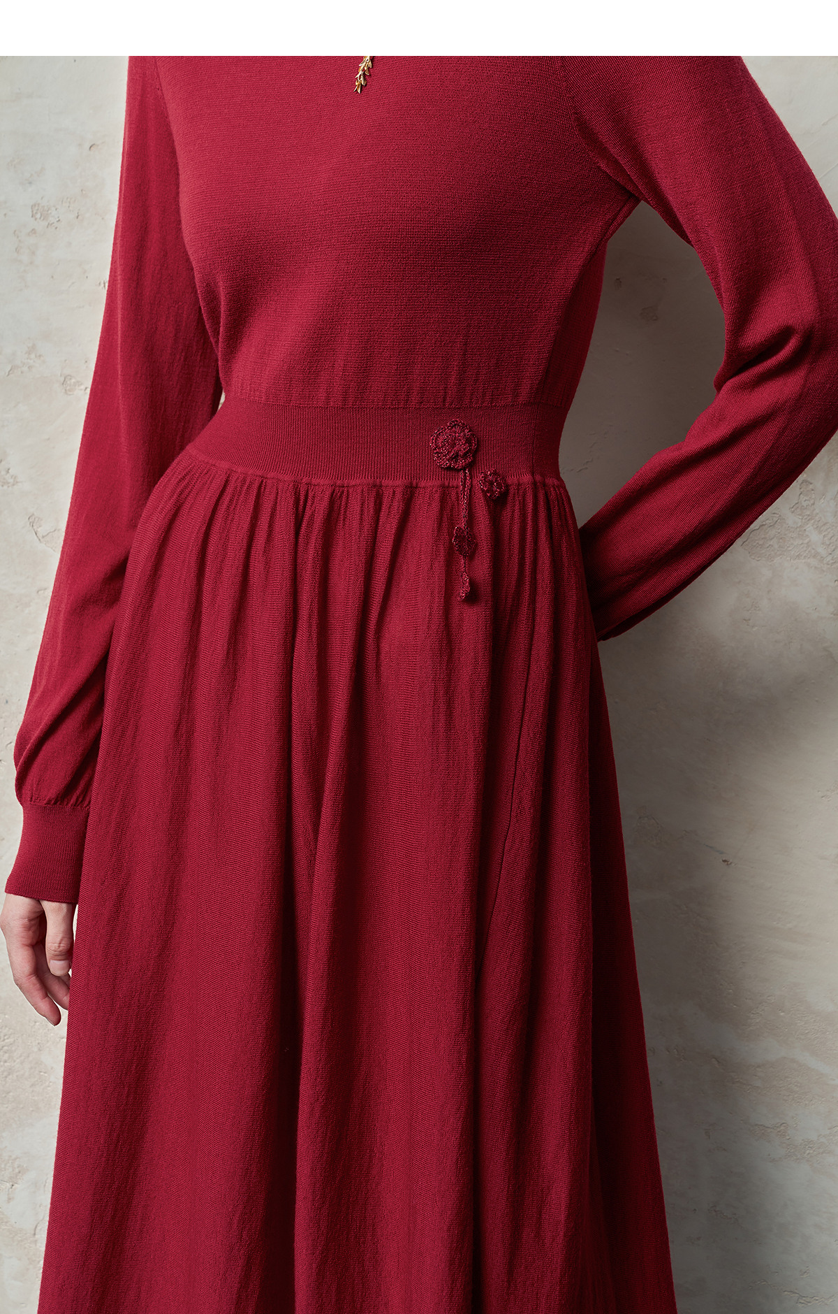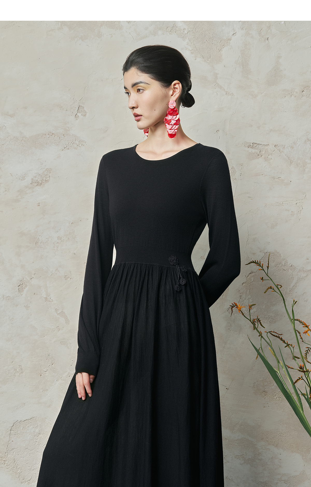 【林栖设计小店】绵羊毛连衣裙手钩花显瘦气质长袖2025秋冬新款毛织裙子女1954030