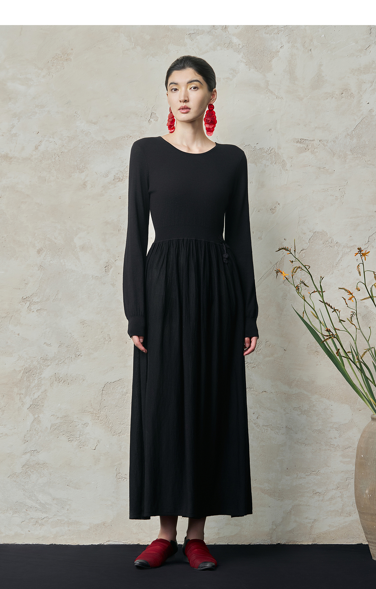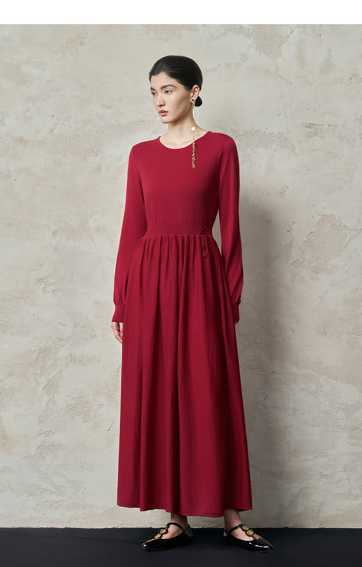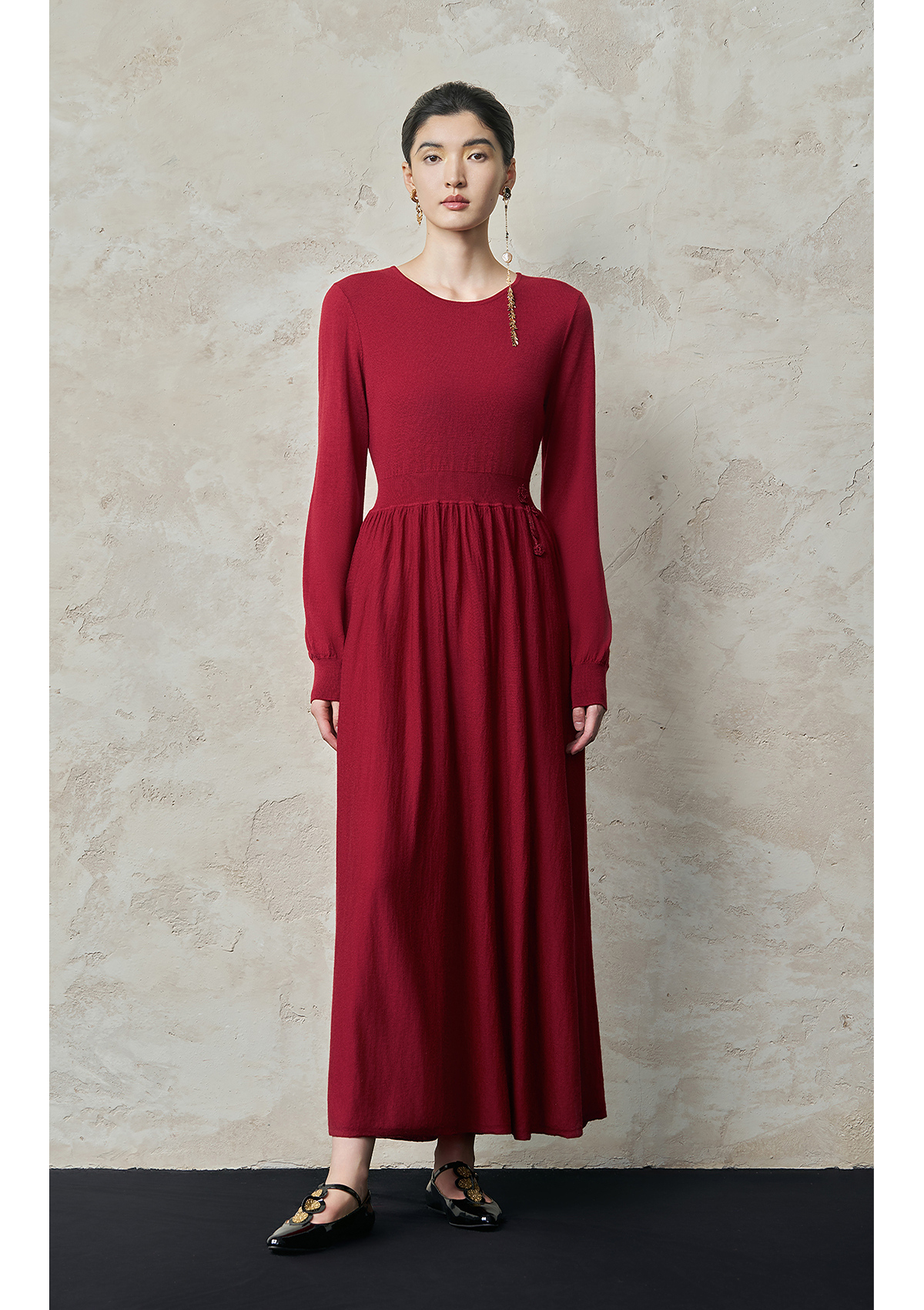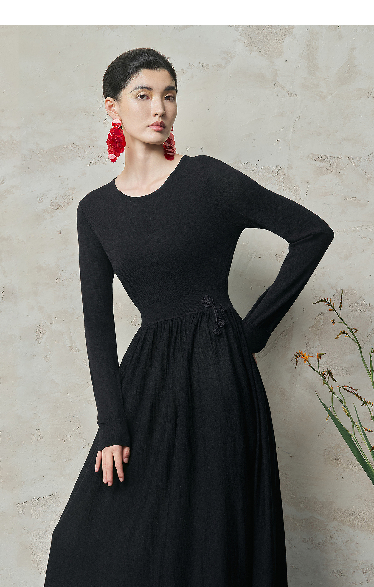 【林栖设计小店】绵羊毛连衣裙手钩花显瘦气质长袖2025秋冬新款毛织裙子女1954030