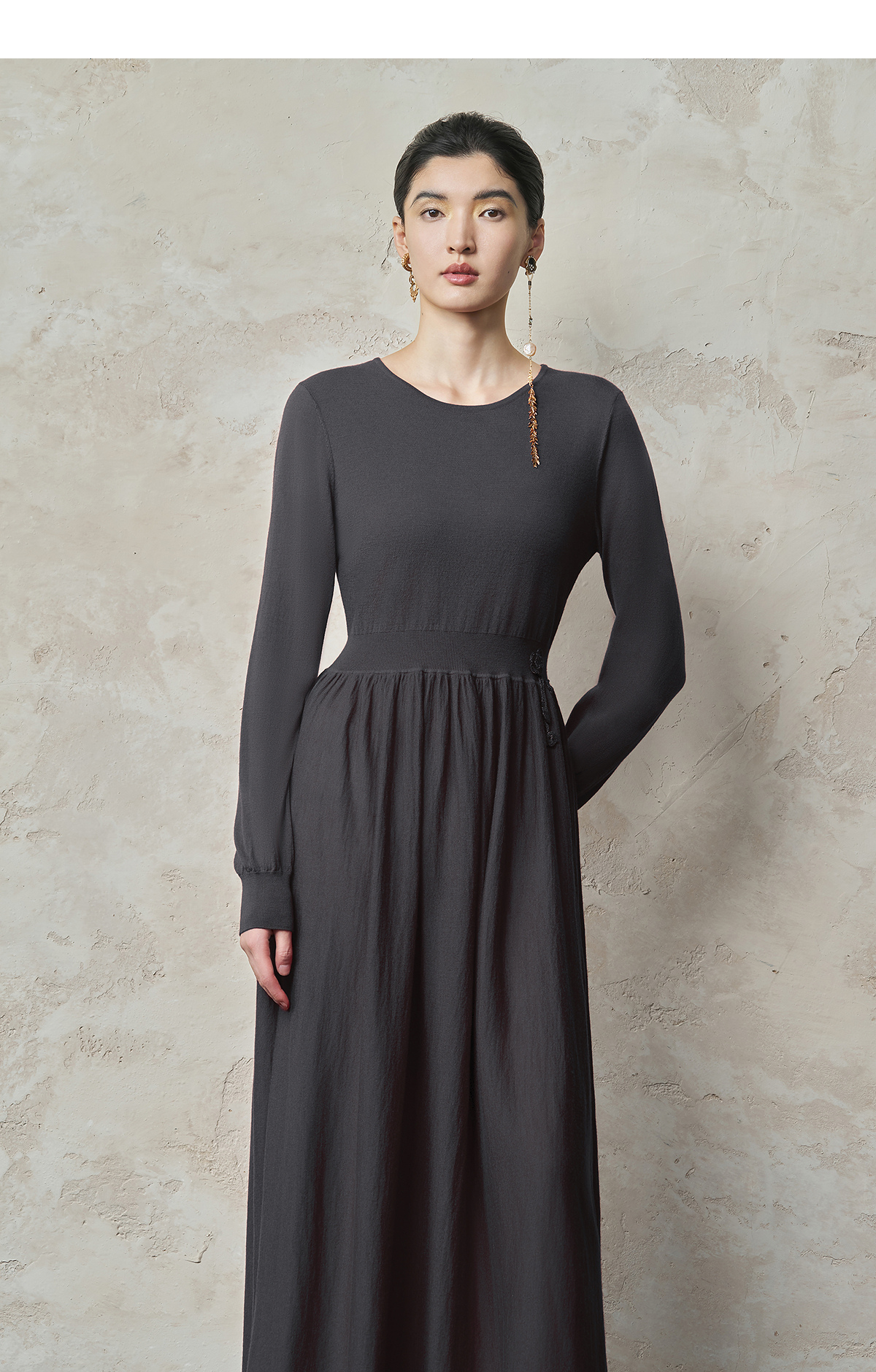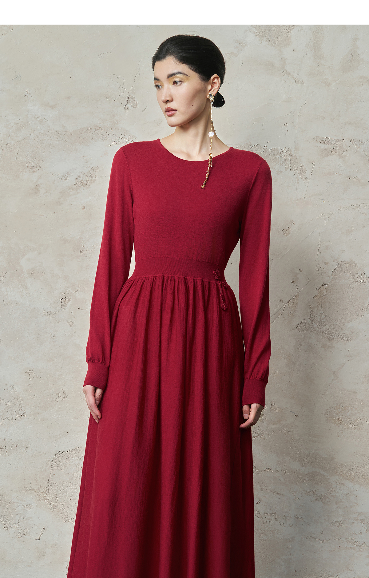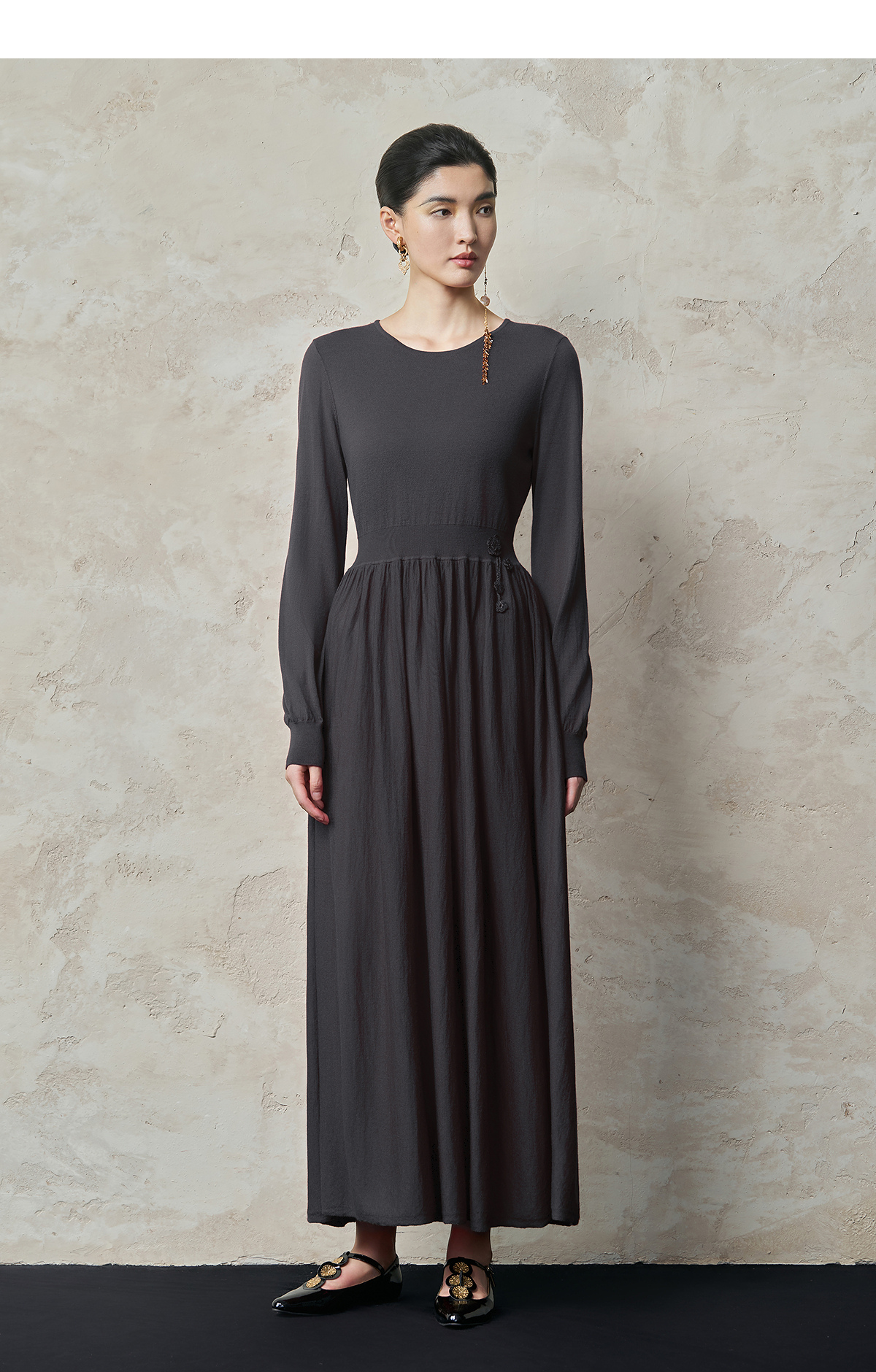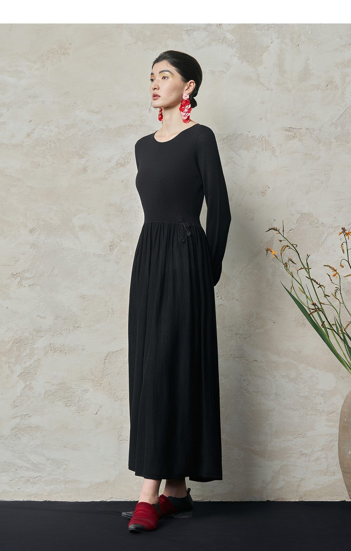 【林栖设计小店】绵羊毛连衣裙手钩花显瘦气质长袖2025秋冬新款毛织裙子女1954030