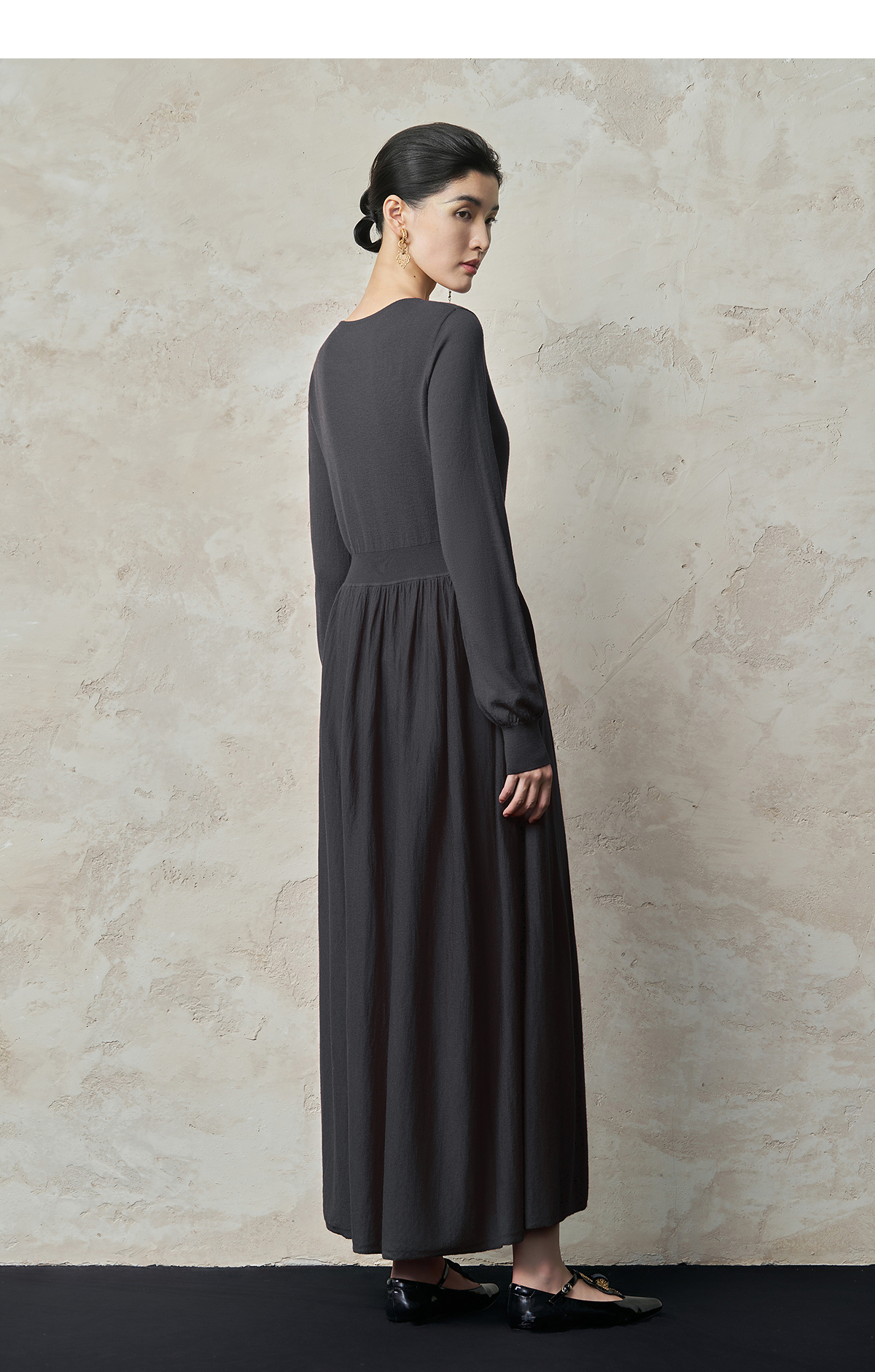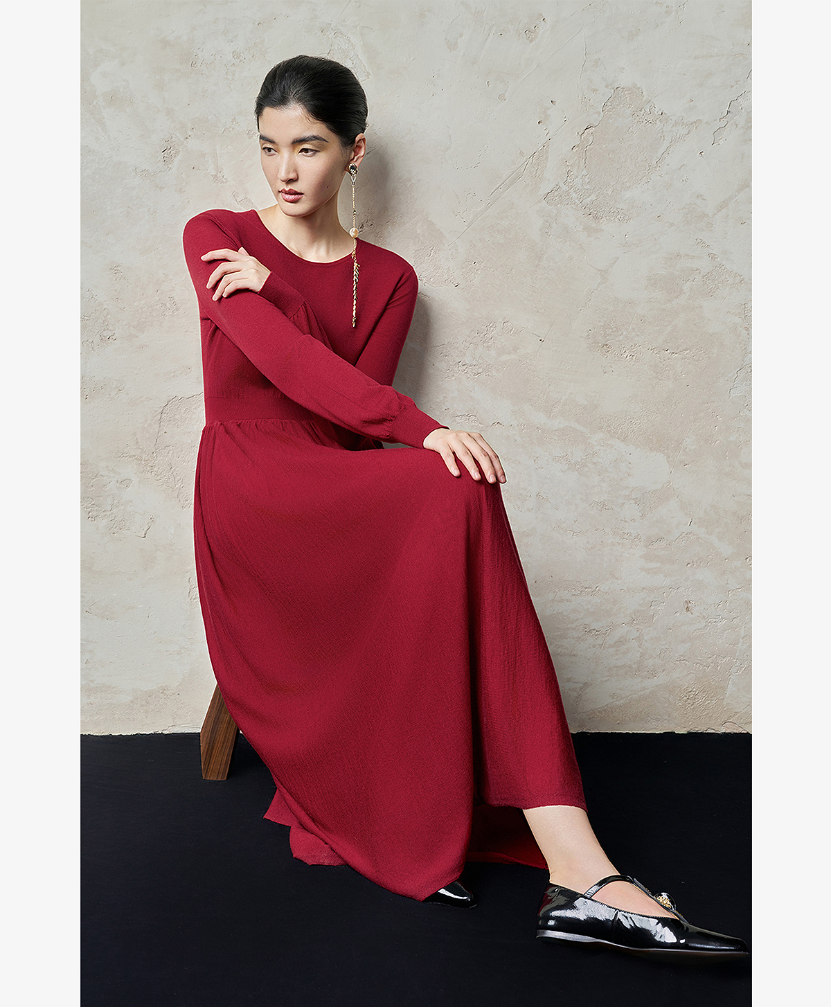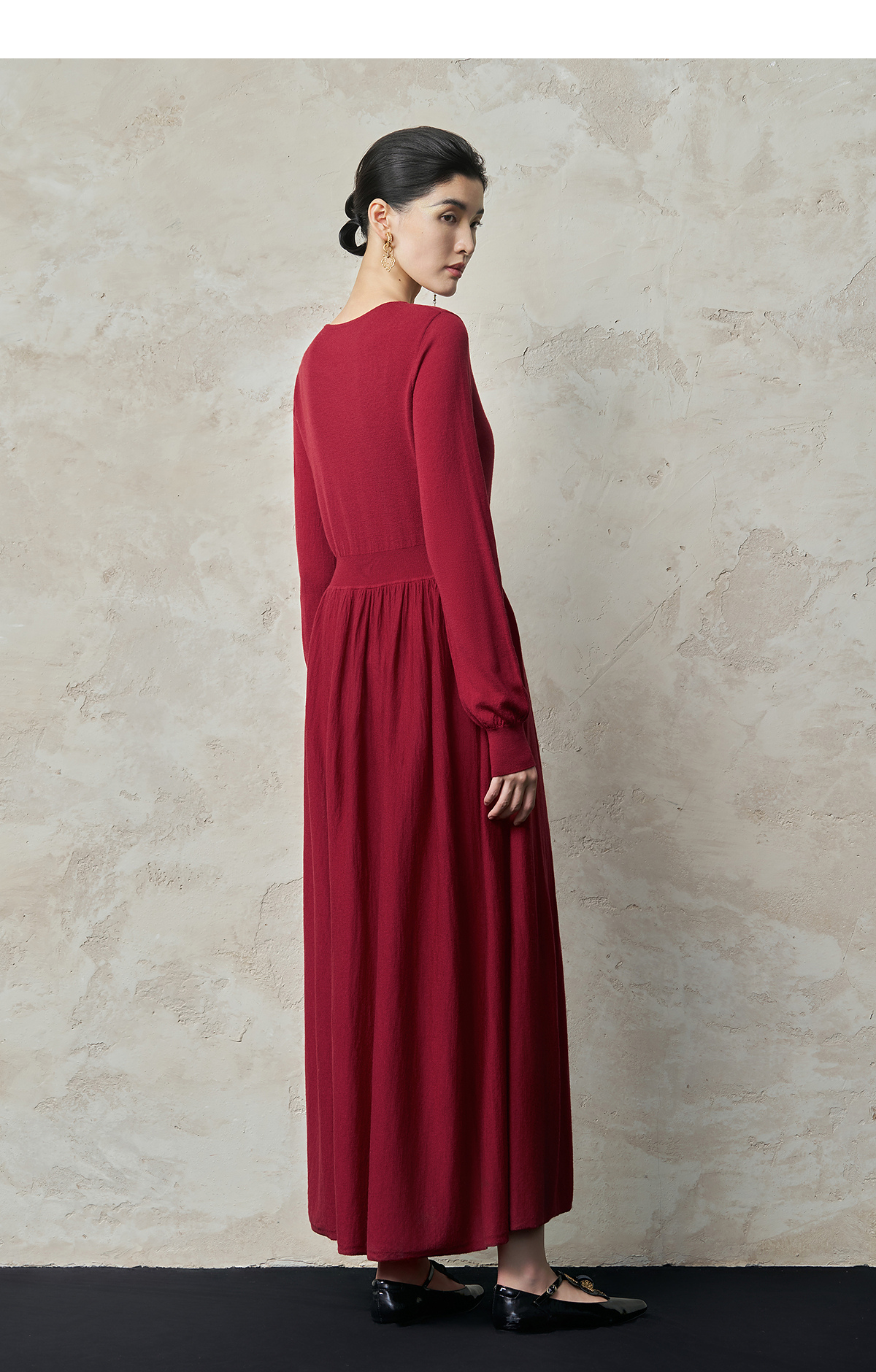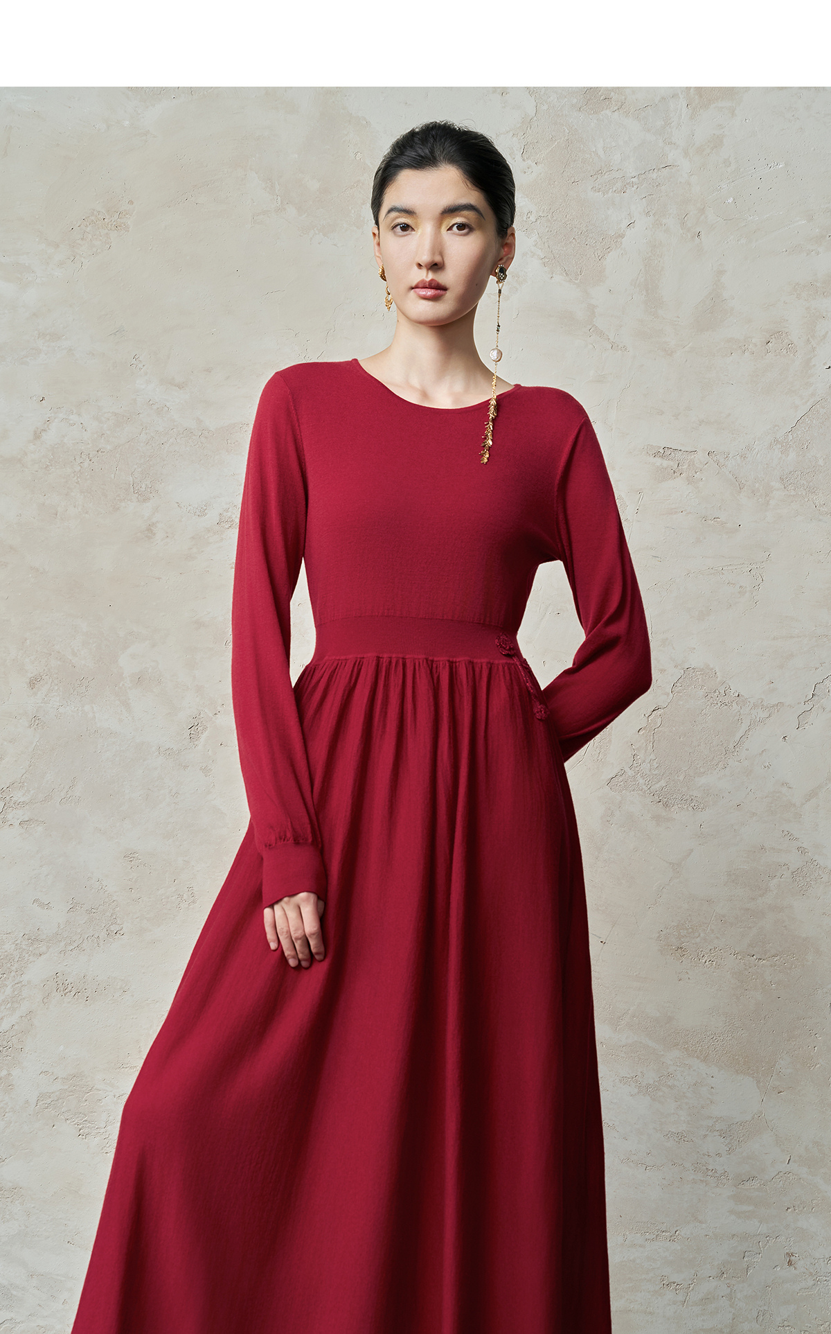 【林栖设计小店】绵羊毛连衣裙手钩花显瘦气质长袖2025秋冬新款毛织裙子女1954030