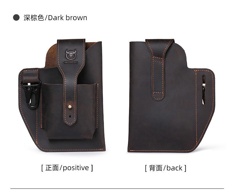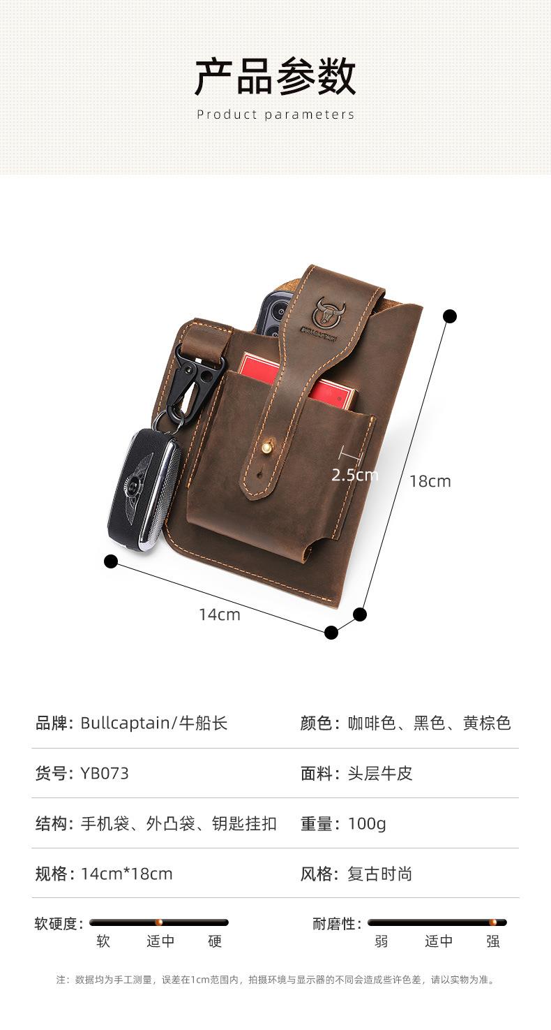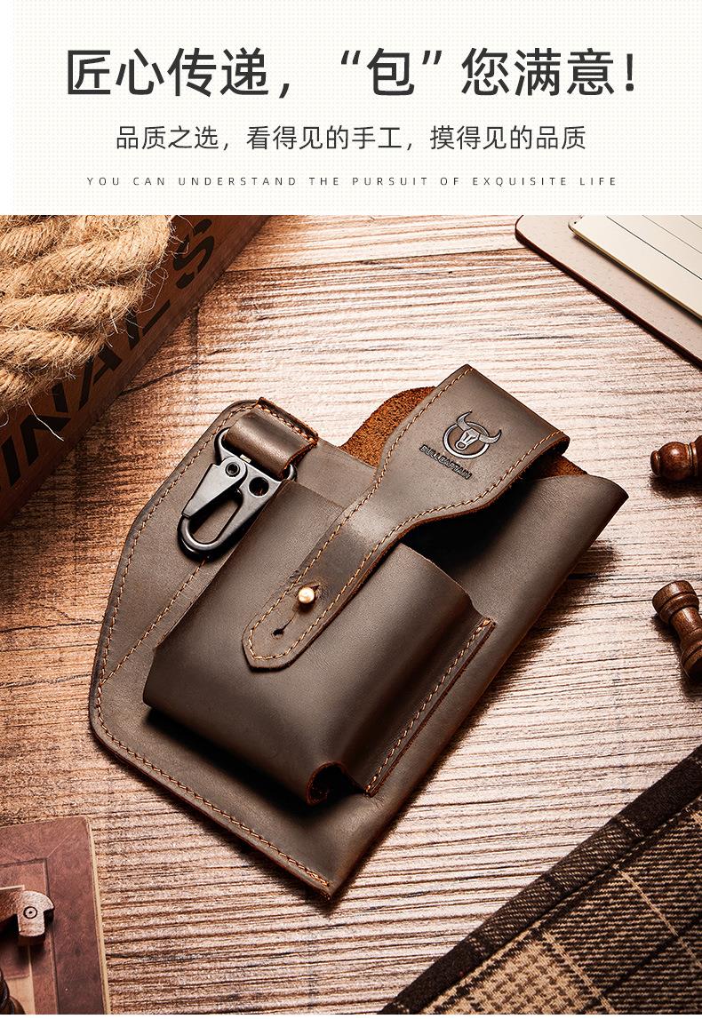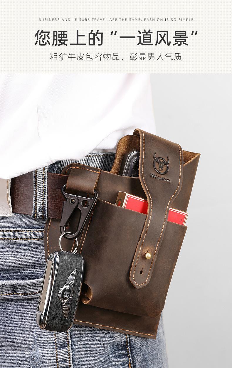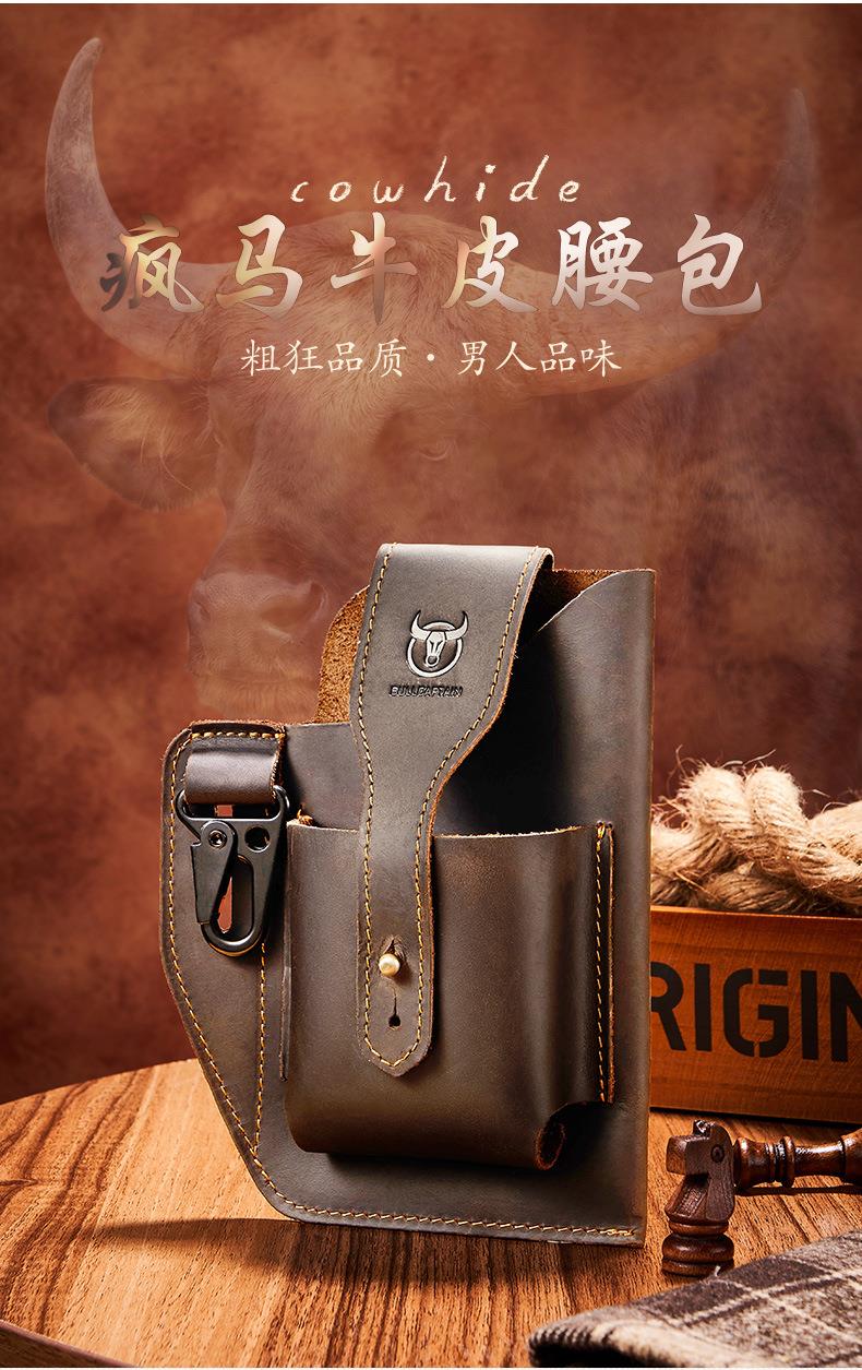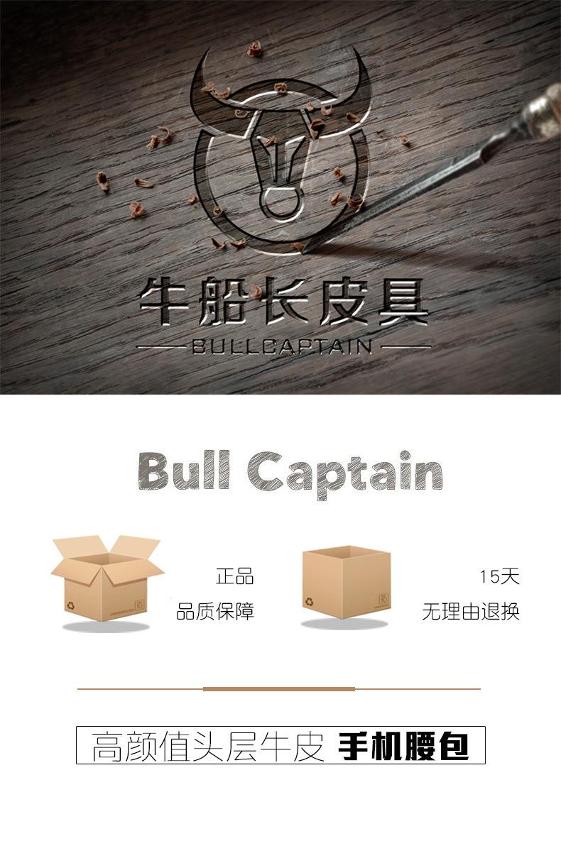 牛船长皮具复古腰包男真皮多功能手机包头层牛皮穿皮带腰带包