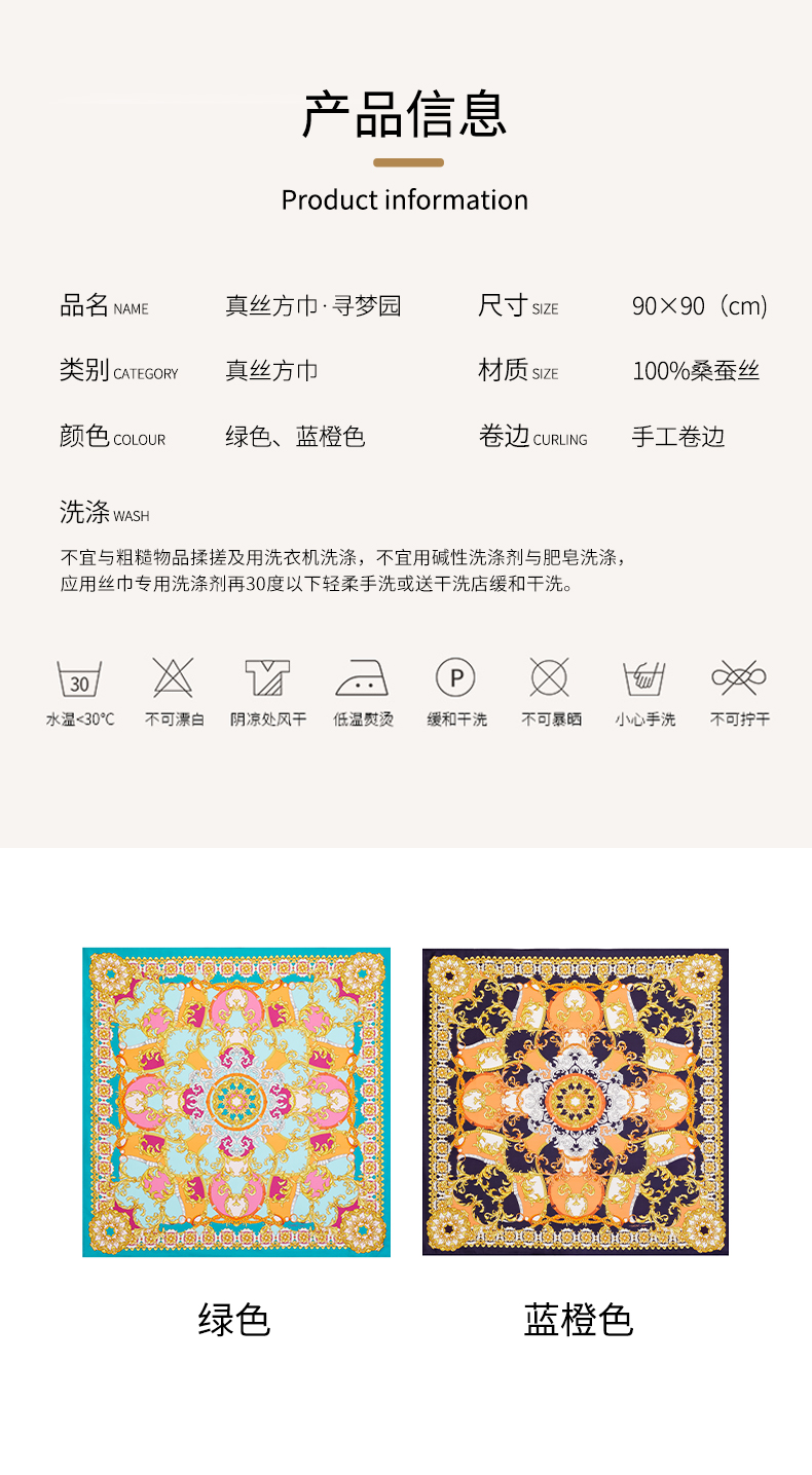 SAINTJOY/上久楷 真丝方巾 寻梦园 FJS22025