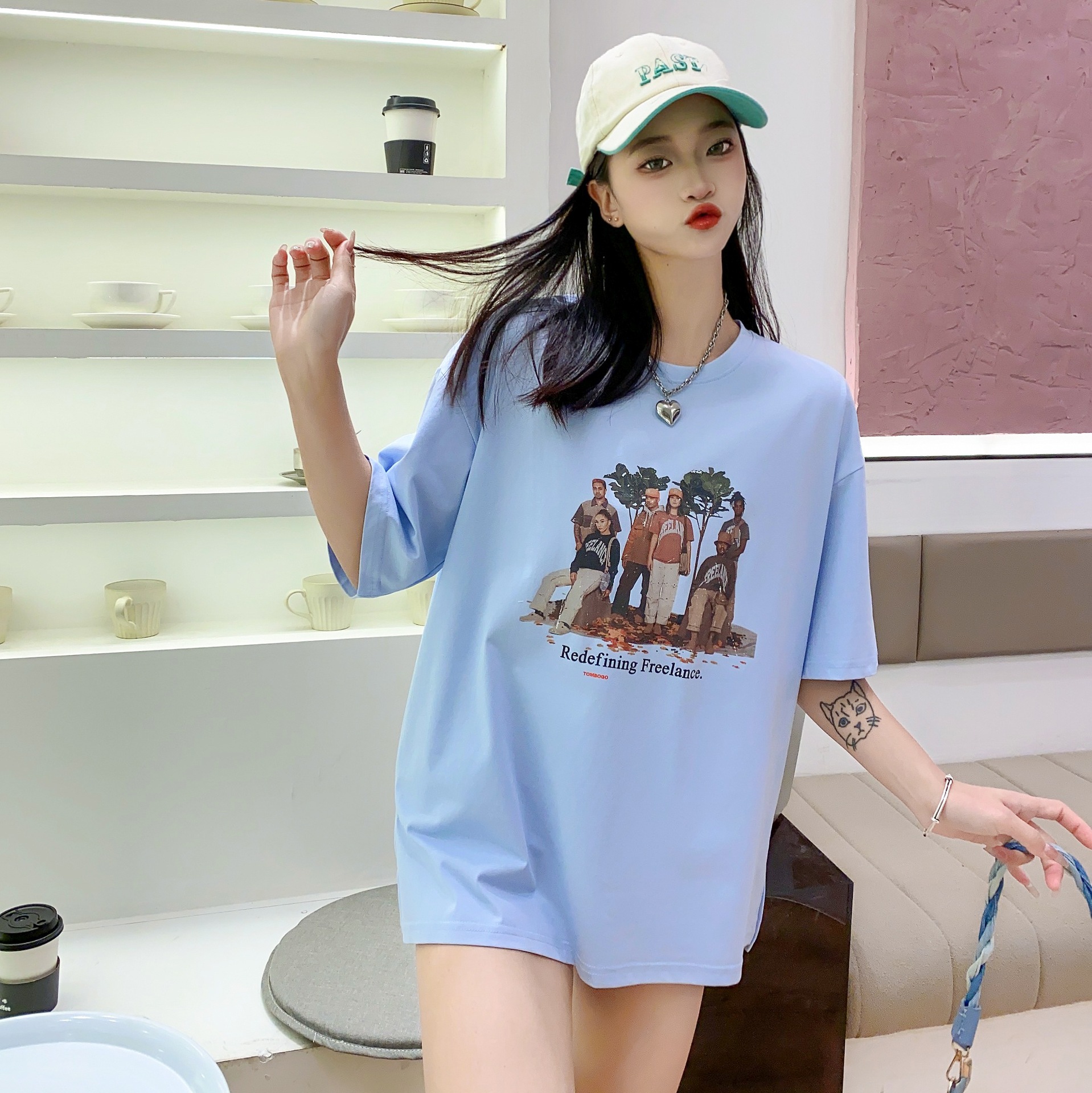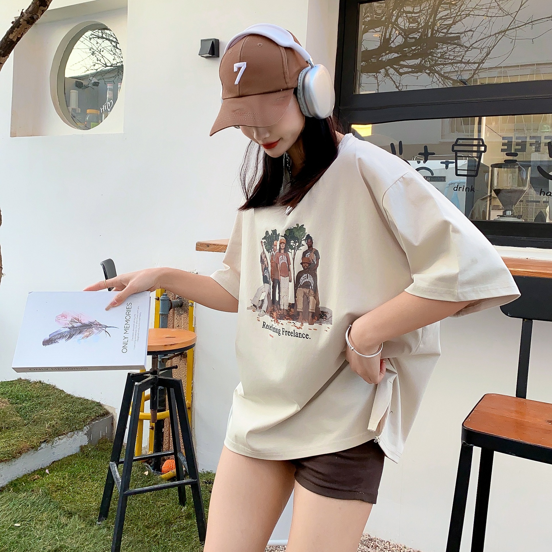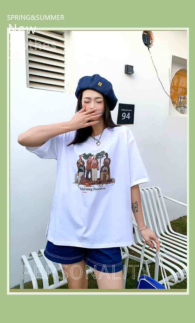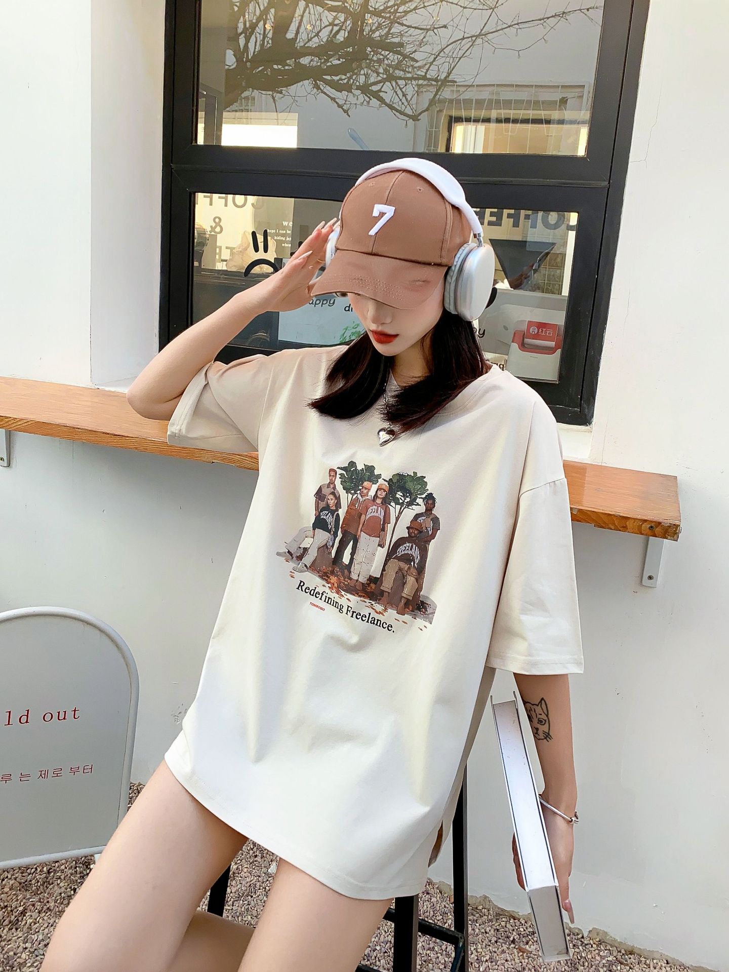 2023女装新款美式复古短袖女t恤夏圆领半袖体恤宽松百搭休闲上衣4.3版