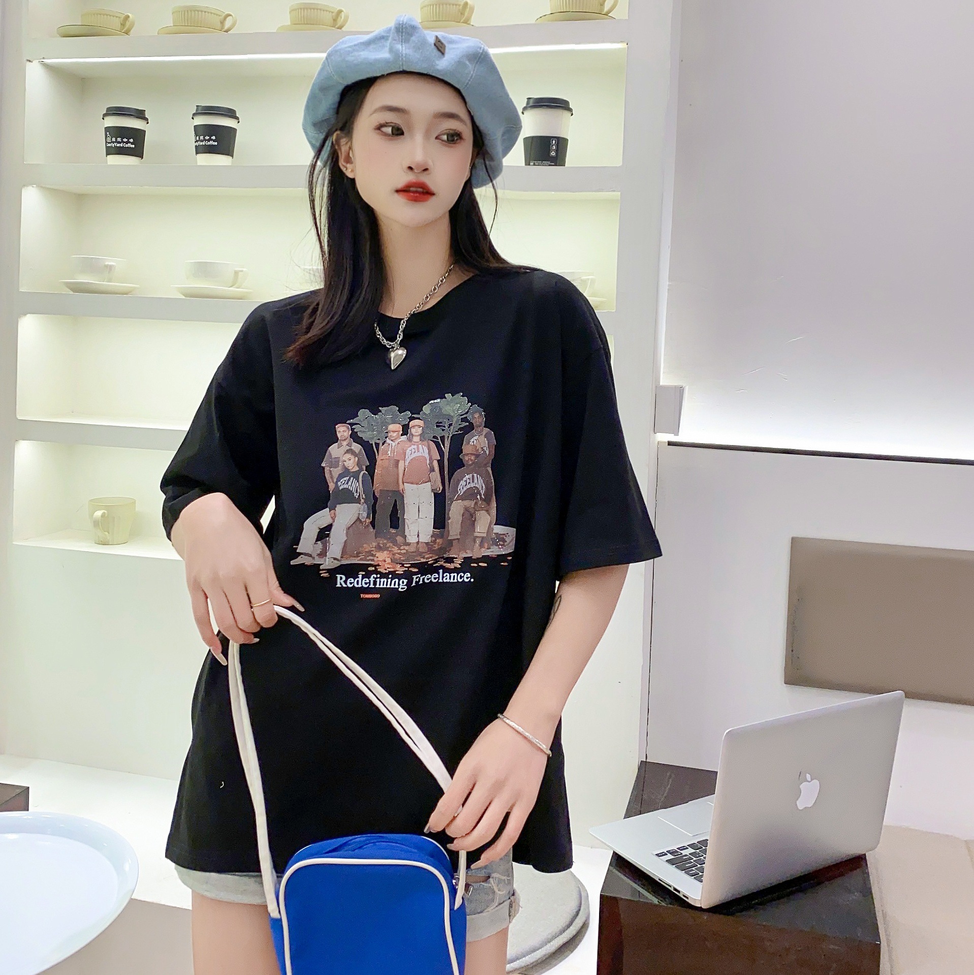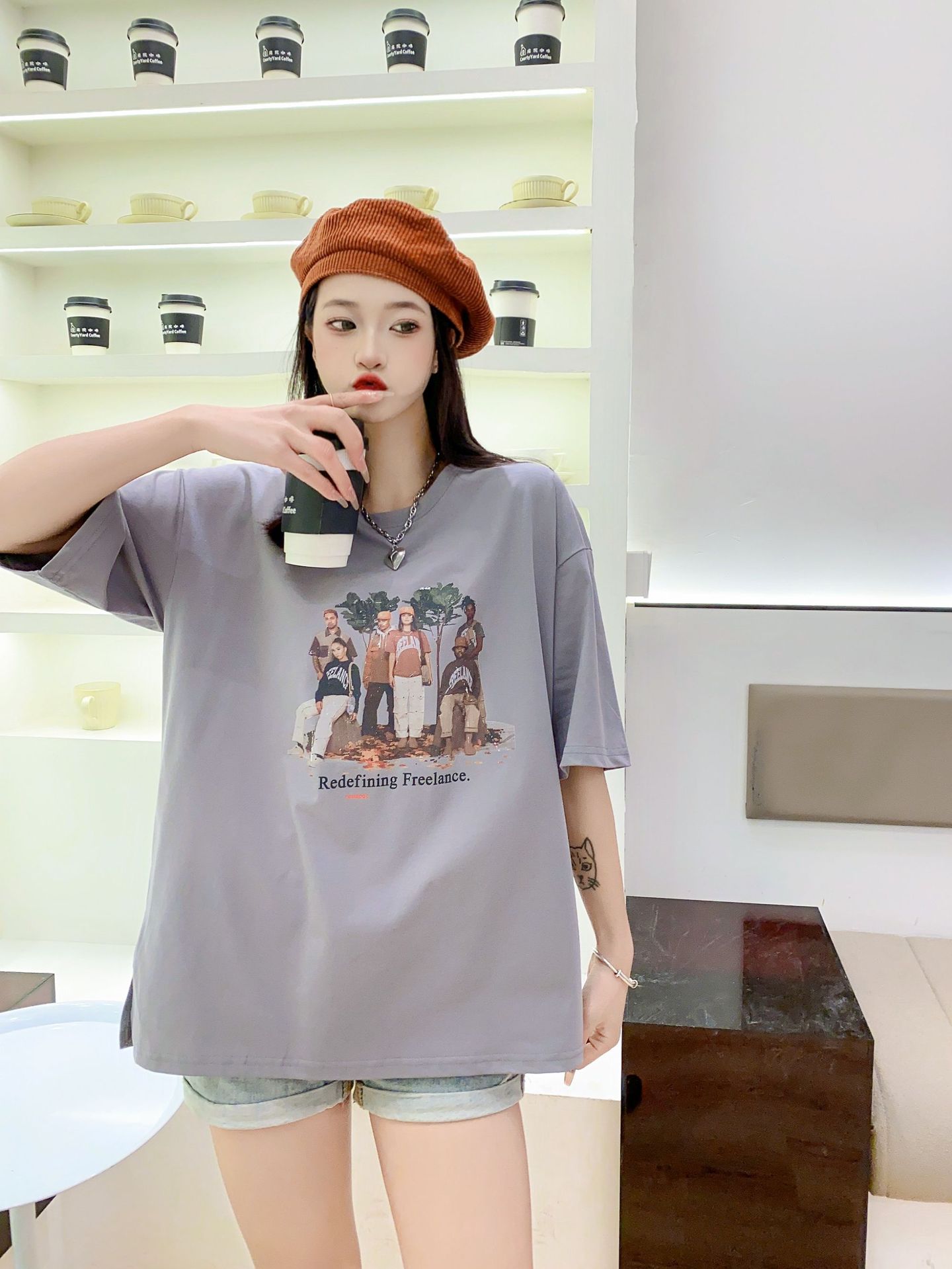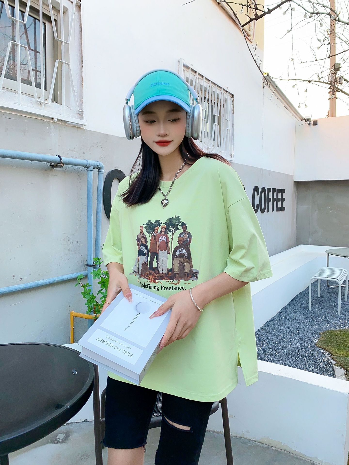 2023女装新款美式复古短袖女t恤夏圆领半袖体恤宽松百搭休闲上衣4.3版