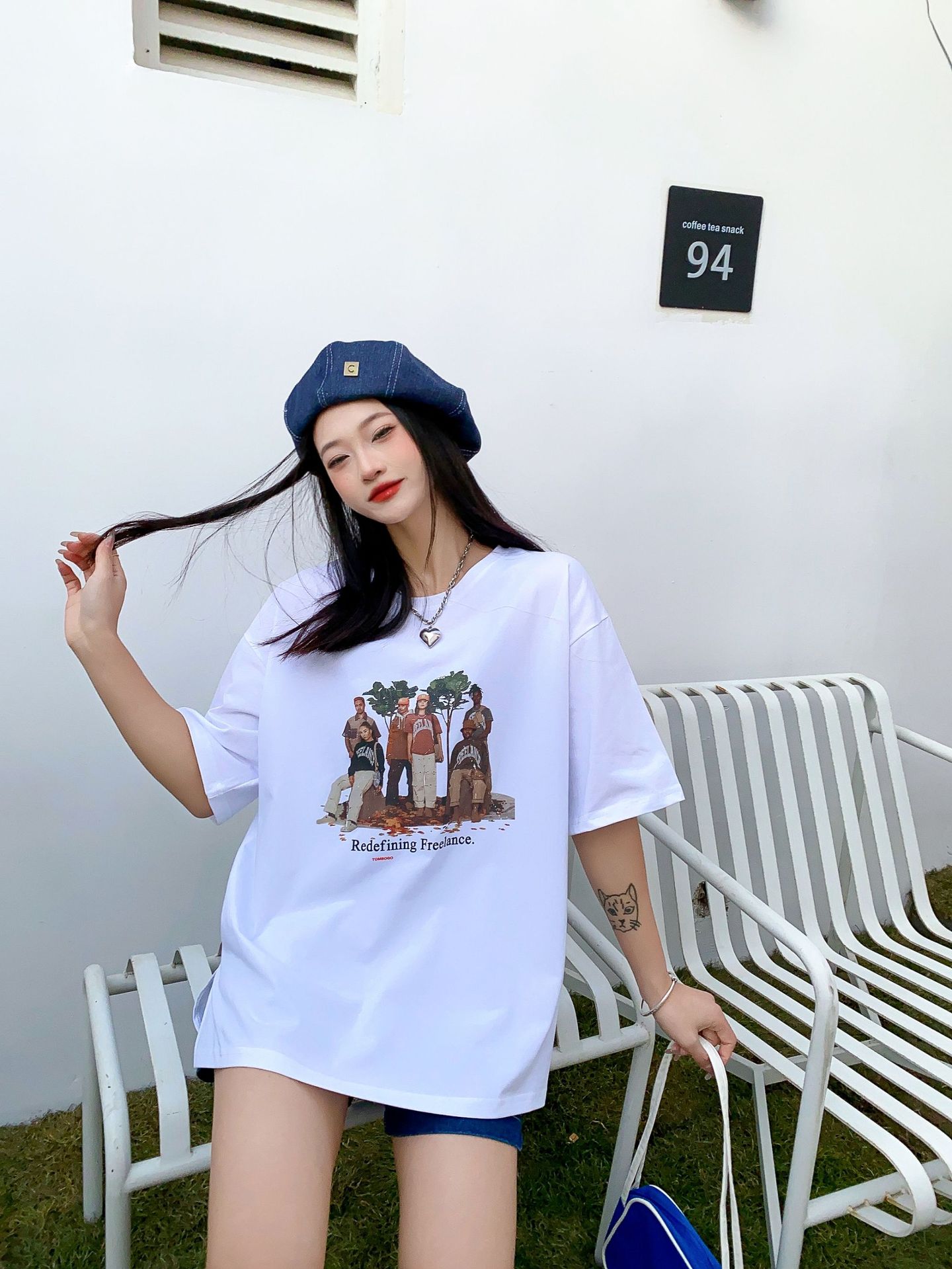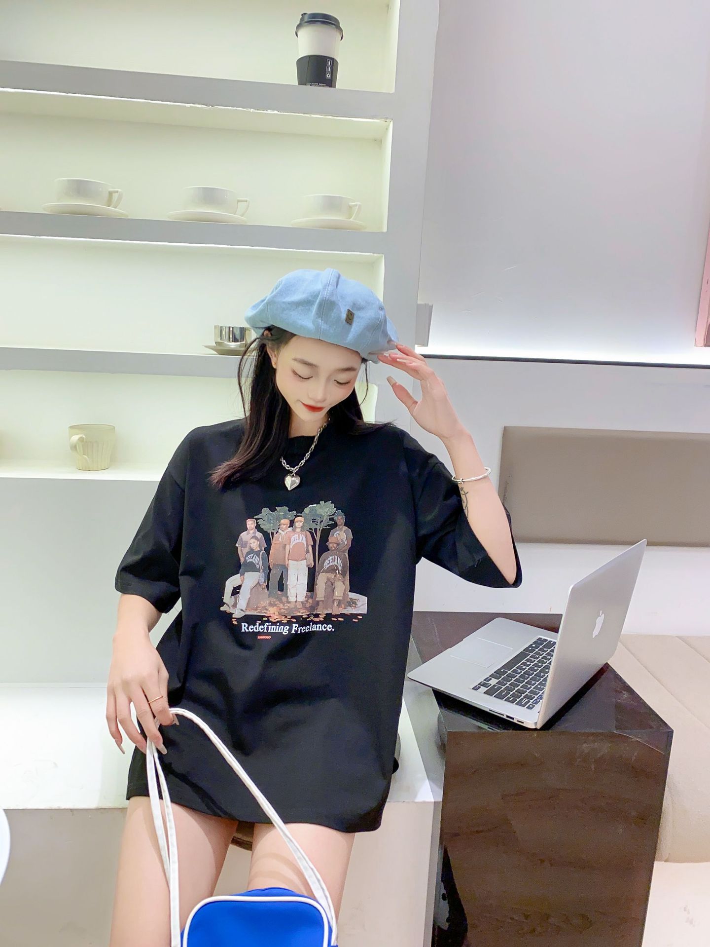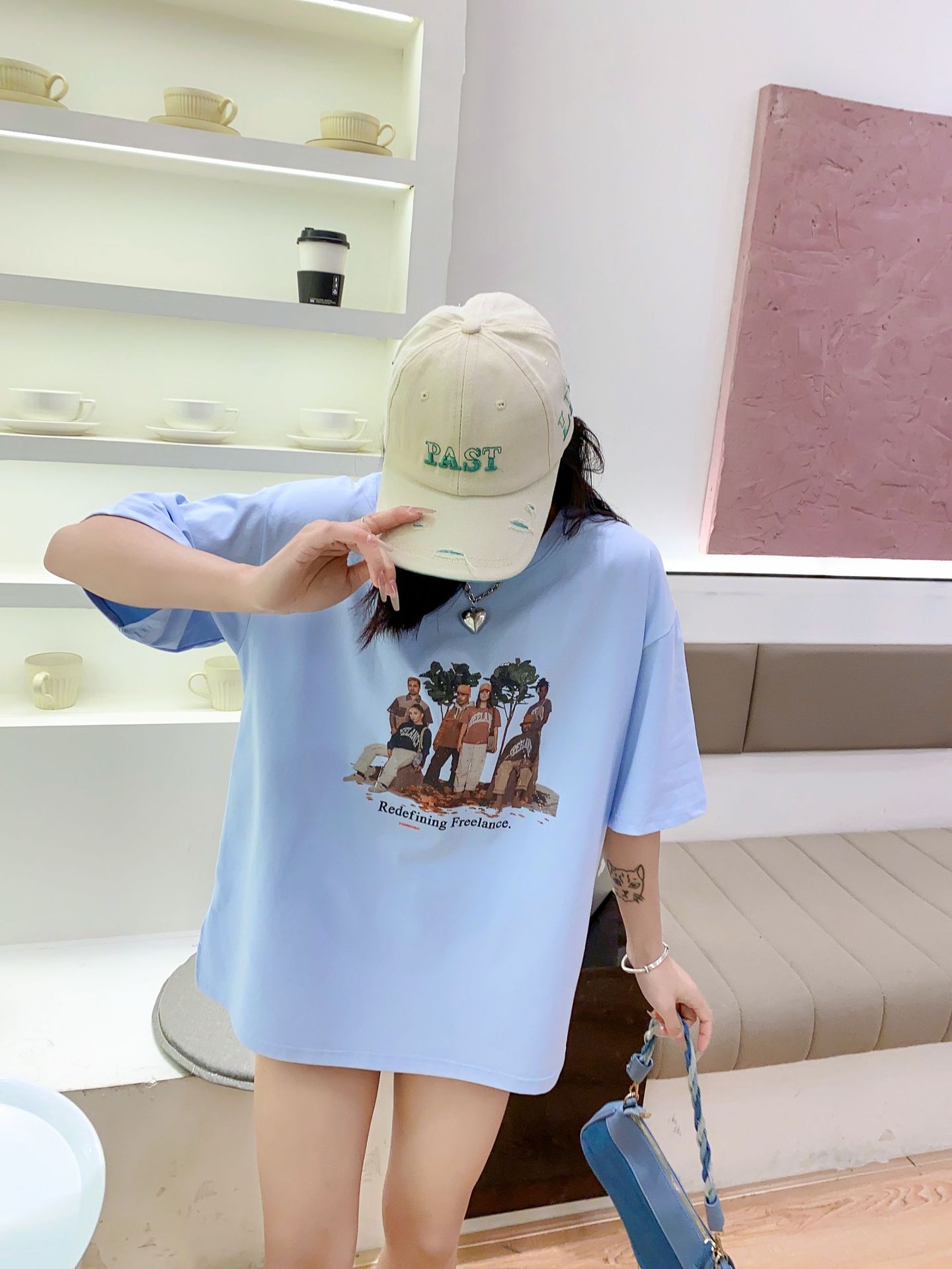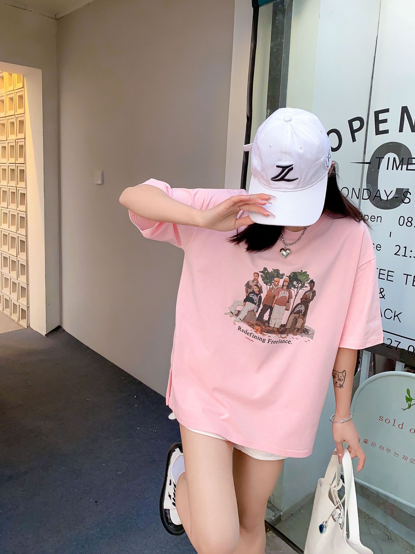 2023女装新款美式复古短袖女t恤夏圆领半袖体恤宽松百搭休闲上衣4.3版