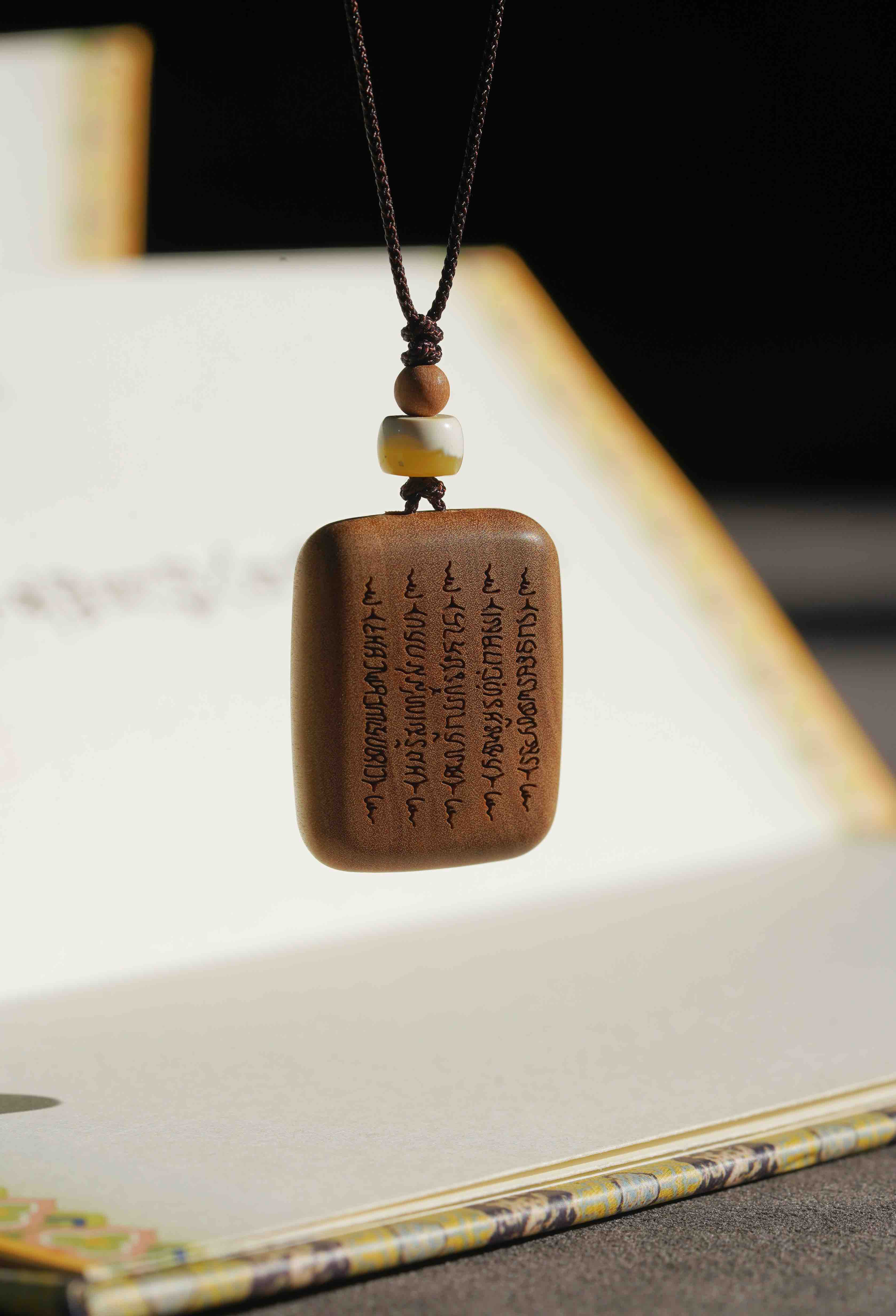 老山檀香手工雕刻无事牌,梵文平安喜乐,招财聚福。