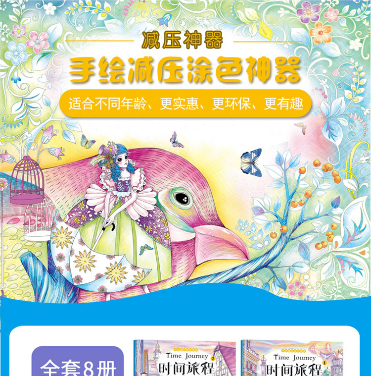 A145《手绘减压涂色神器 神秘花园》(8册)【15元付邮领书】