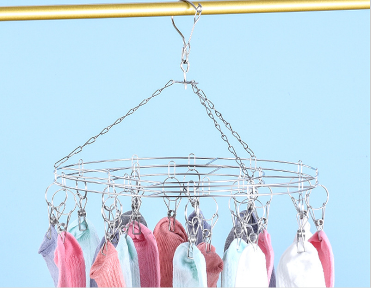 8.5-8.8不锈钢袜架 圆形线夹24夹晒袜架实心加粗