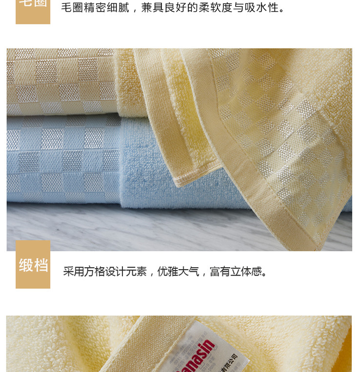康乃馨 魔方格纯棉轻柔面巾浴巾 单条装