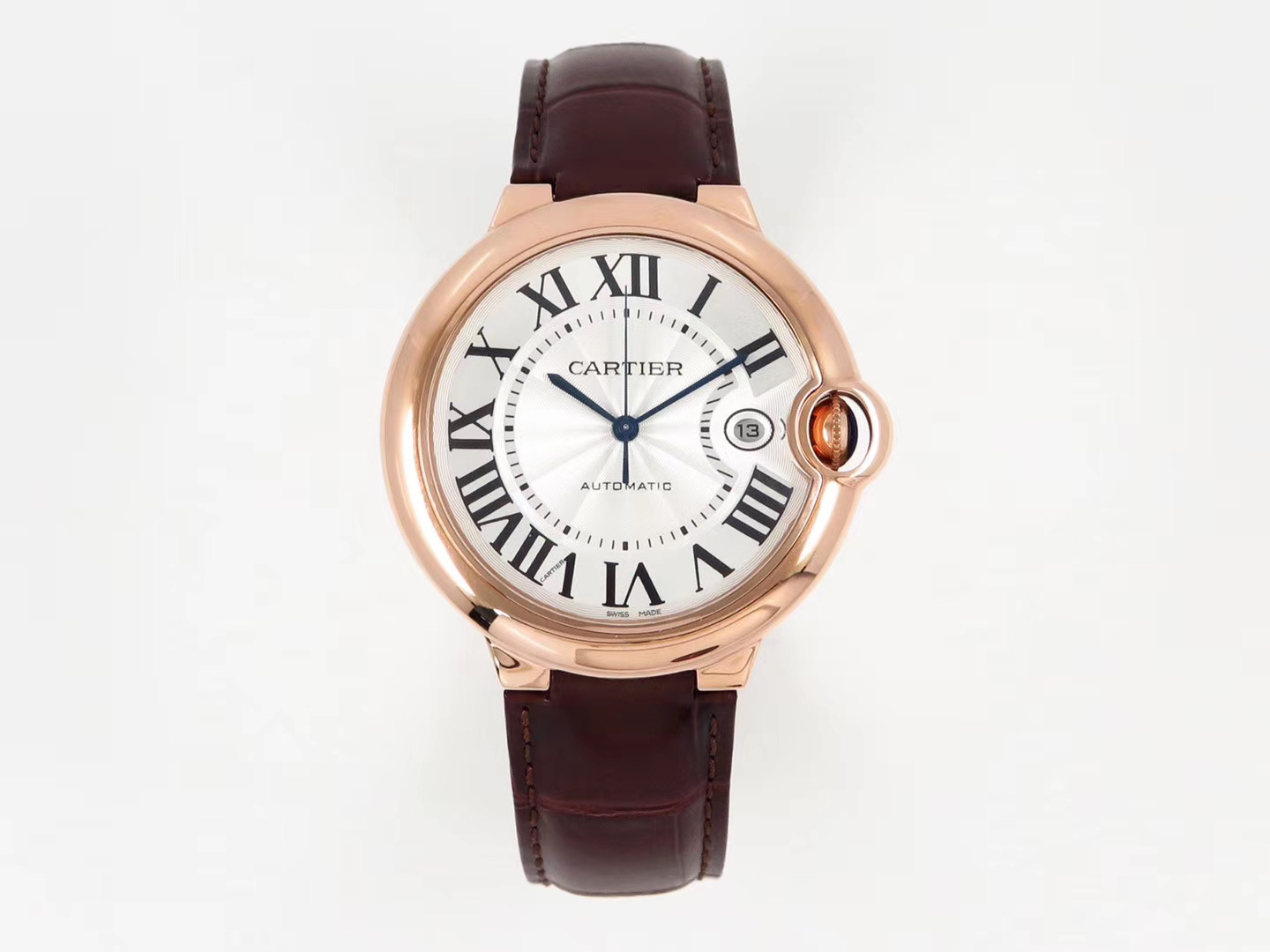 V6 厂 卡地亚 全玫瑰金 蓝气球 可搭载皮带和钢带,42mm 直径42x13mm,搭载2824自动机械机芯,316精钢表壳,凸形鱼眼蓝宝石镜面,烧蓝钢针,折叠扣,防水50米!乱真之作!