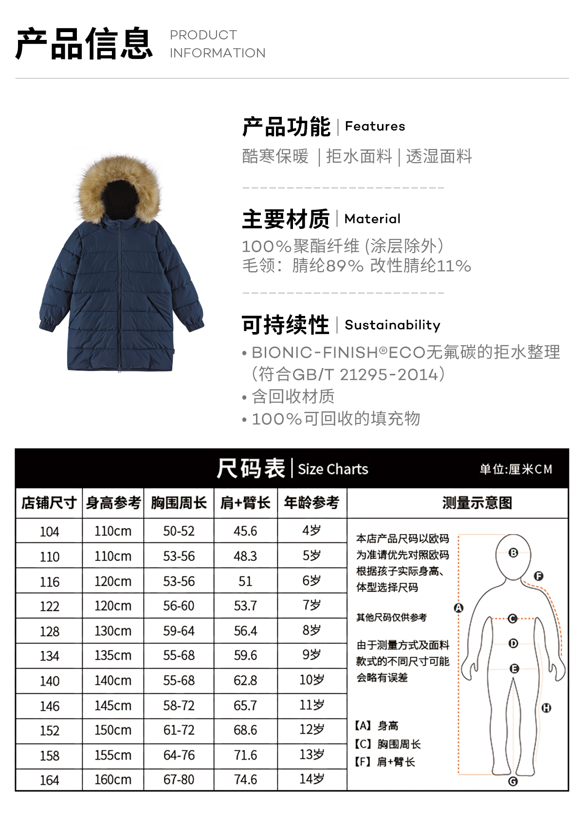 芬兰reima2025秋冬新款男女儿童中童拒水拒风易运动长款棉夹克