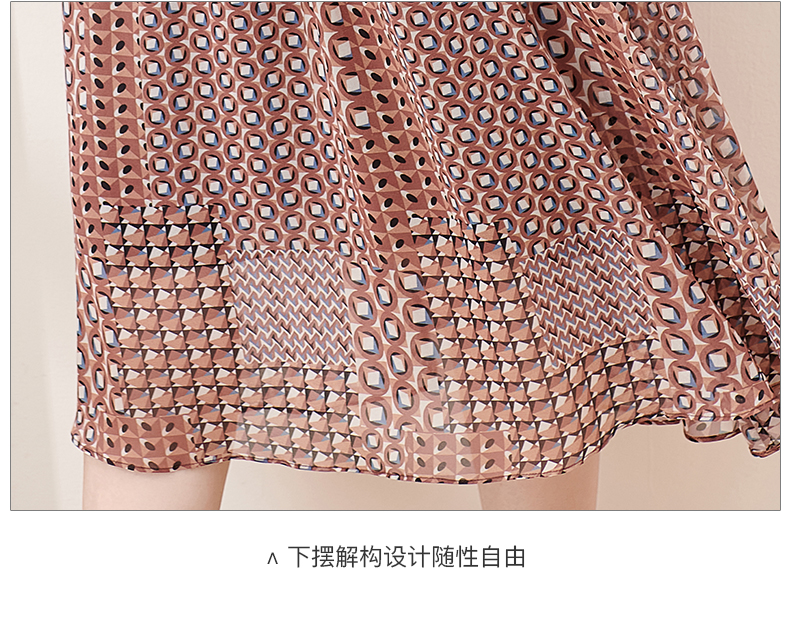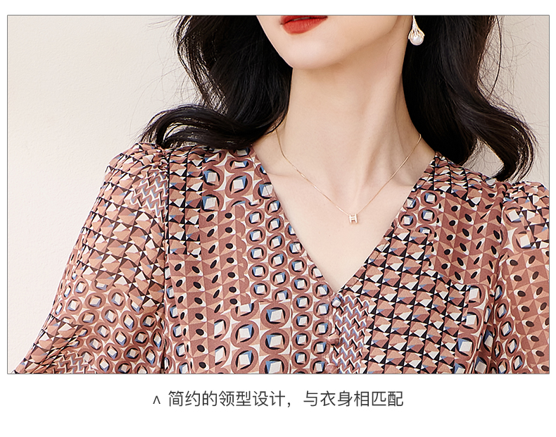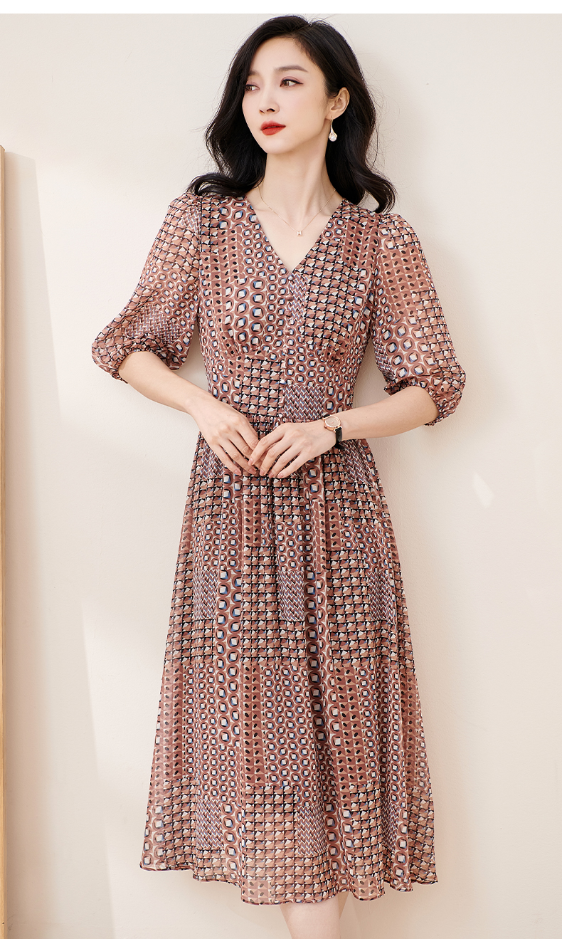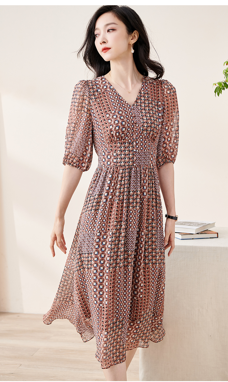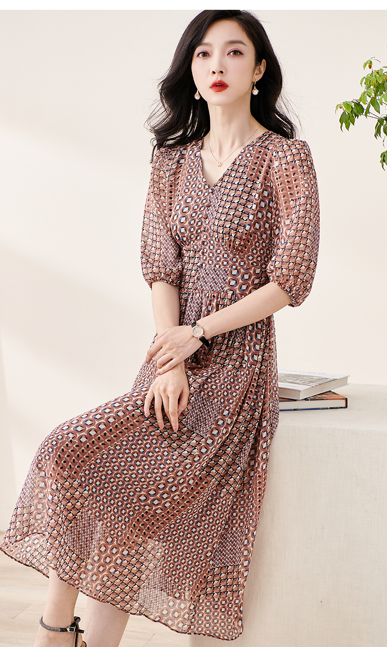 剩S/M/L 米思阳2025夏季新款知性复古印花灯笼袖连衣裙收腰大摆雪纺裙1899