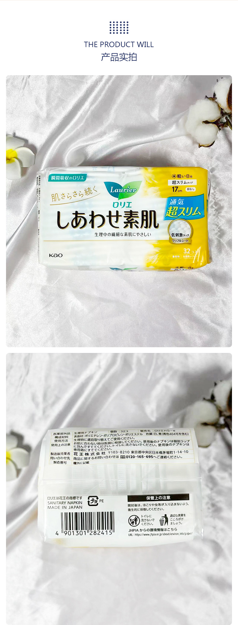 3包|【一般贸易中文标】日本花王卫生巾乐而雅F系列日用17cm*32片(新老包装随机发货)