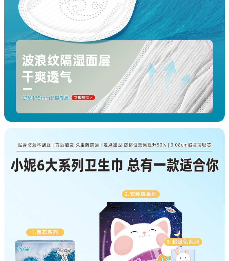 小妮宽芯丝薄系列护翼卫生巾日用夜用多规格可选