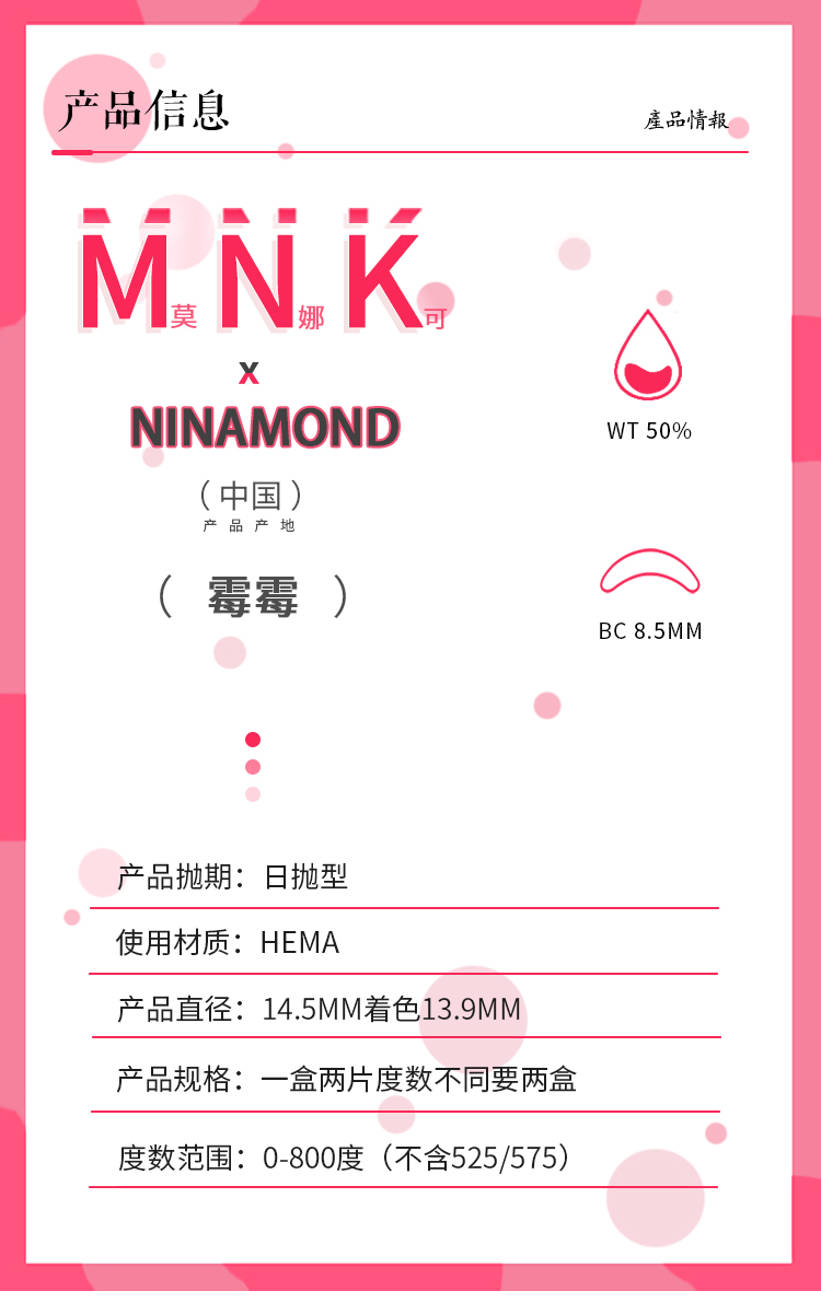 ninamond日抛cos 霉霉 直径14.5mm着色14.0mm (两片装) 预计十月中旬到货