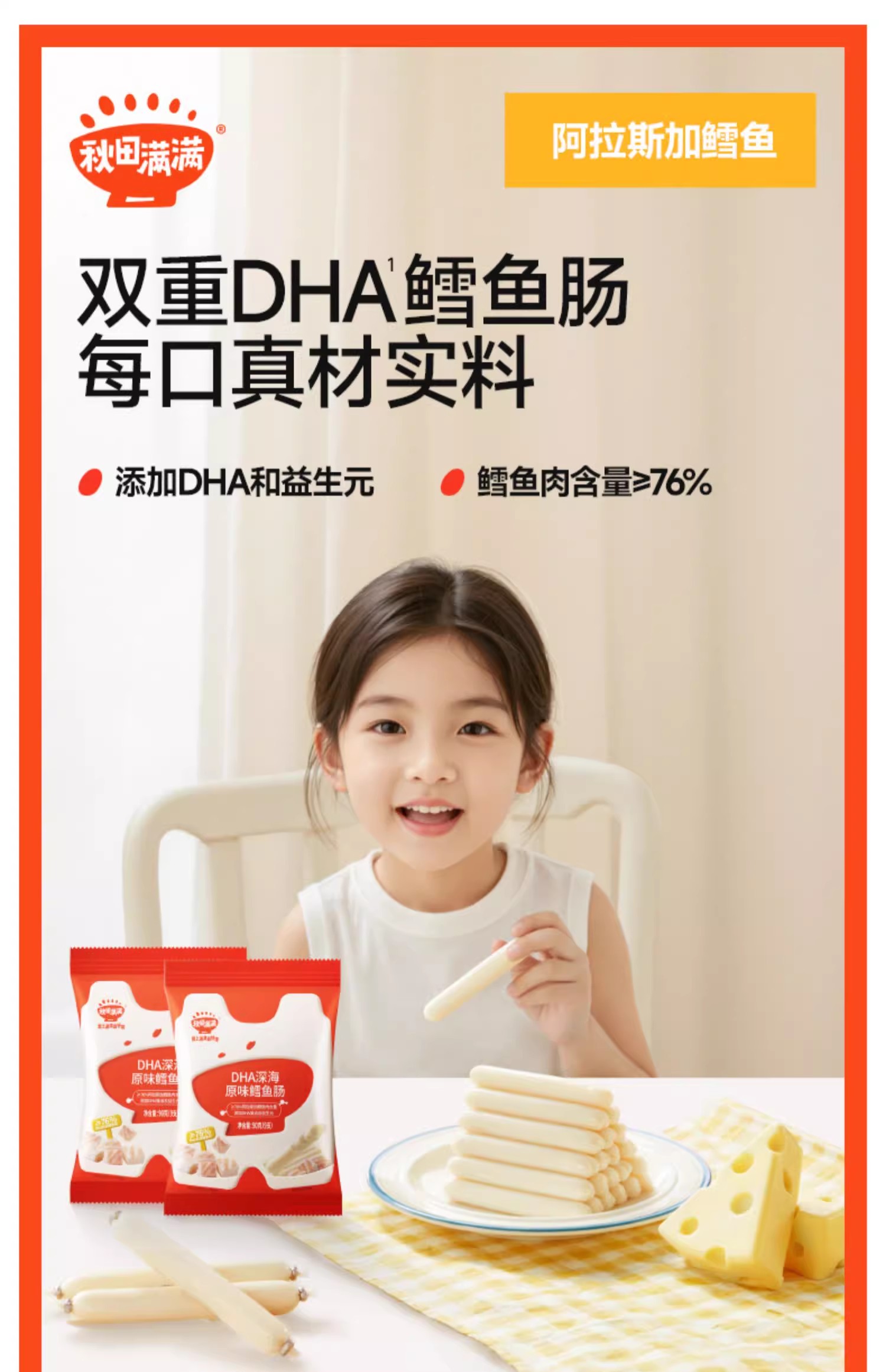 秋田满满DHA深海鳕鱼肠76%(原味)90g