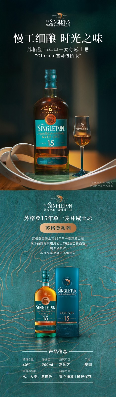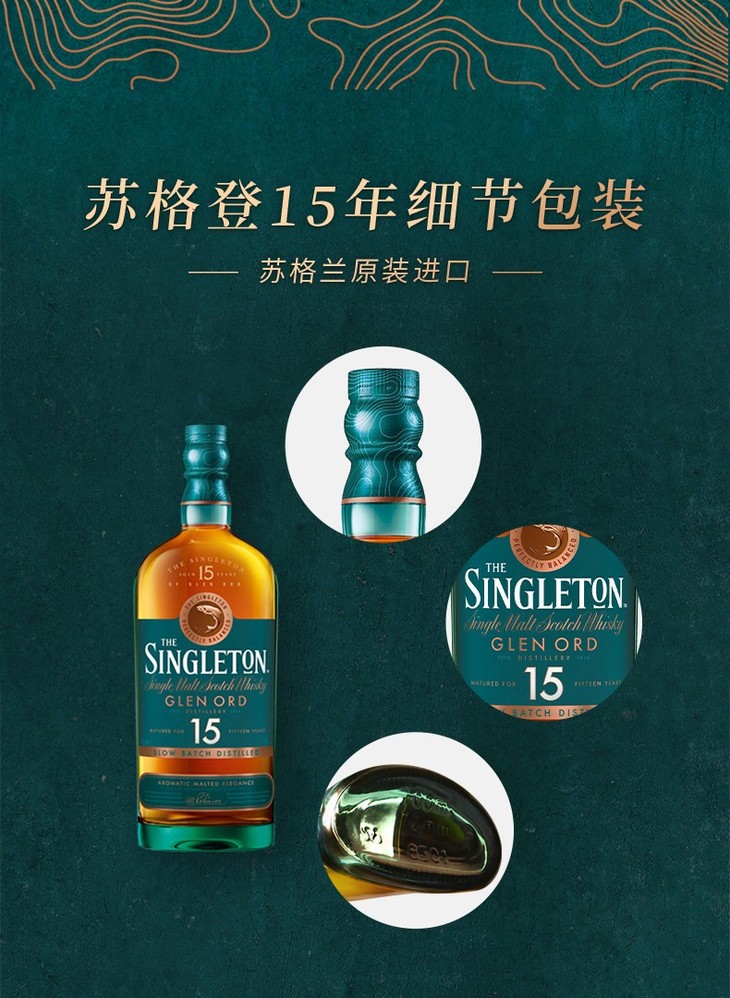 英国苏格登15年 单一麦芽苏格兰欧德威士忌700ml/1瓶