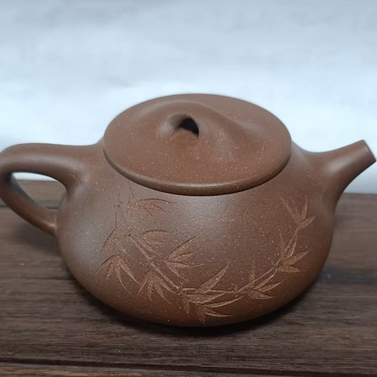宜兴原矿紫砂 段泥手工石瓢壶