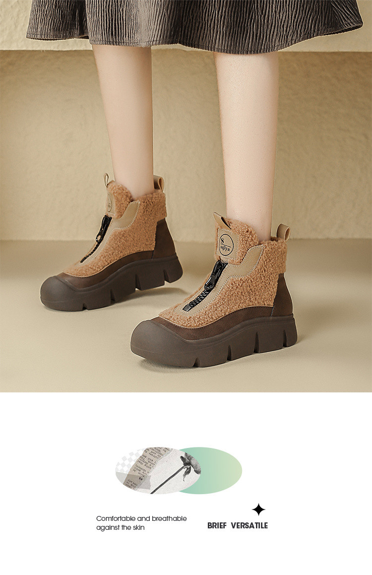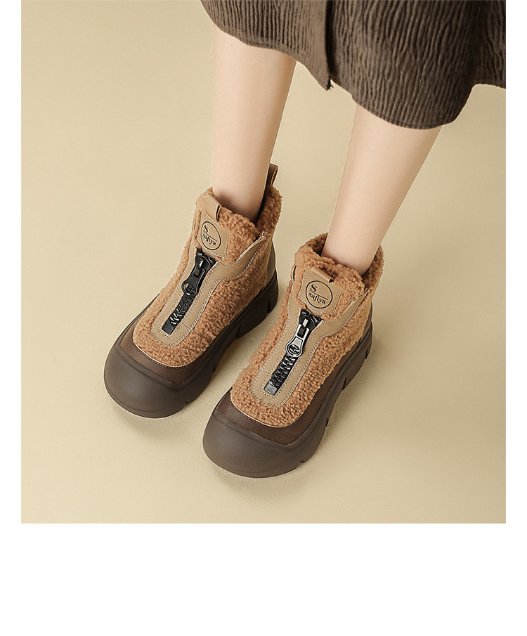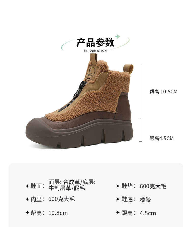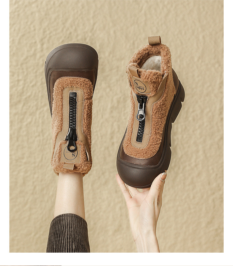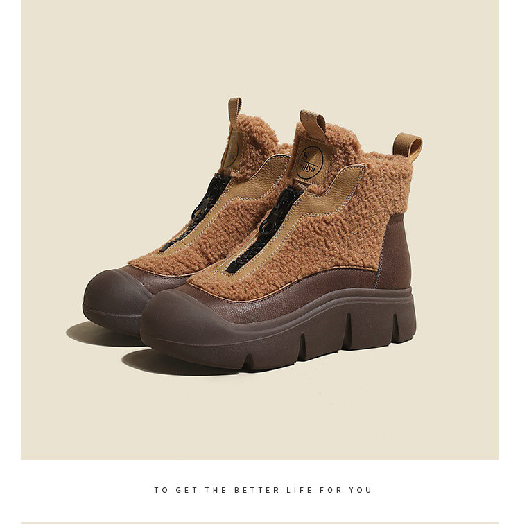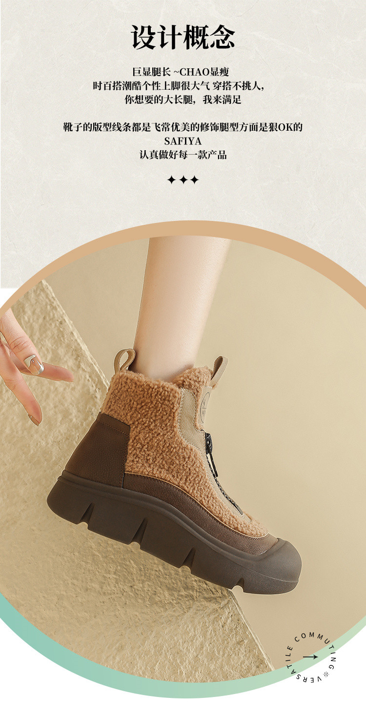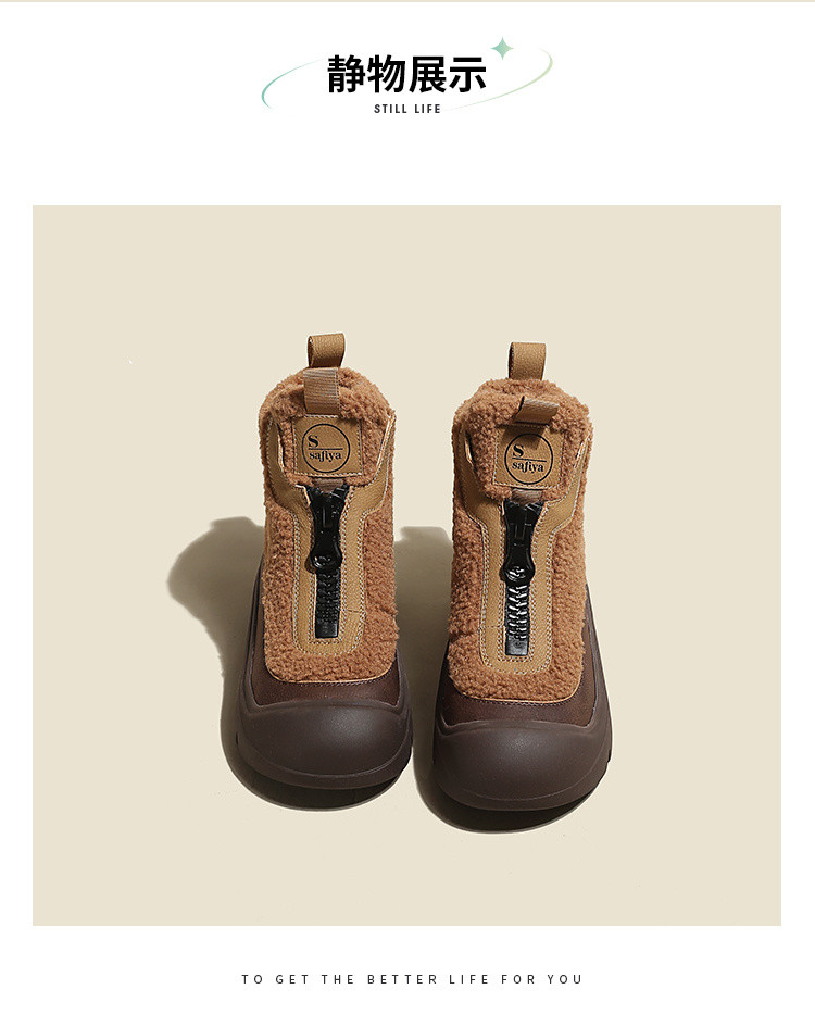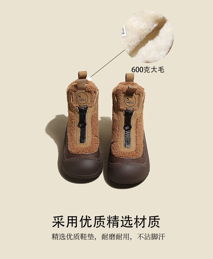 品质好货 | Safiya/索菲娅2023新款仿羊羔绒美拉德色拉链雪地靴棉靴 SF3411A718