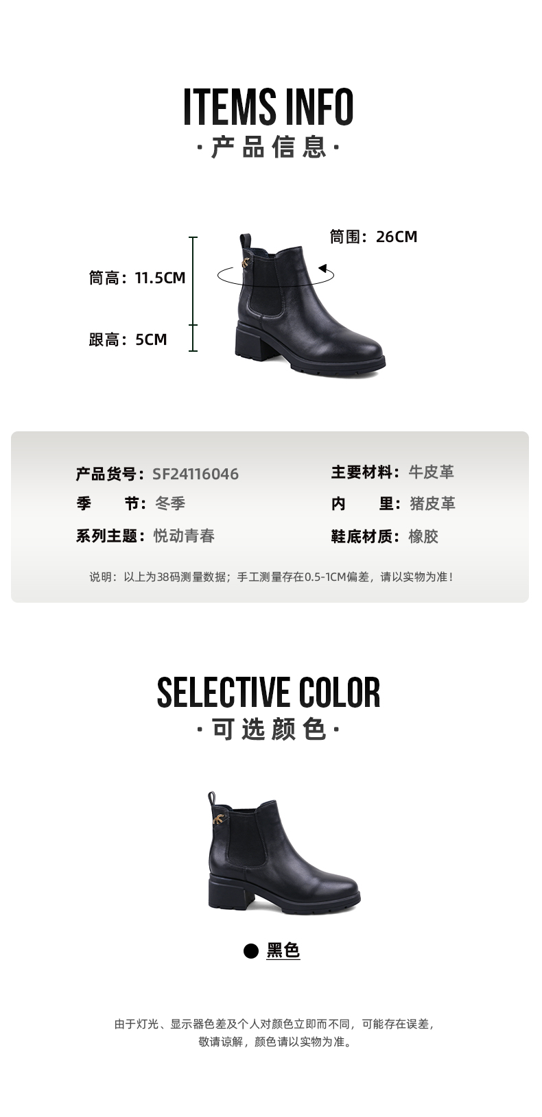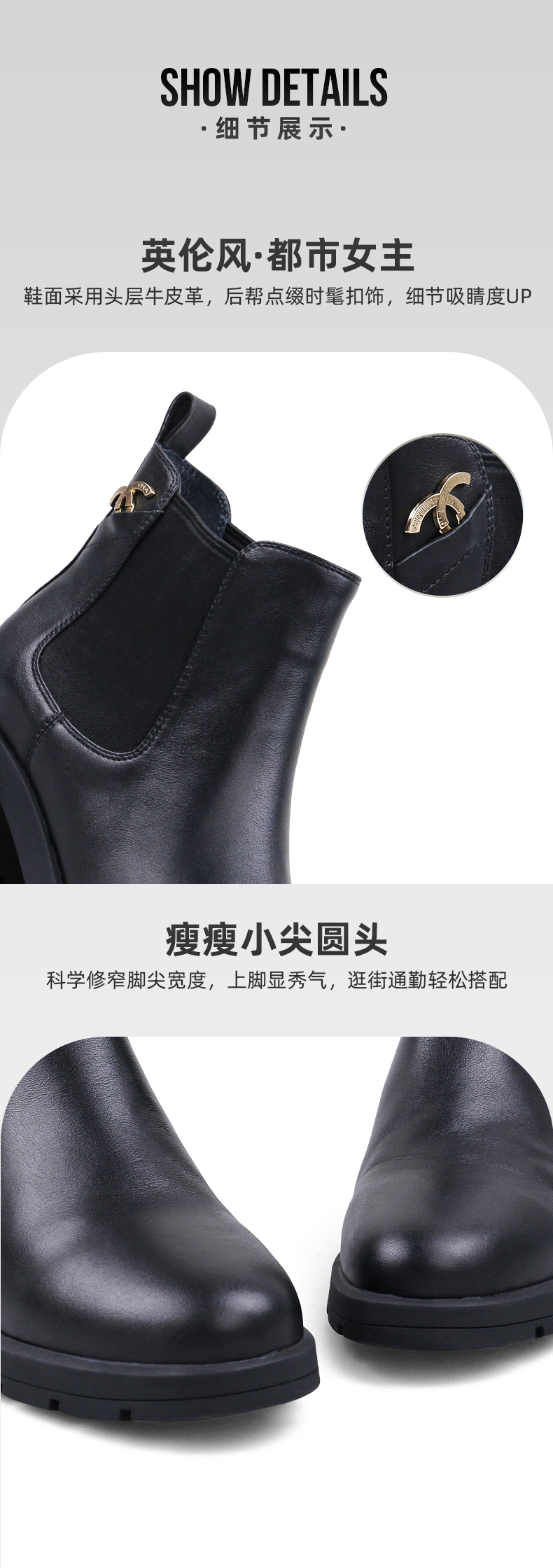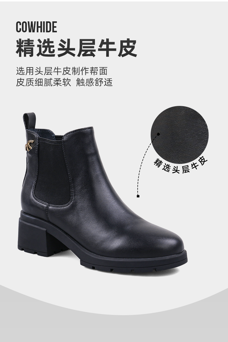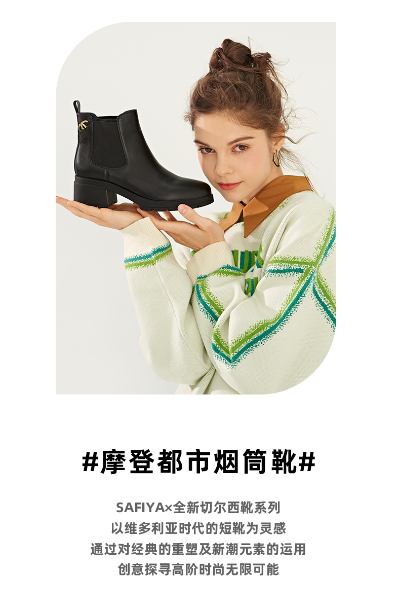【春节不打烊】Safiya/索菲娅 款秋冬牛皮高跟2022冬季新圆头厚底切尔西烟筒靴SF24116046