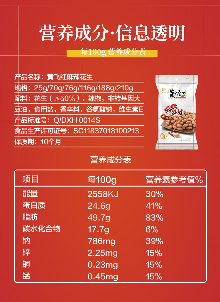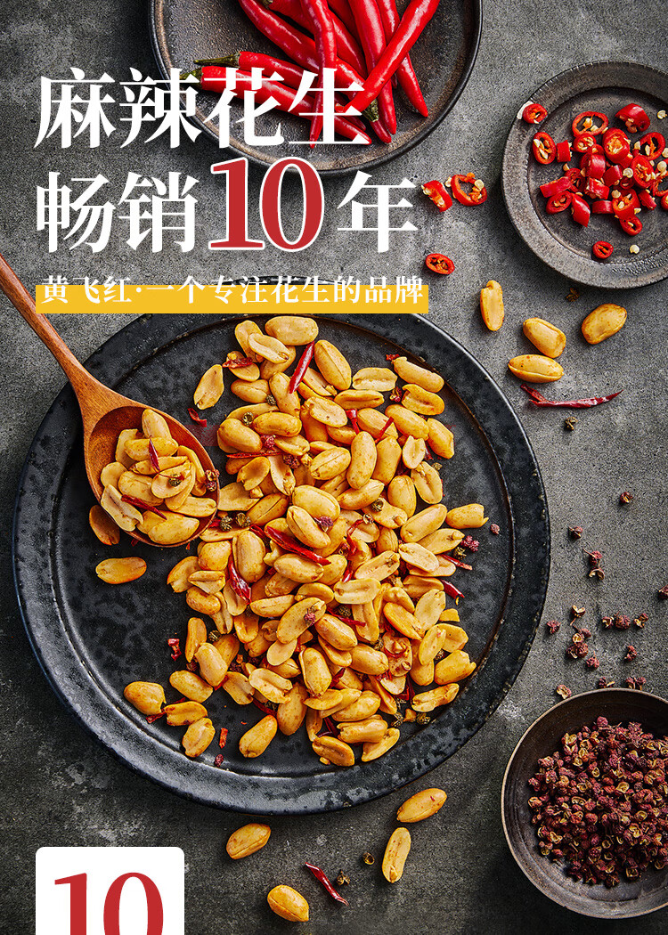 黄飞红 麻辣花生210g*2袋 每日坚果炒货休闲网红零食小吃下酒菜花生米