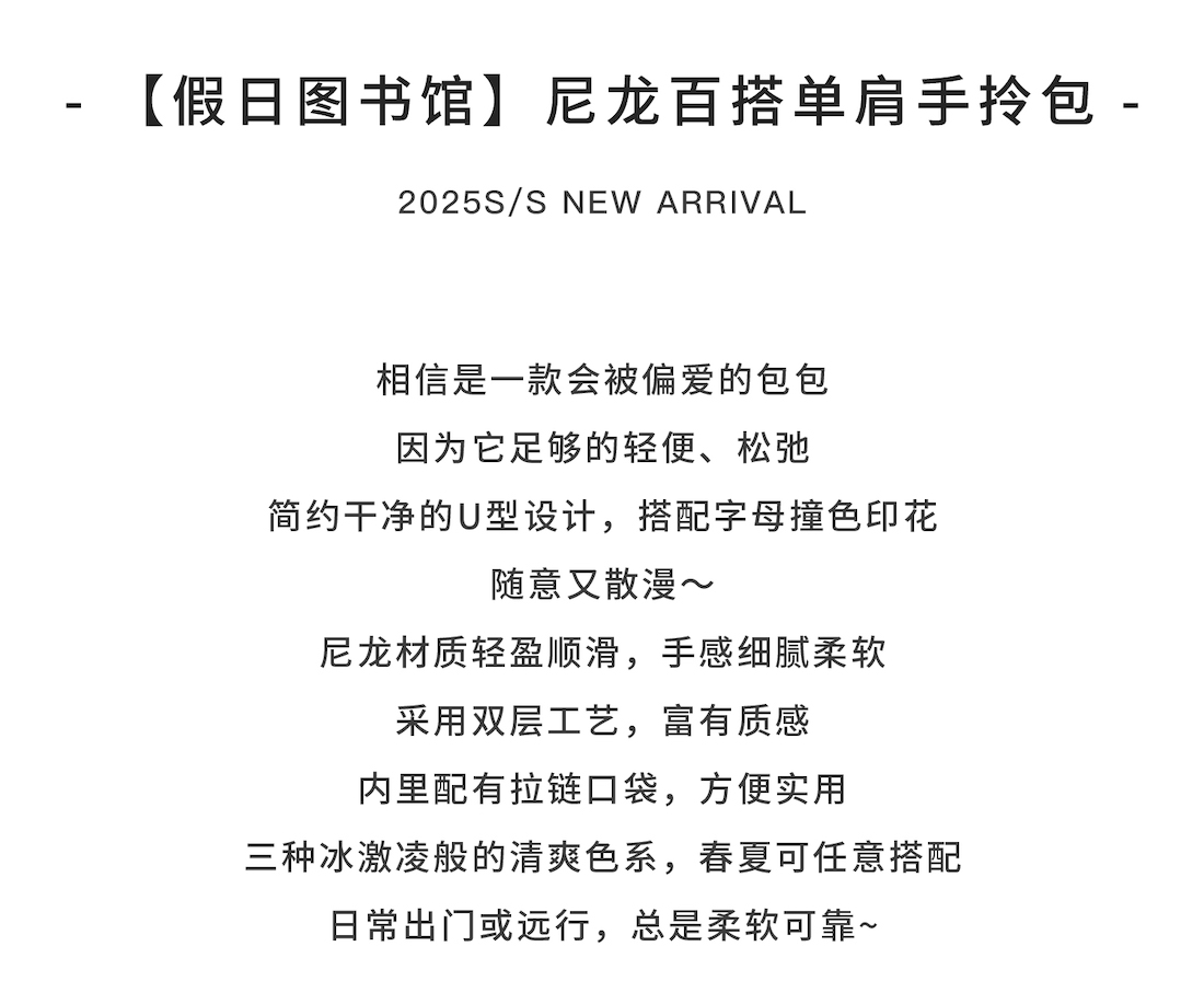 棵初2025年新款小清新百搭单肩手拎包大容量字母印花尼龙布包