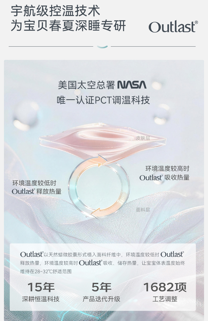 【2026春夏新品】ibaby×outlast太空科技恒温防出汗抑菌双层纱布分腿睡袋【建议室温28-32℃】