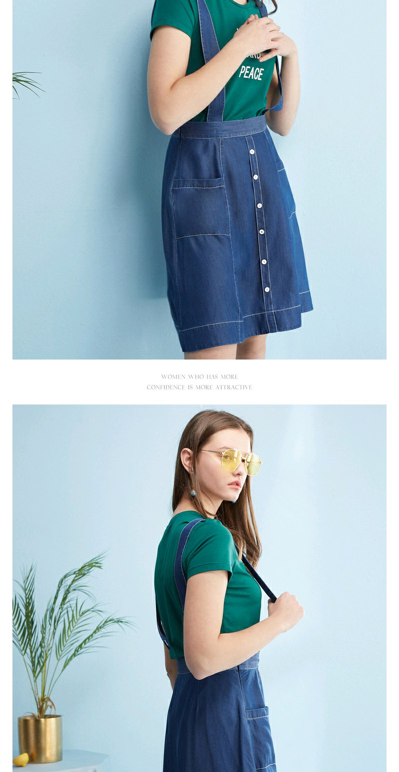 欧芮儿夏装新款女装收腰a字短裙女单排扣天丝背带牛仔半身裙