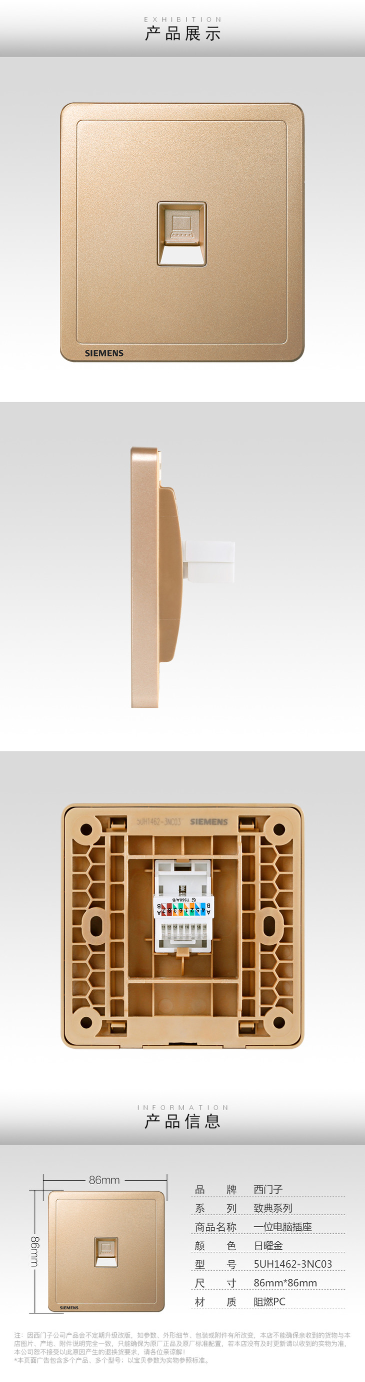 西门子开关插座面板致典日曜金电脑插座