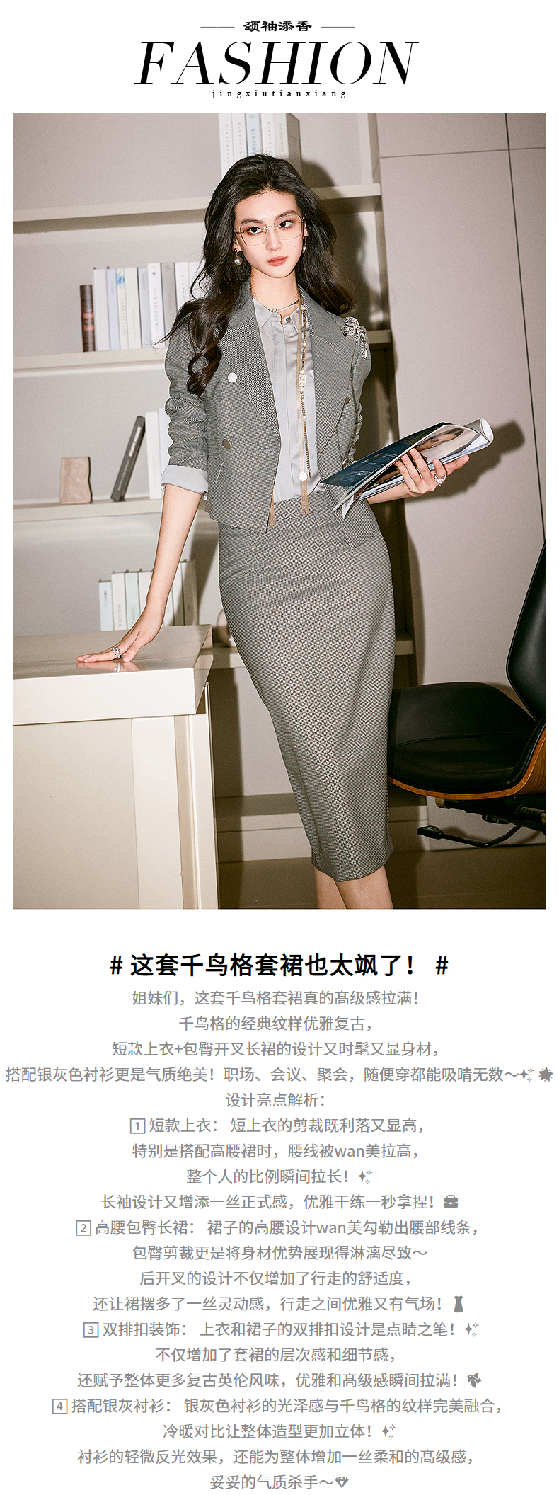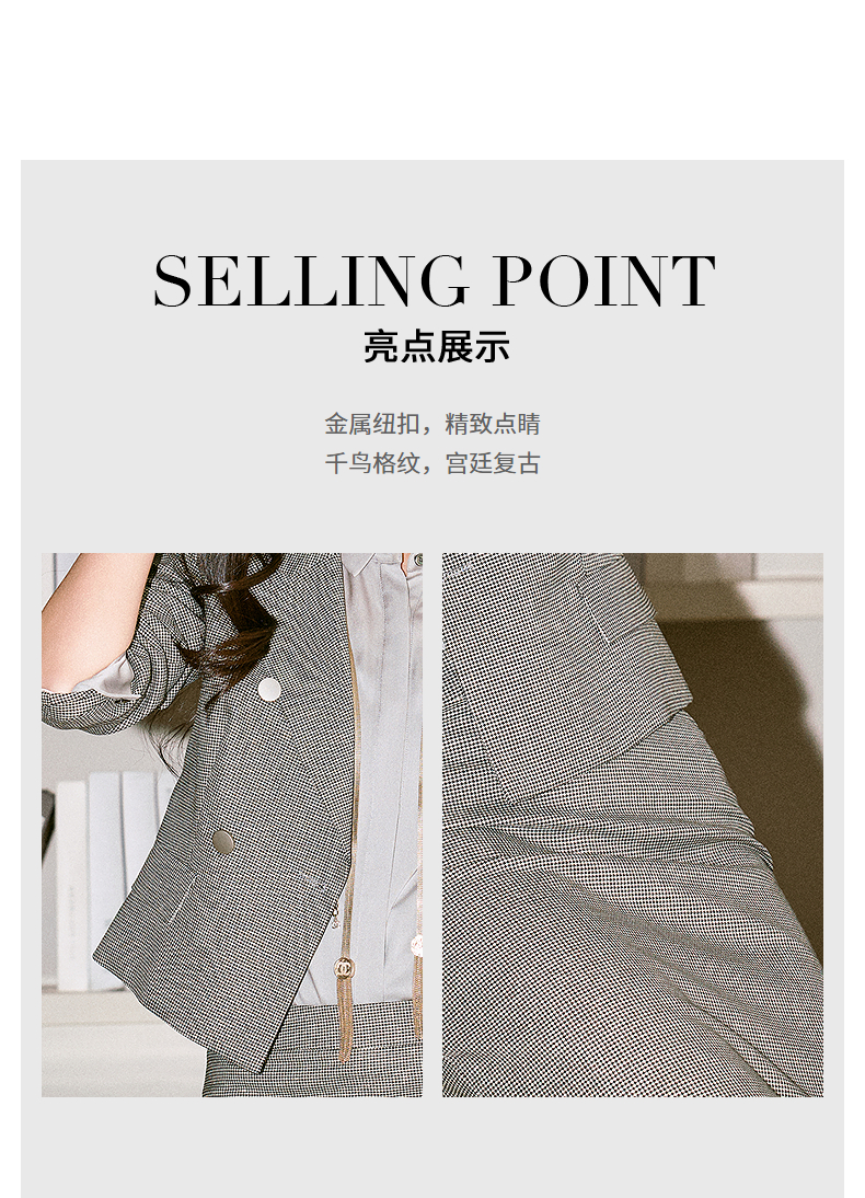 微光闪耀千鸟格 BT1XC4028颈袖添香时尚正装OL职业装气质修身羊毛套装女套裙 正码正拍 不退不换