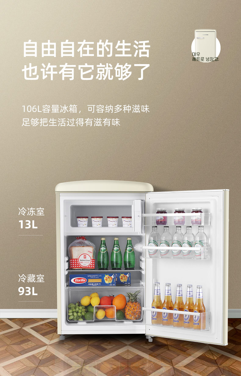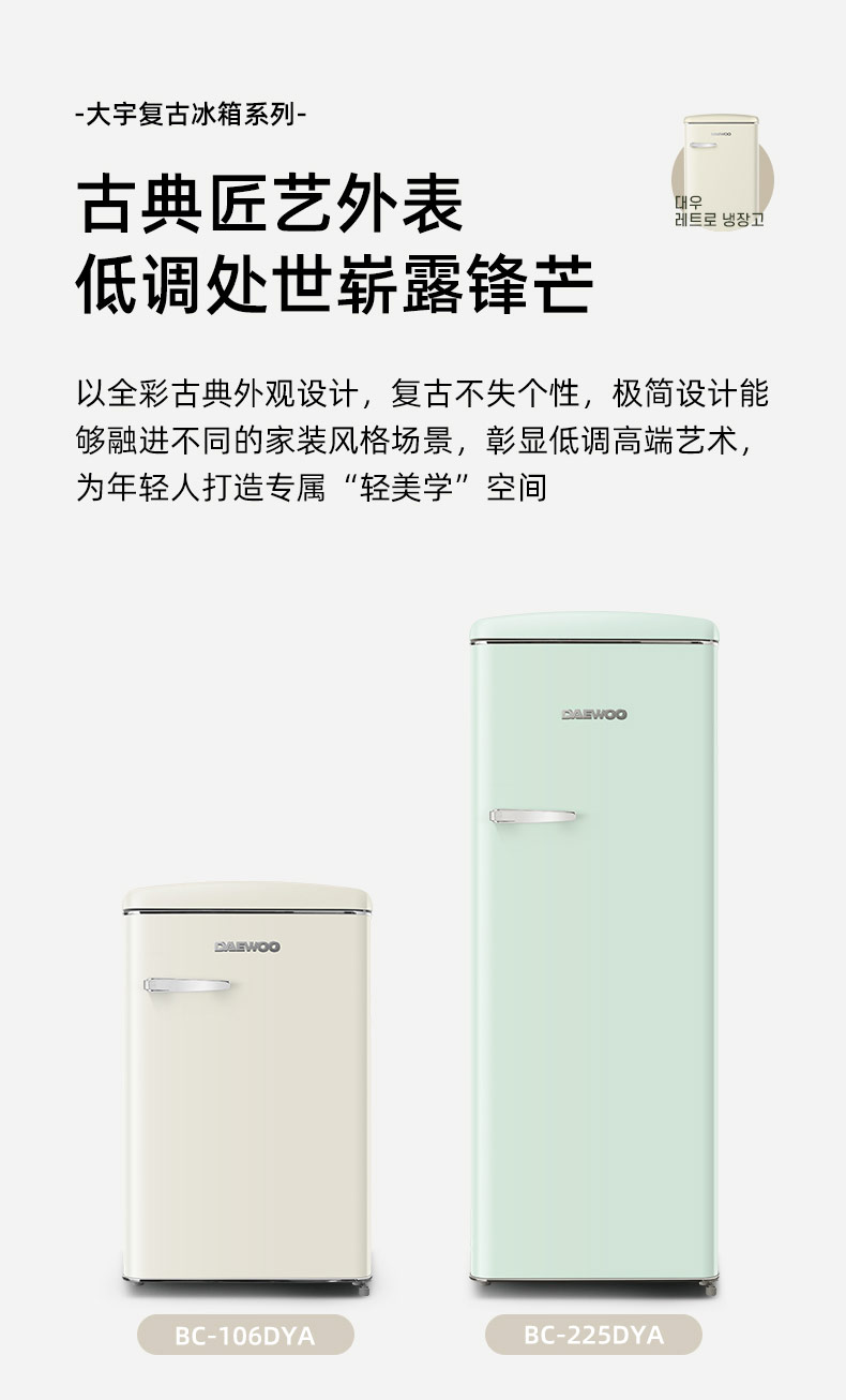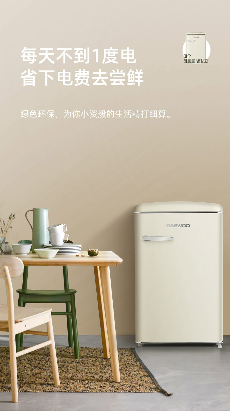 DAEWOO韩国大宇复古小电冰箱家用小型冷柜迷你办公室宿舍用节能