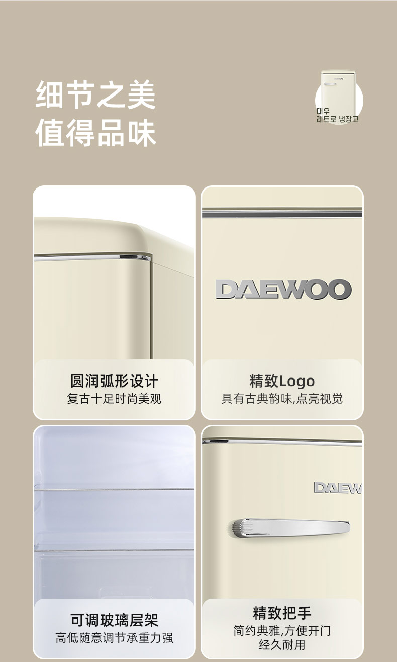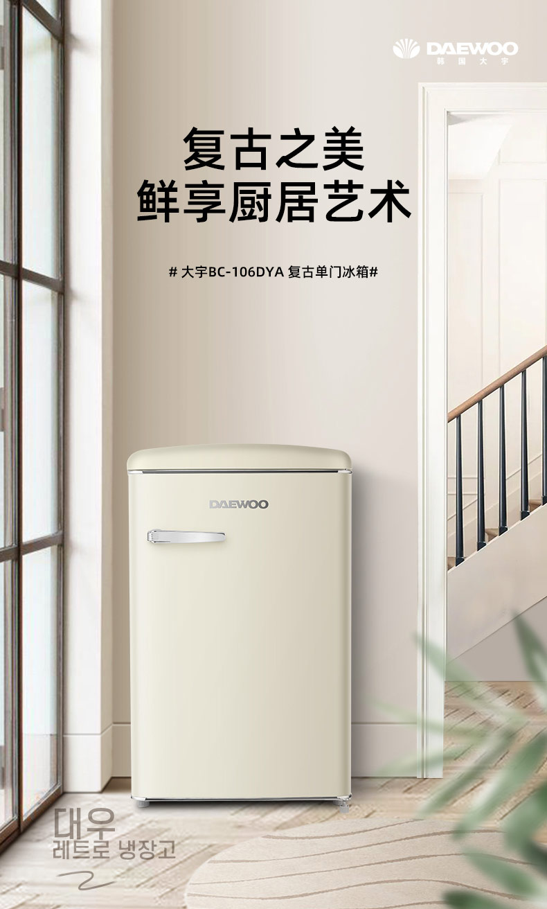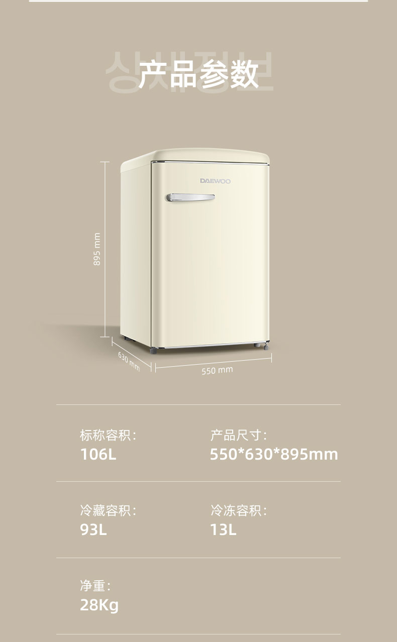 DAEWOO韩国大宇复古小电冰箱家用小型冷柜迷你办公室宿舍用节能