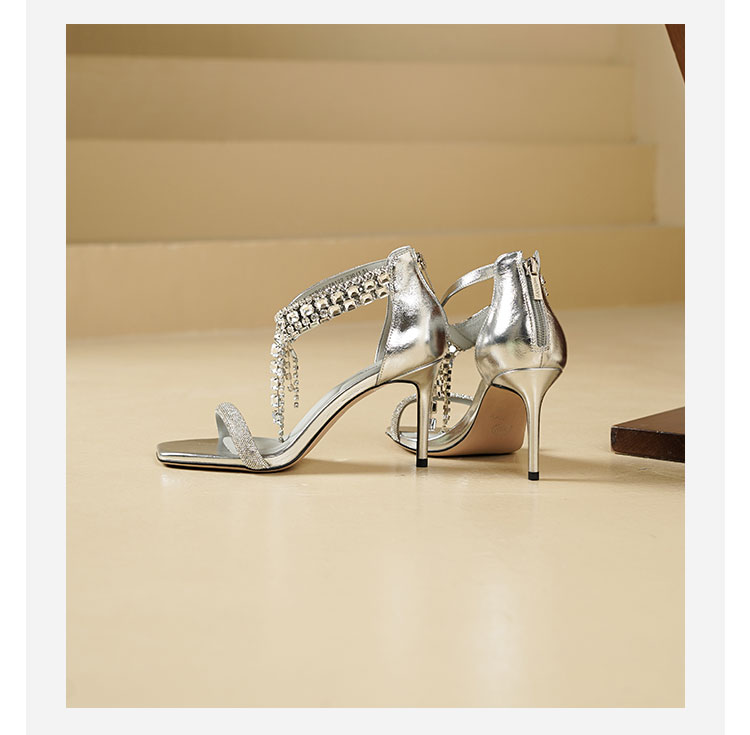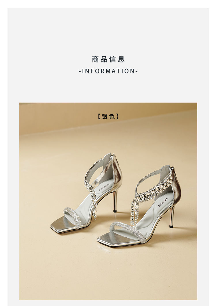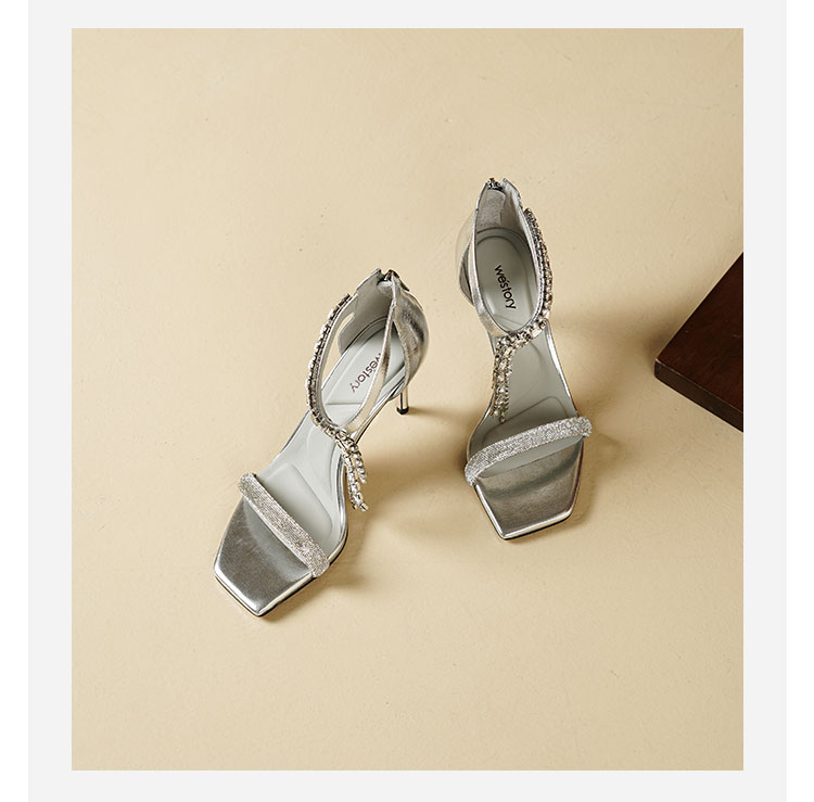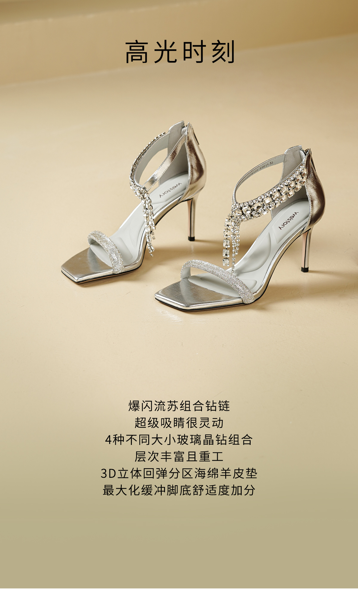Westory2026年夏季一字带高跟爆闪流苏组合钻链凉鞋晚宴鞋W26BG62781