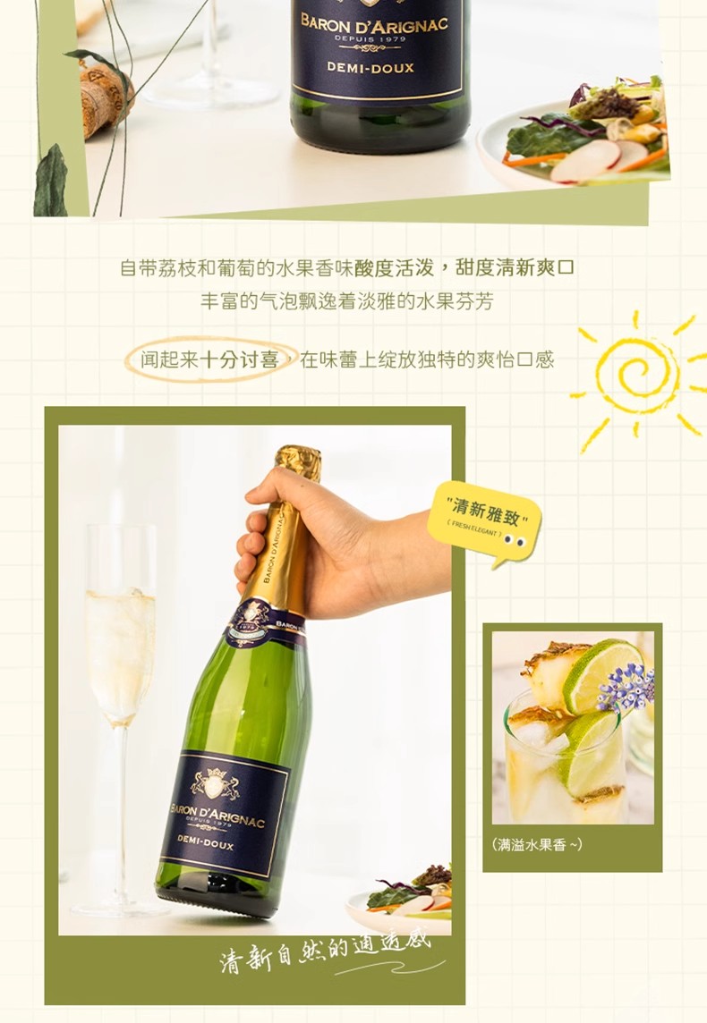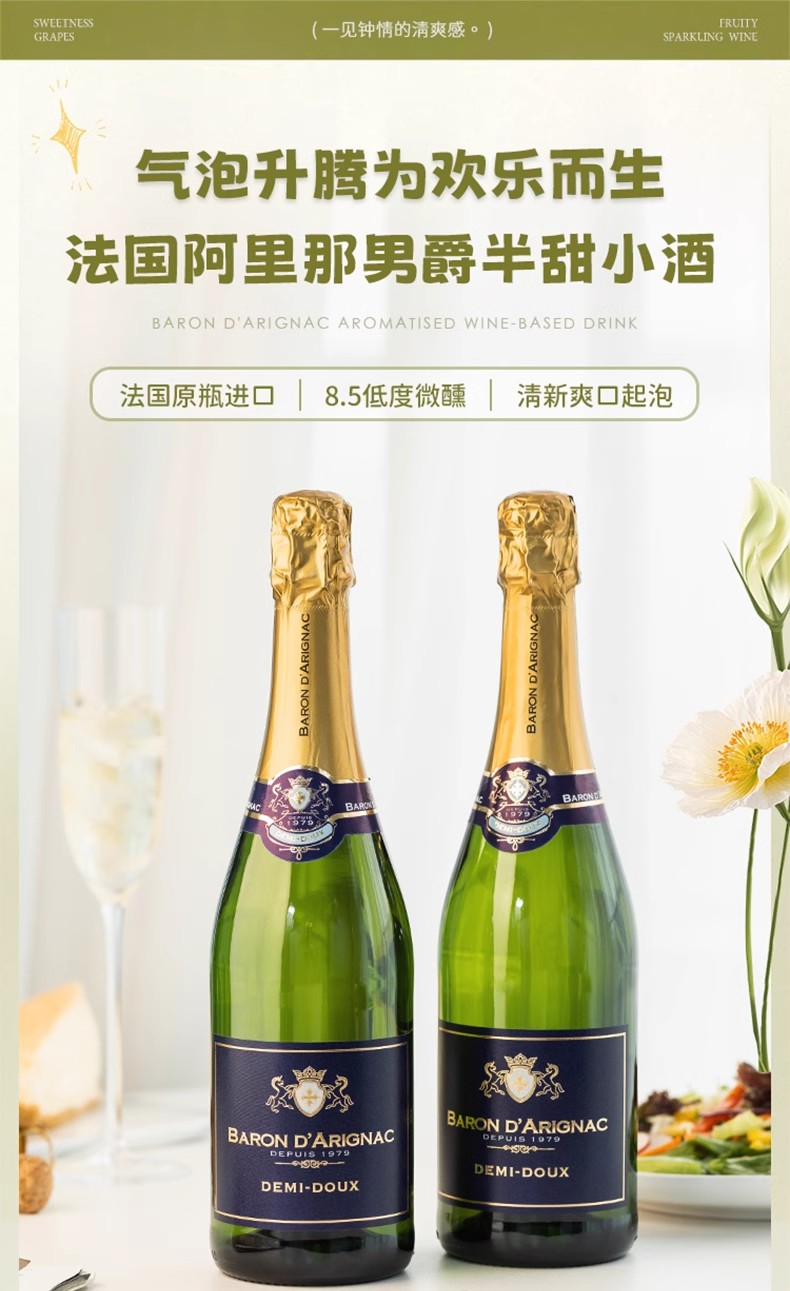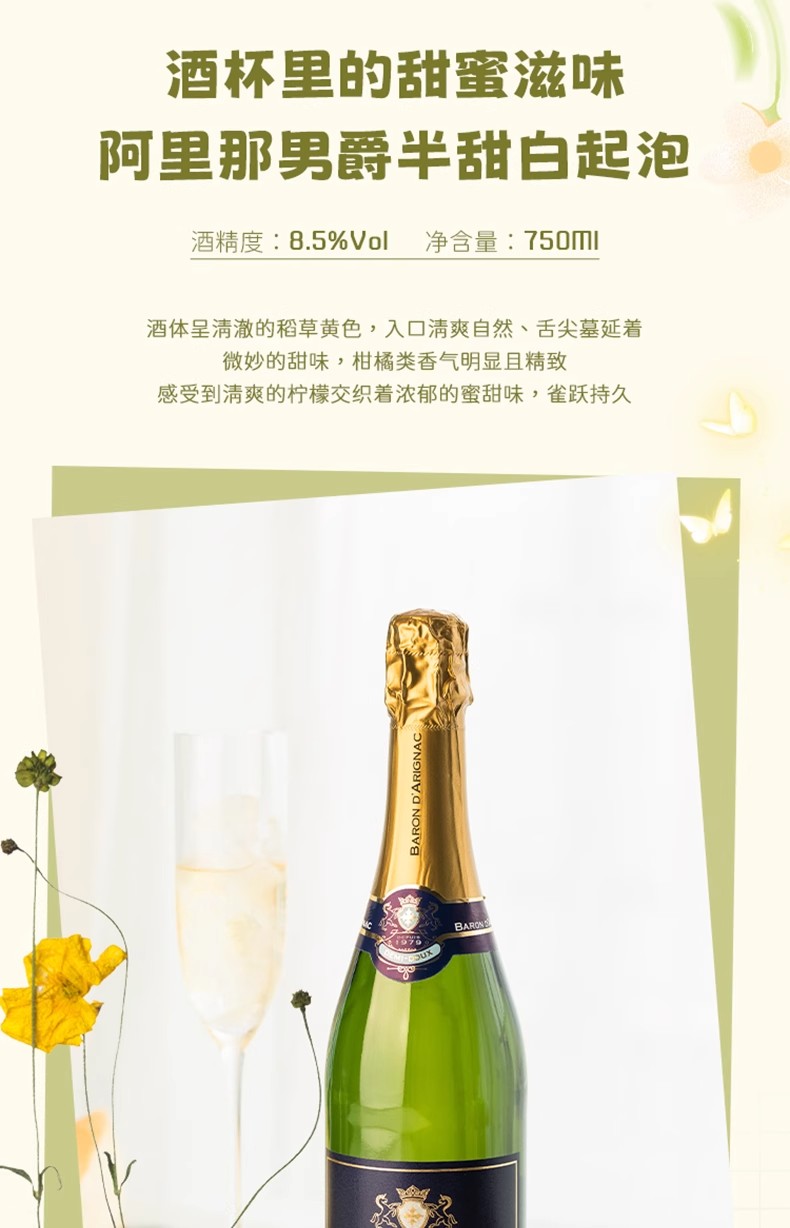 阿里那男爵半甜型起泡酒 法国原瓶进口 750ml 入口柔和 气泡细腻 72小时发货