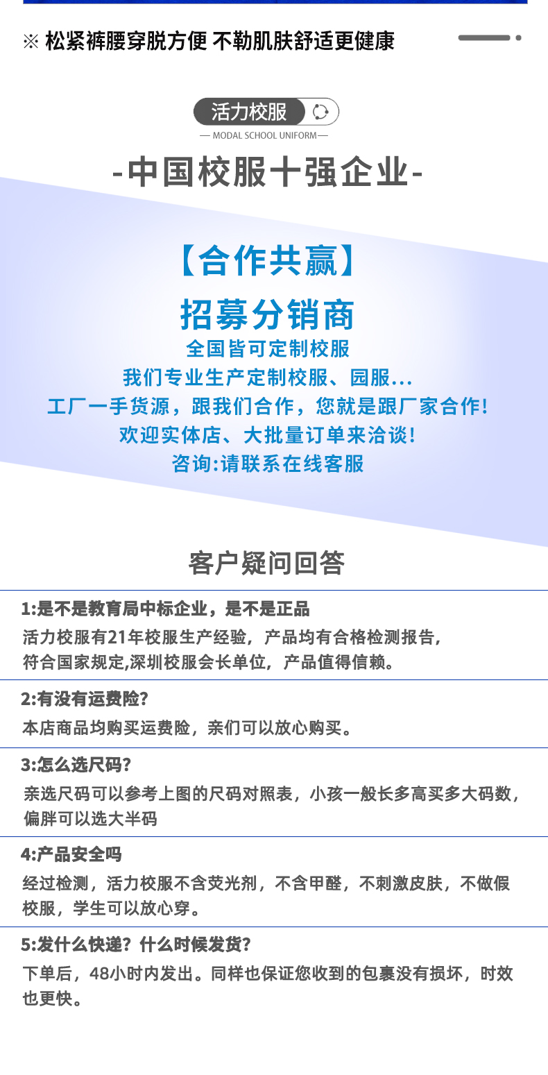 活力校服由深圳市中南活力实业股份有限公司创建的品牌,深圳二十一年老品牌,教育局中标企业;主营深圳校服、广州校服、东莞校服、佛山校服、肇庆校服、江苏校服、鞋袜、学生床上用品等学生课桌椅一站式教育领域产品