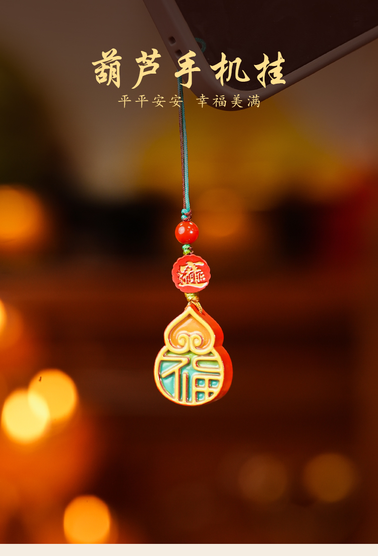 含辰砂工艺品朱砂设计款葫芦手机挂