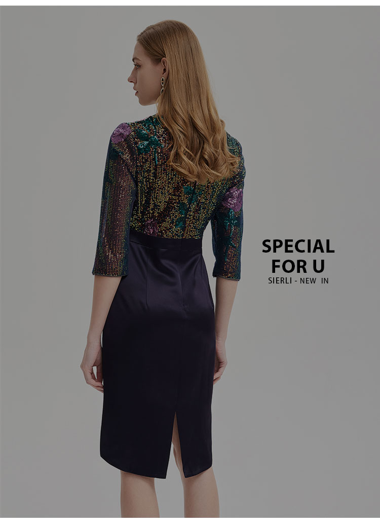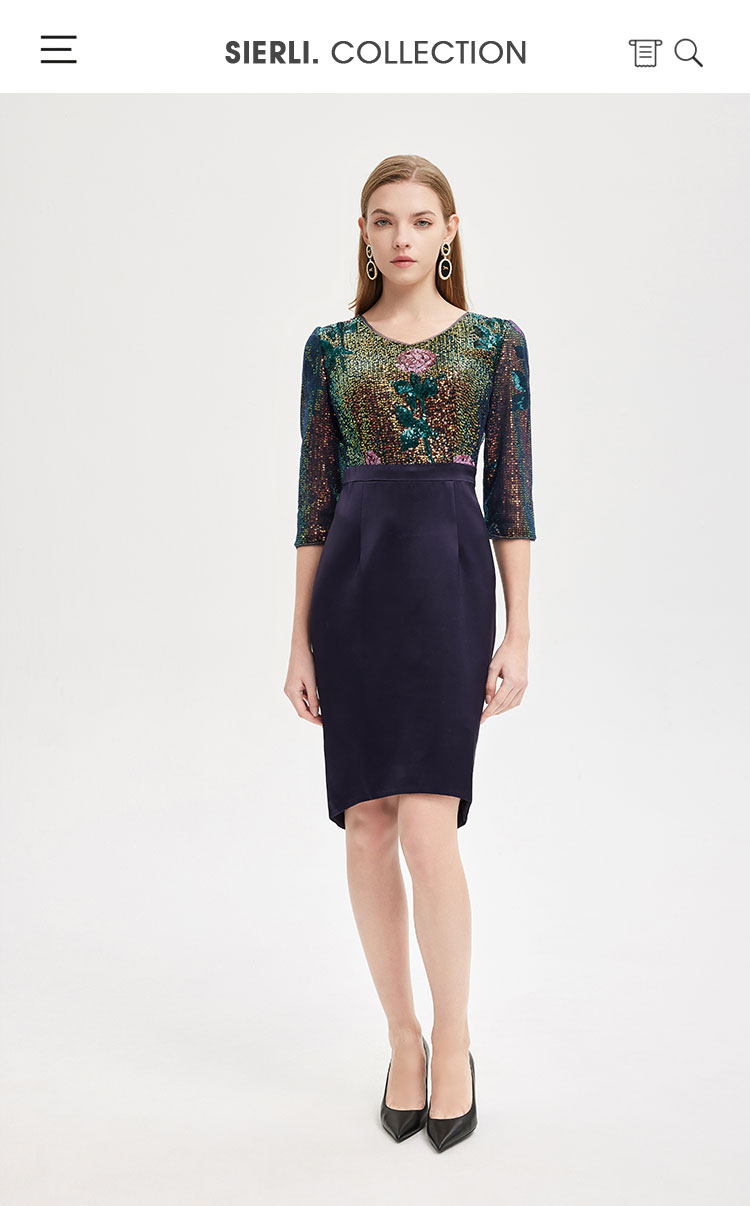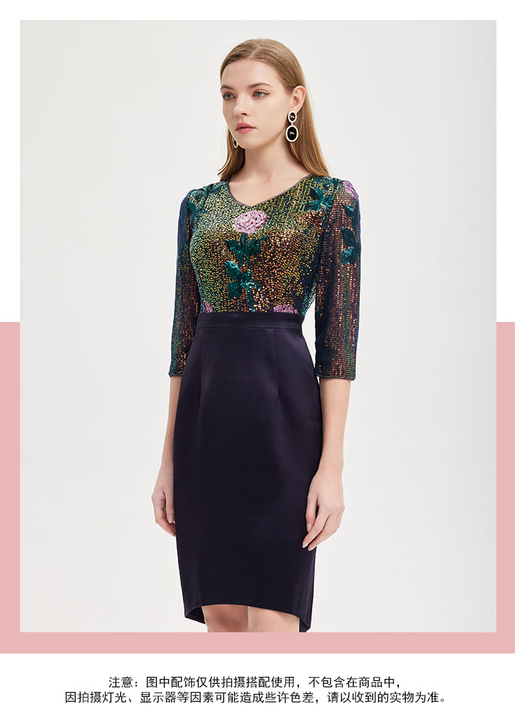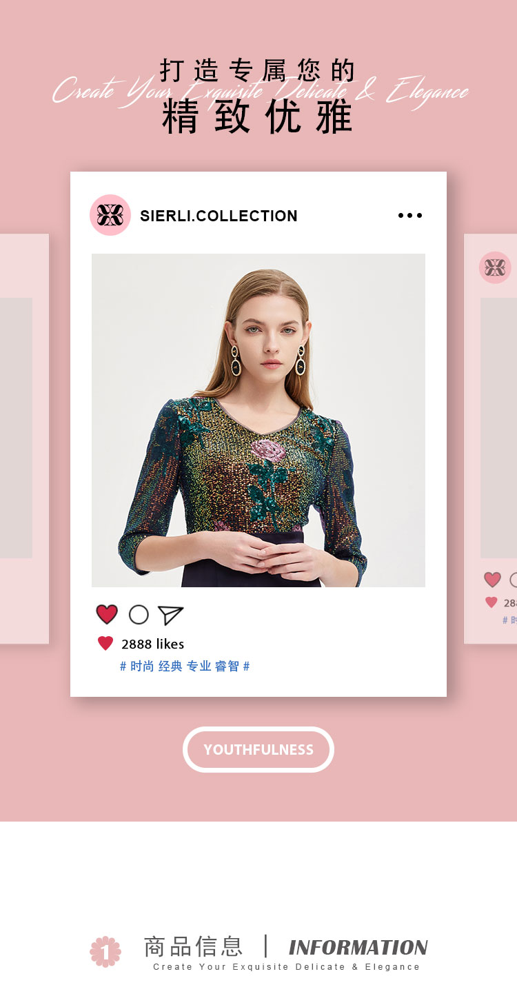 RE8B1斯尔丽2021年春季上新瑟俪奢华亮片收腰包臀假两件式珠片绣连衣裙
