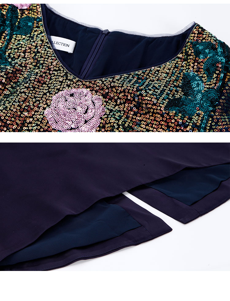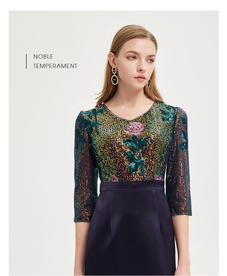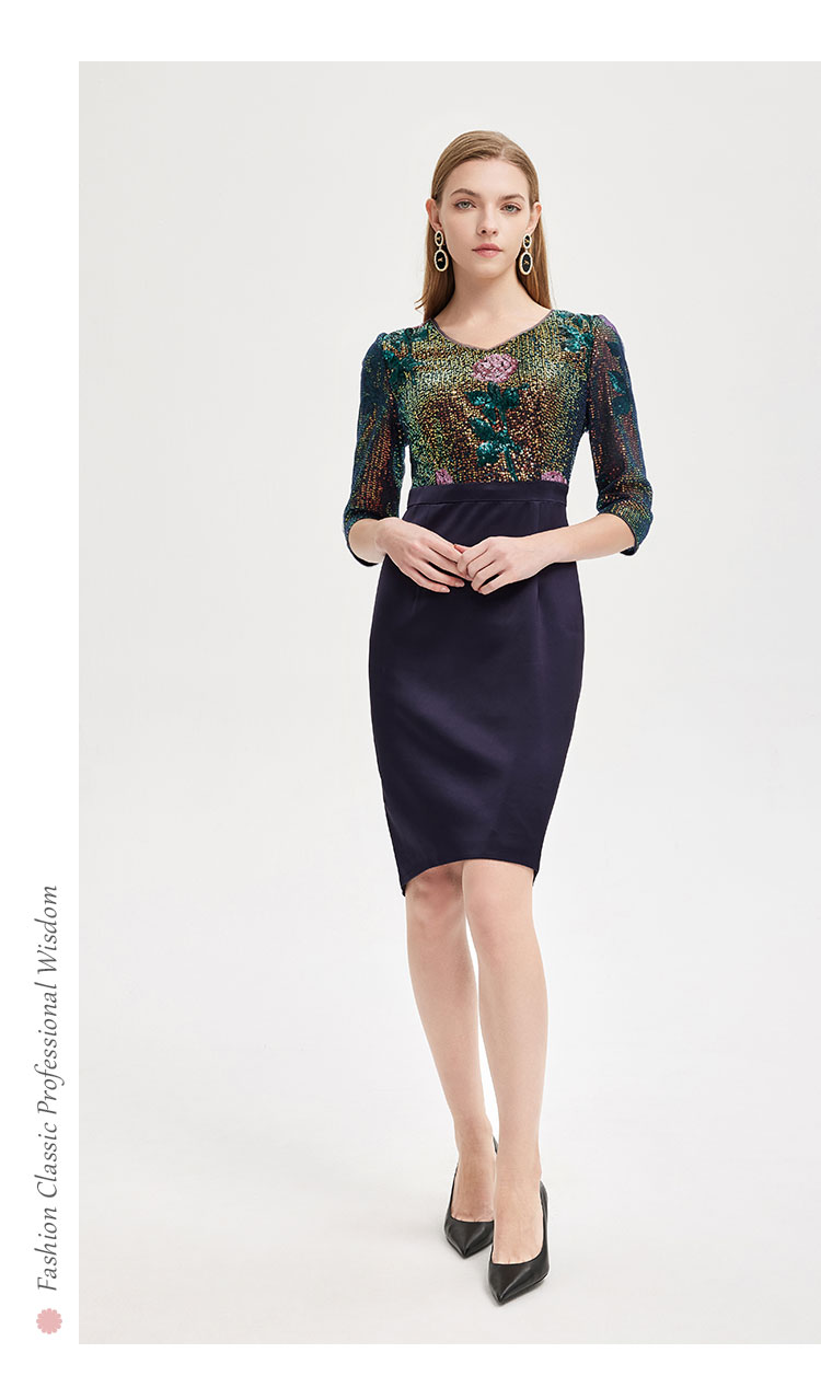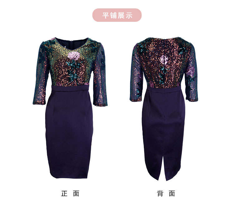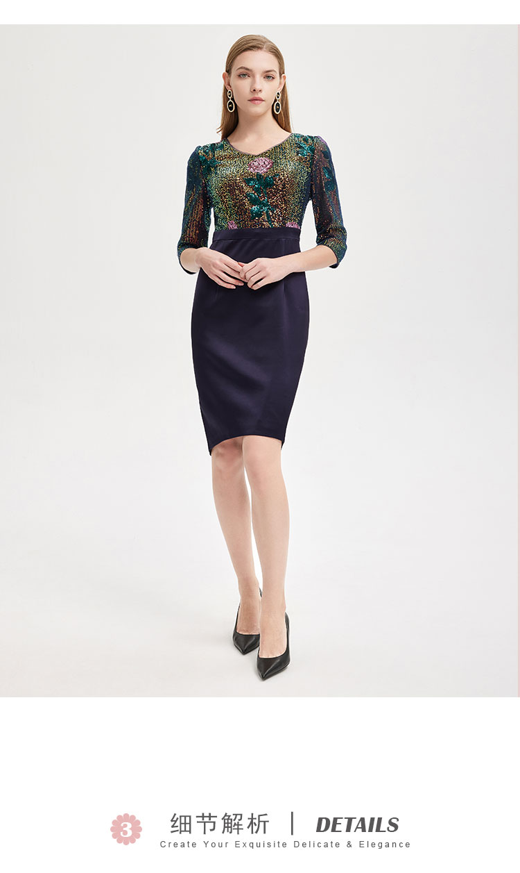 RE8B1斯尔丽2021年春季上新瑟俪奢华亮片收腰包臀假两件式珠片绣连衣裙