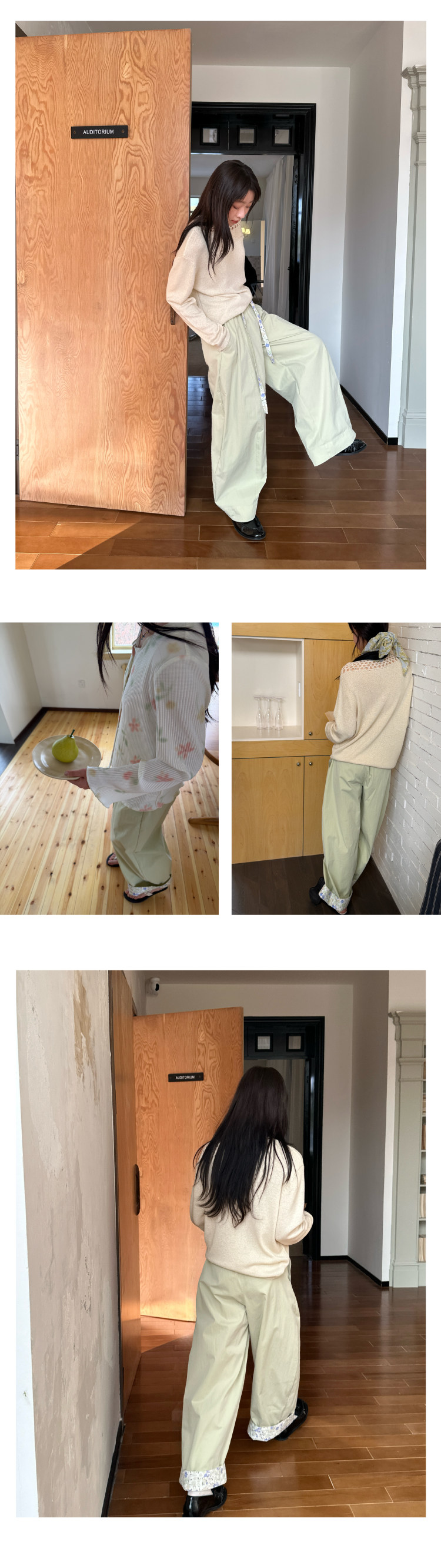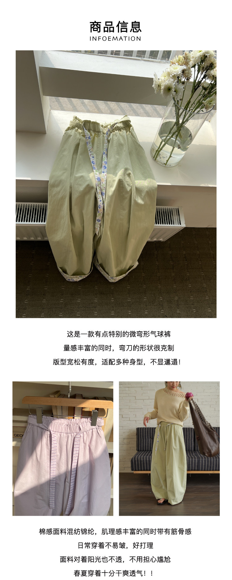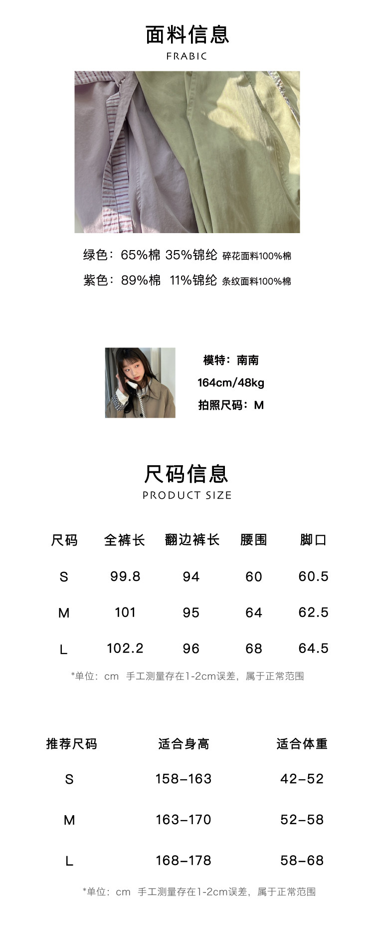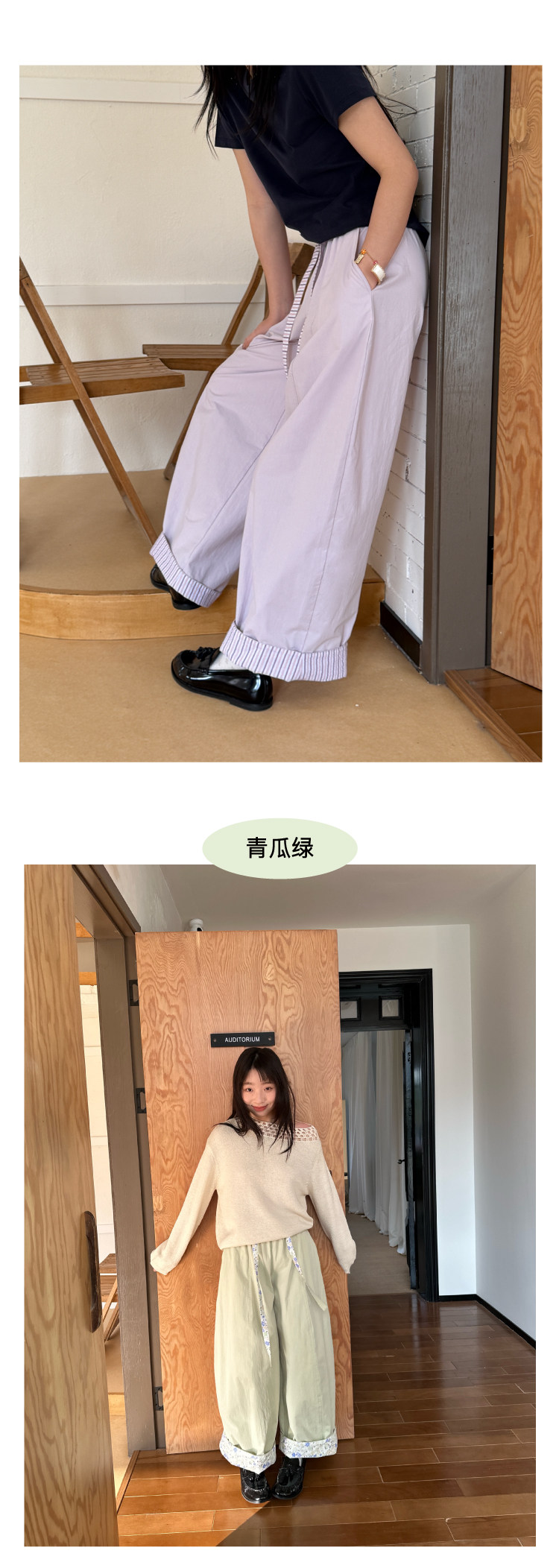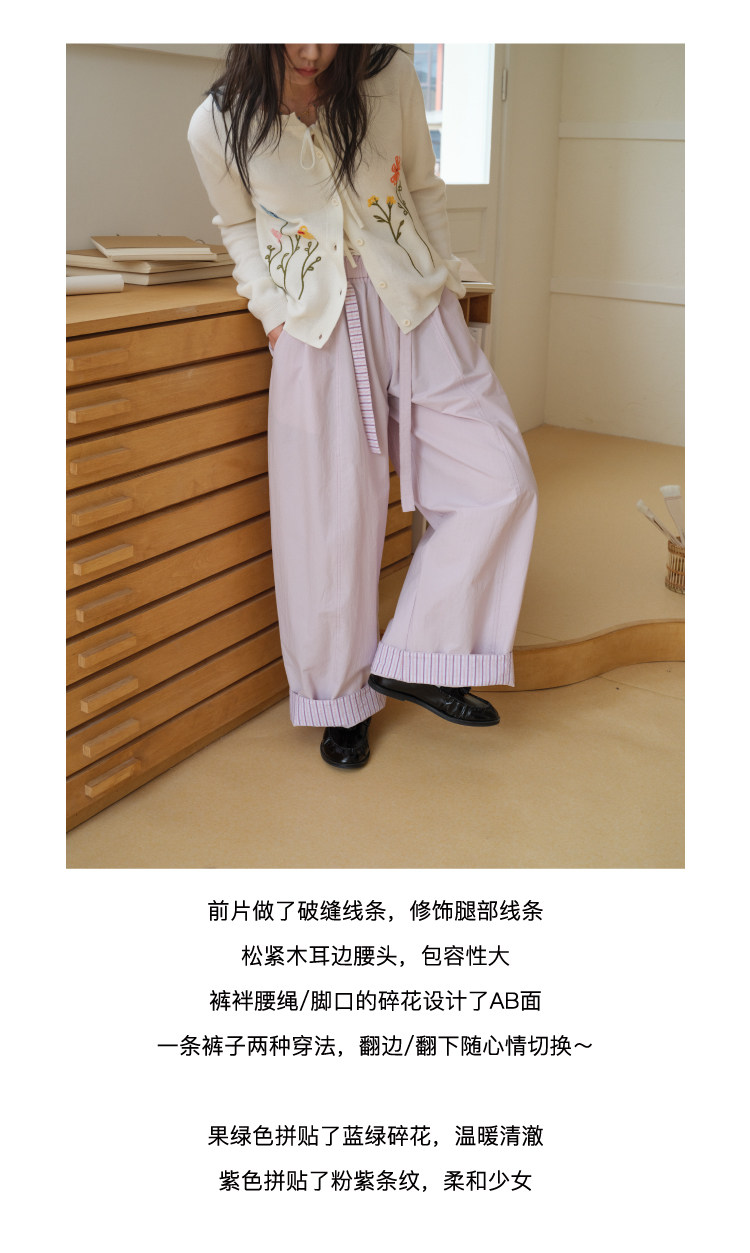 nothe Case布然/NC261817/「青瓜铃兰」翻边拼色抗皱微弯刀阔腿裤