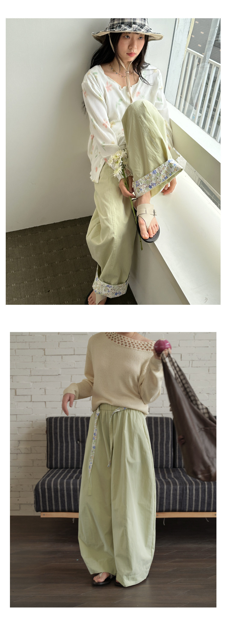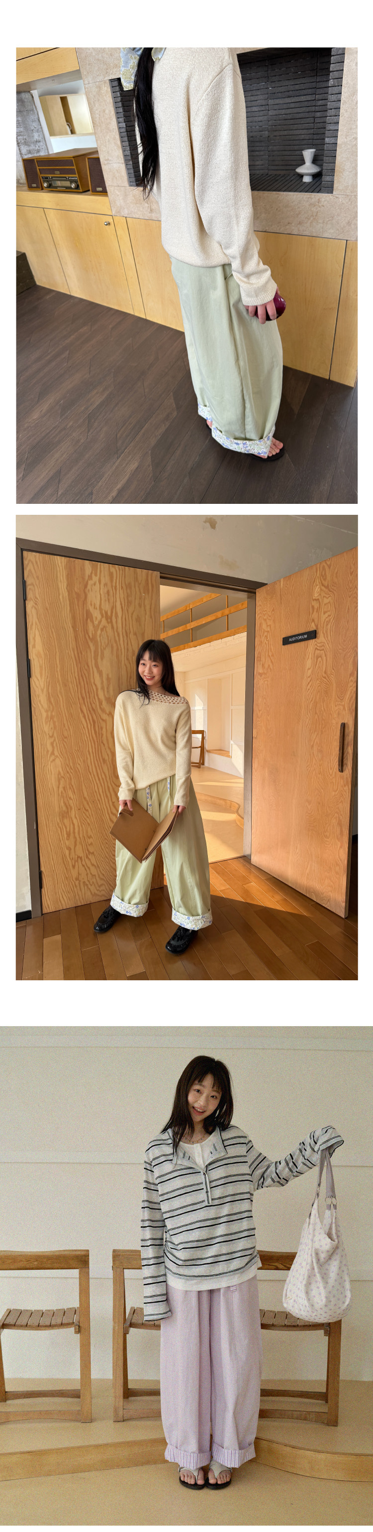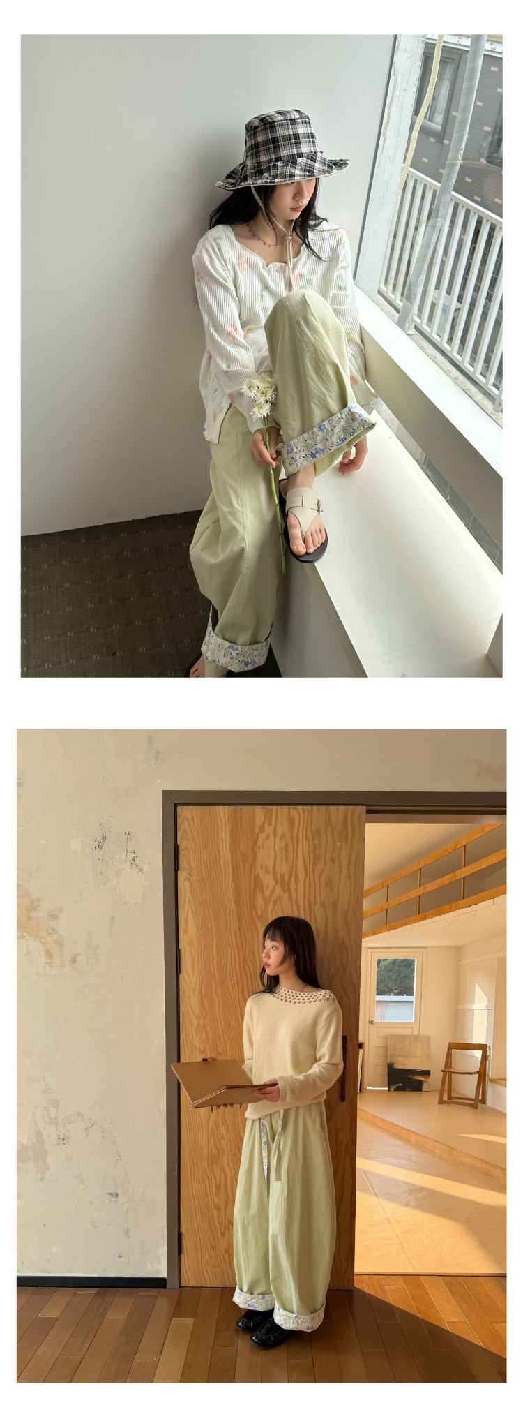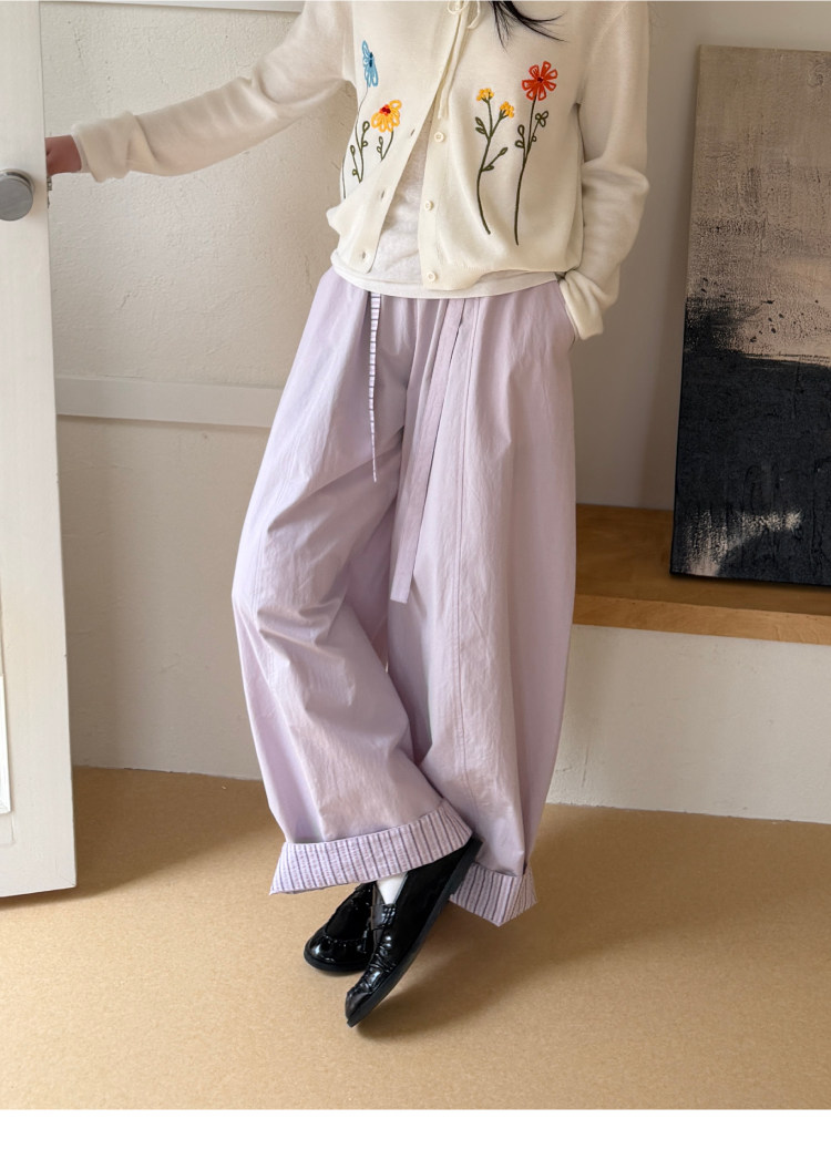 nothe Case布然/NC261817/「青瓜铃兰」翻边拼色抗皱微弯刀阔腿裤