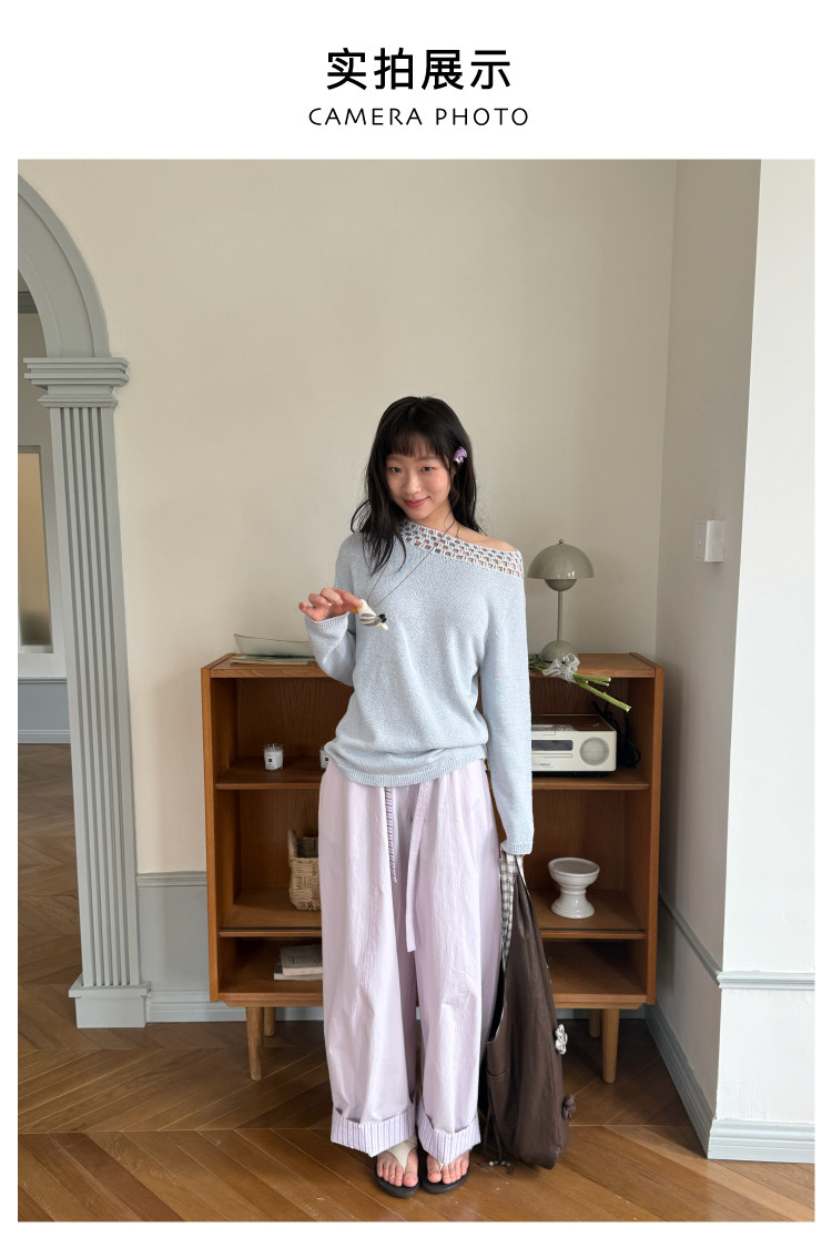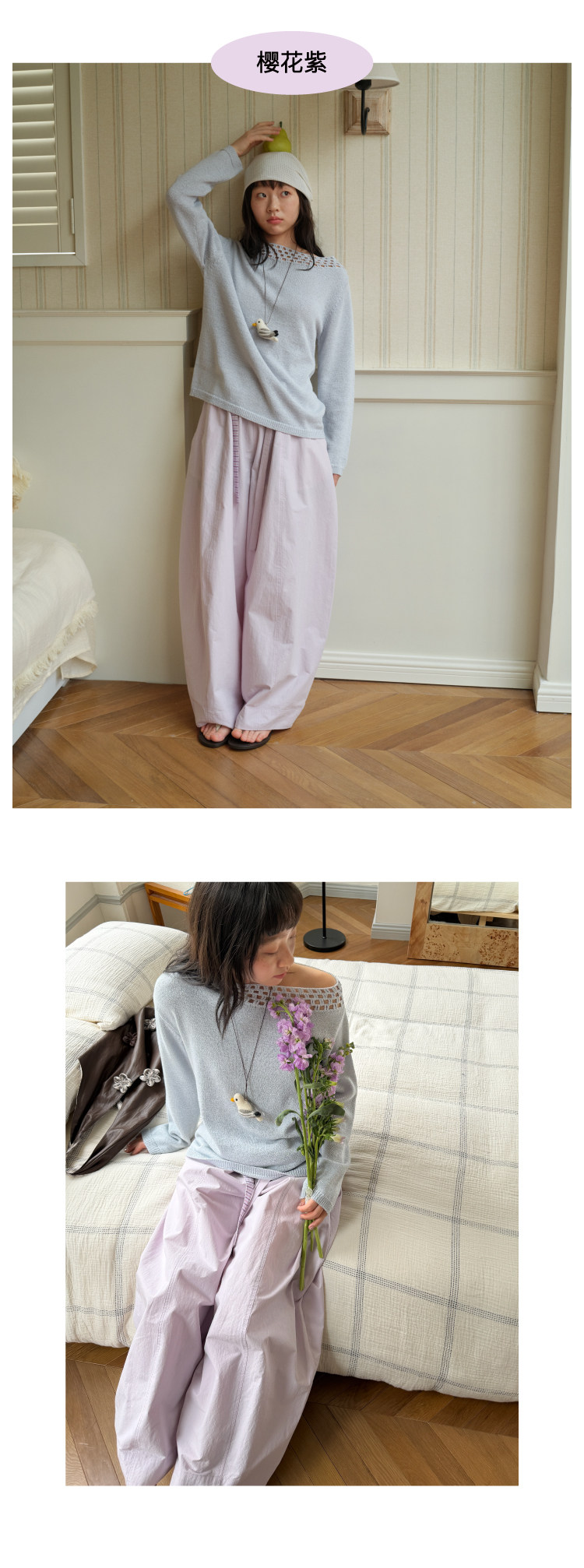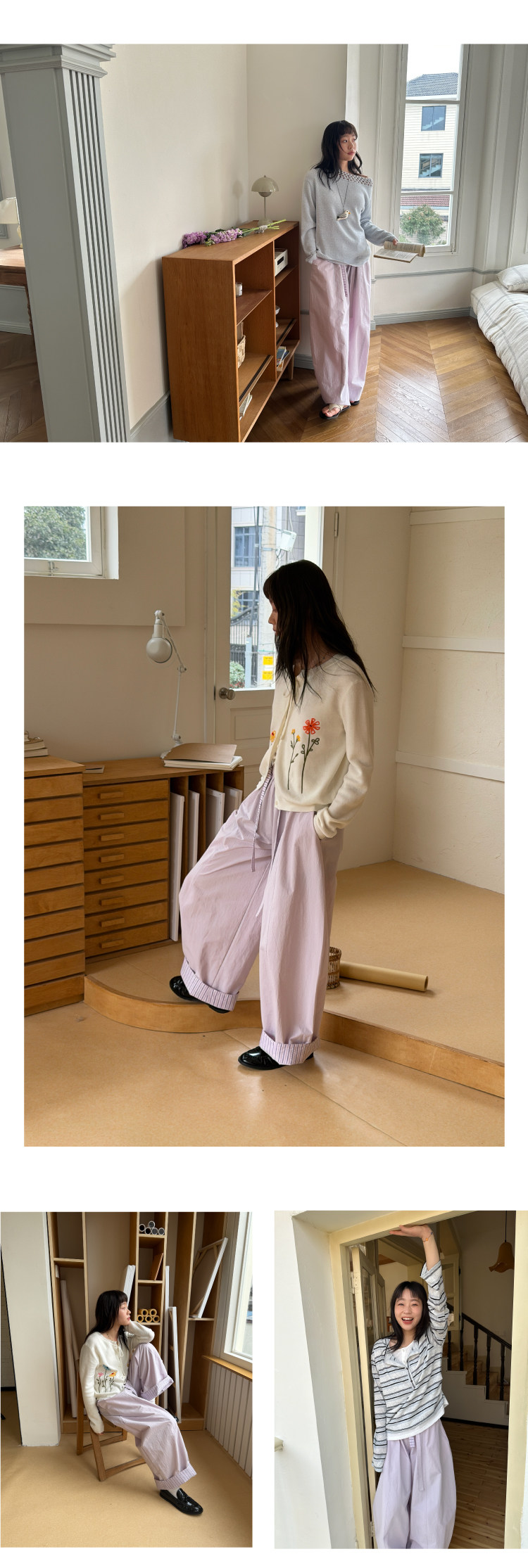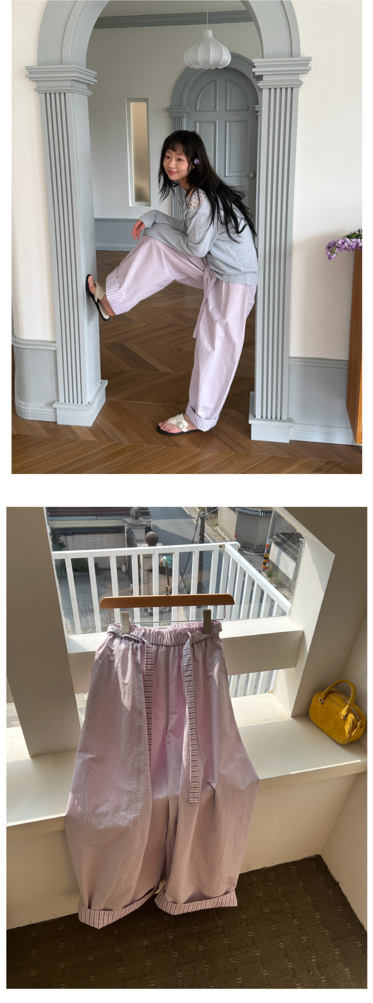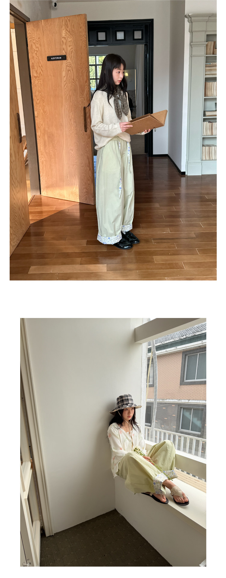 nothe Case布然/NC261817/「青瓜铃兰」翻边拼色抗皱微弯刀阔腿裤